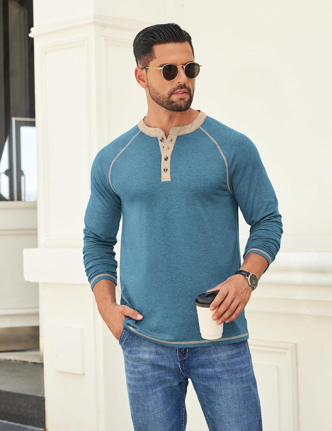 Don’t miss out on our limited-time offer: buy COOFANDY Mens Henley Shirts Long Sleeve Casual Button V Neck T-Shirt Lightweight Fashion Pullover Shirts(Heather Blue), get {accessory} 50% off!