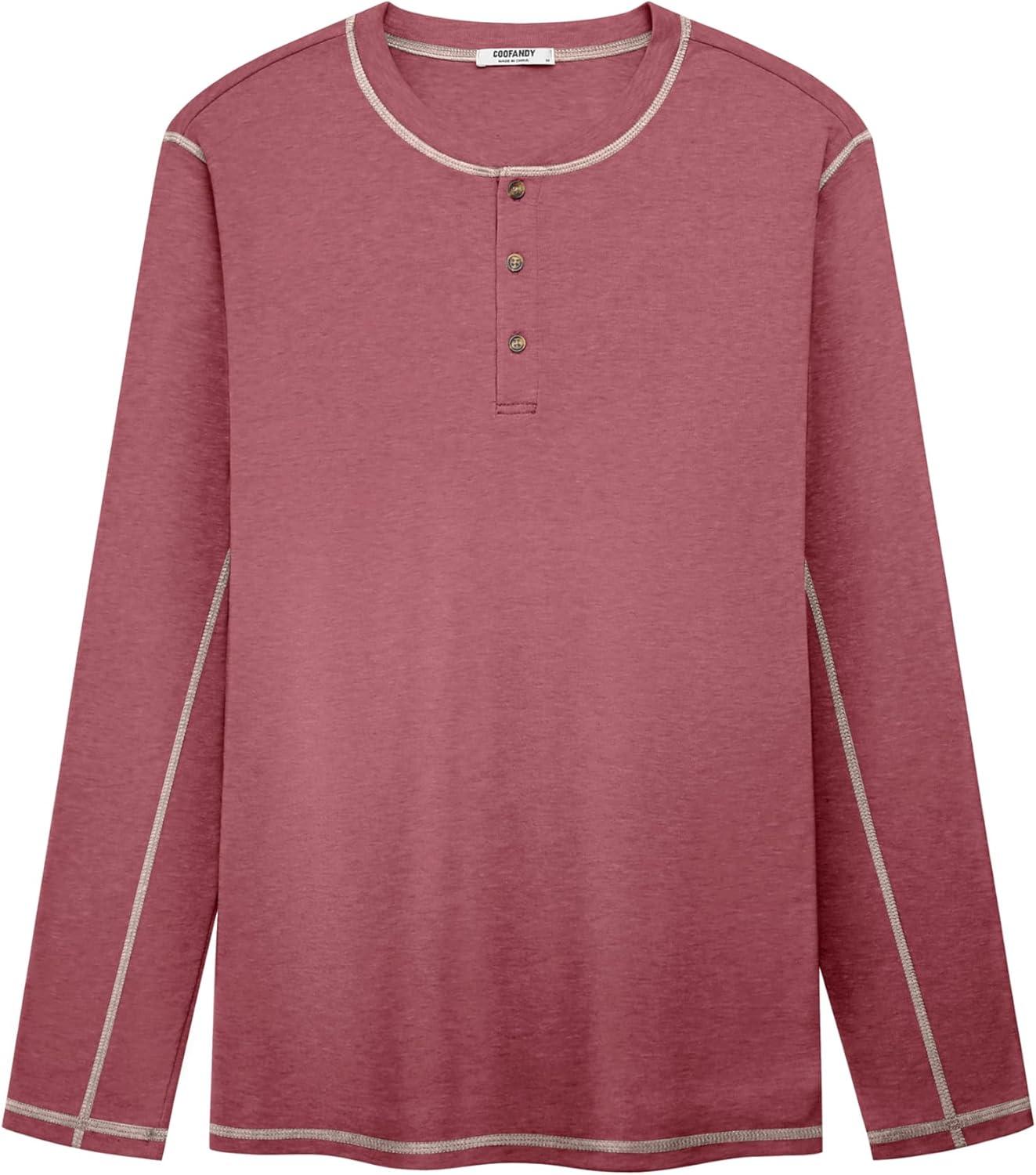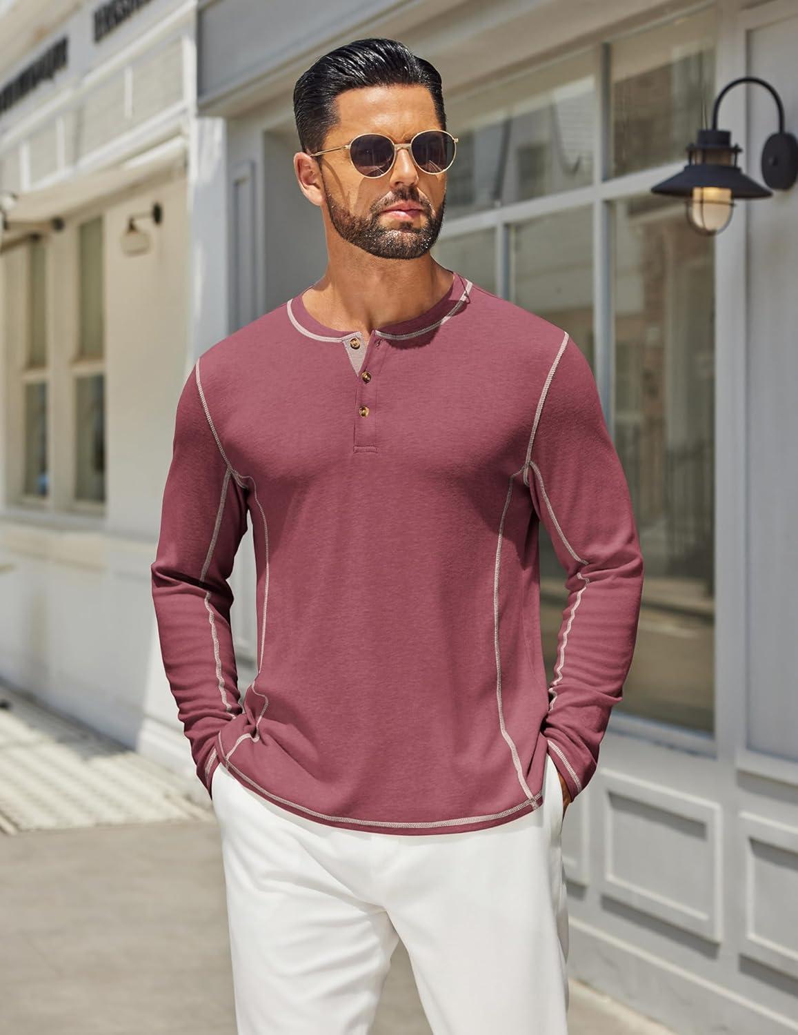 COOFANDY Men's Henley Shirts Long Sleeve Casual Maverick Slub Henley T-Shirts Lightweight Basic Tee(Wine Red)
