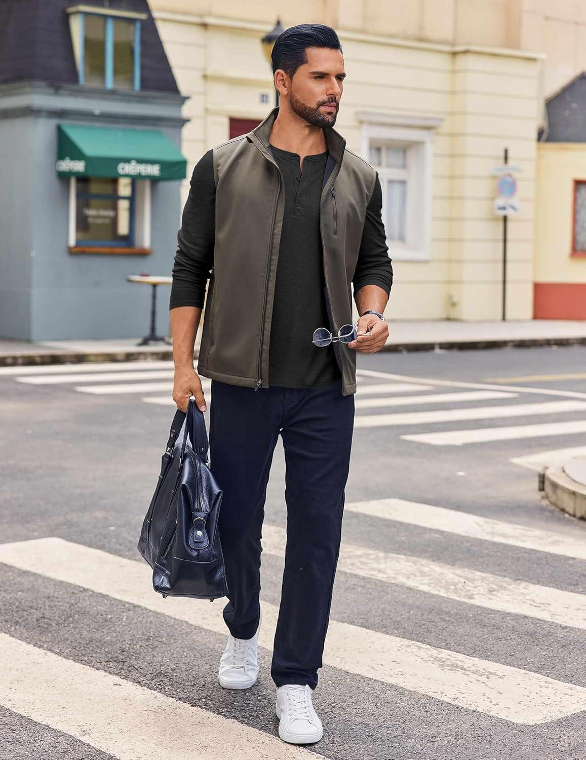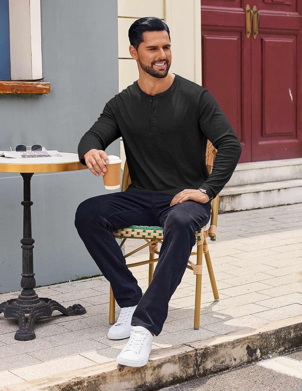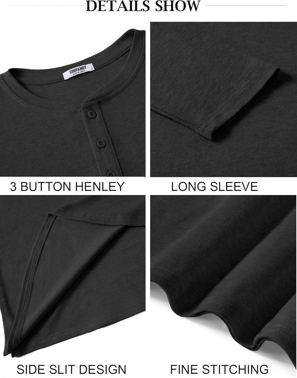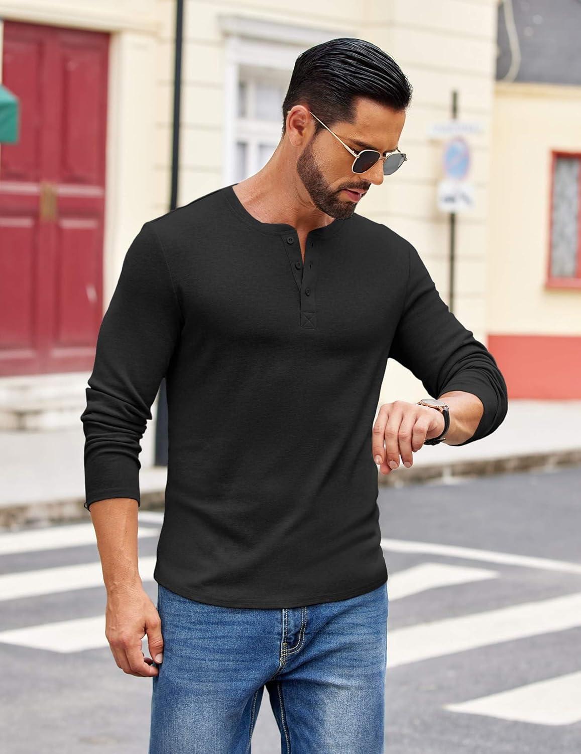 COOFANDY Mens Henley Shirts Long Sleeve Casual Pullover Shirt Fashion Button T-Shirt(Black)
