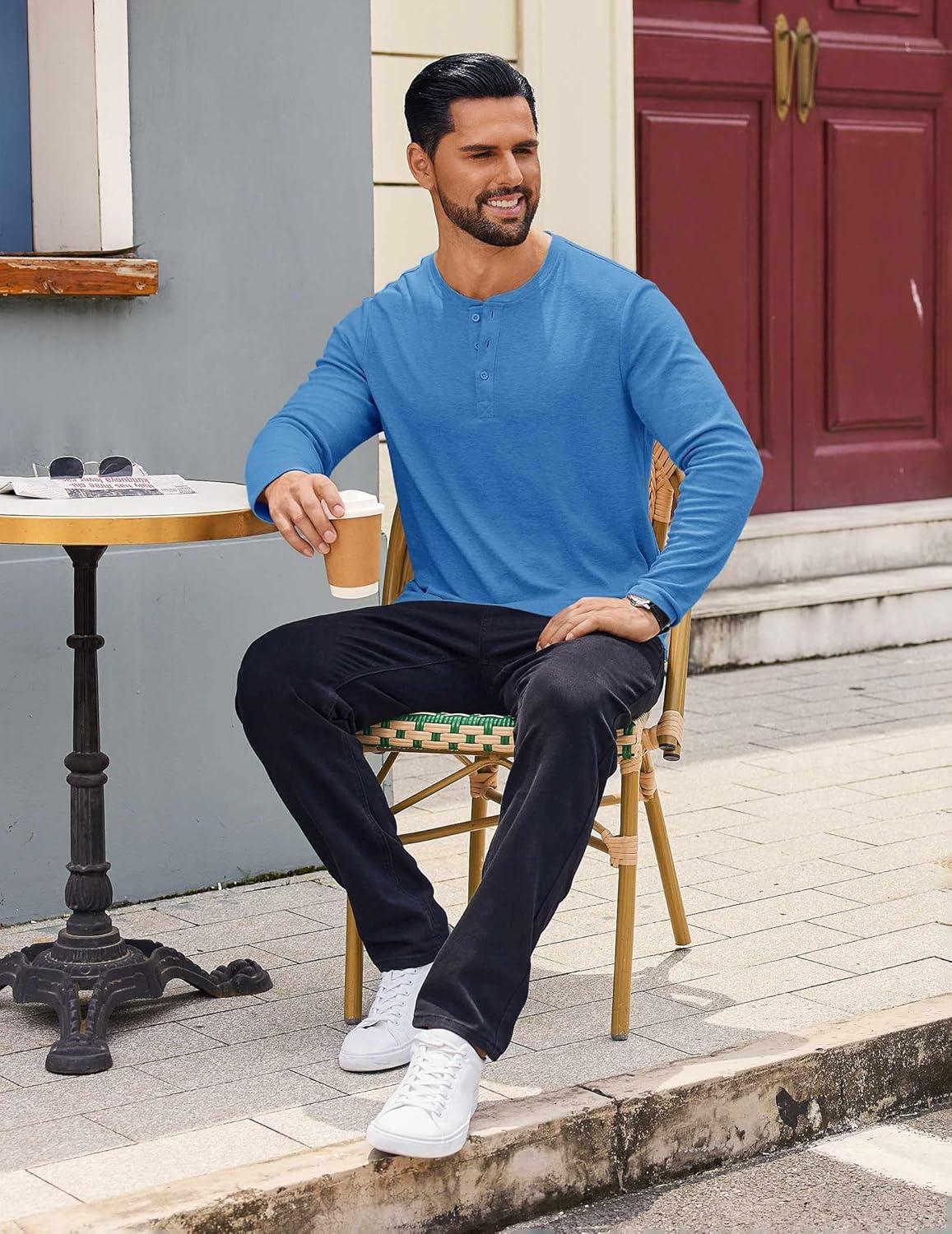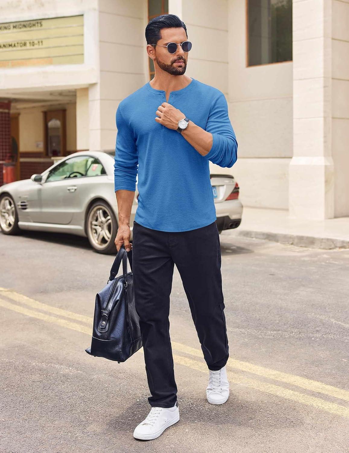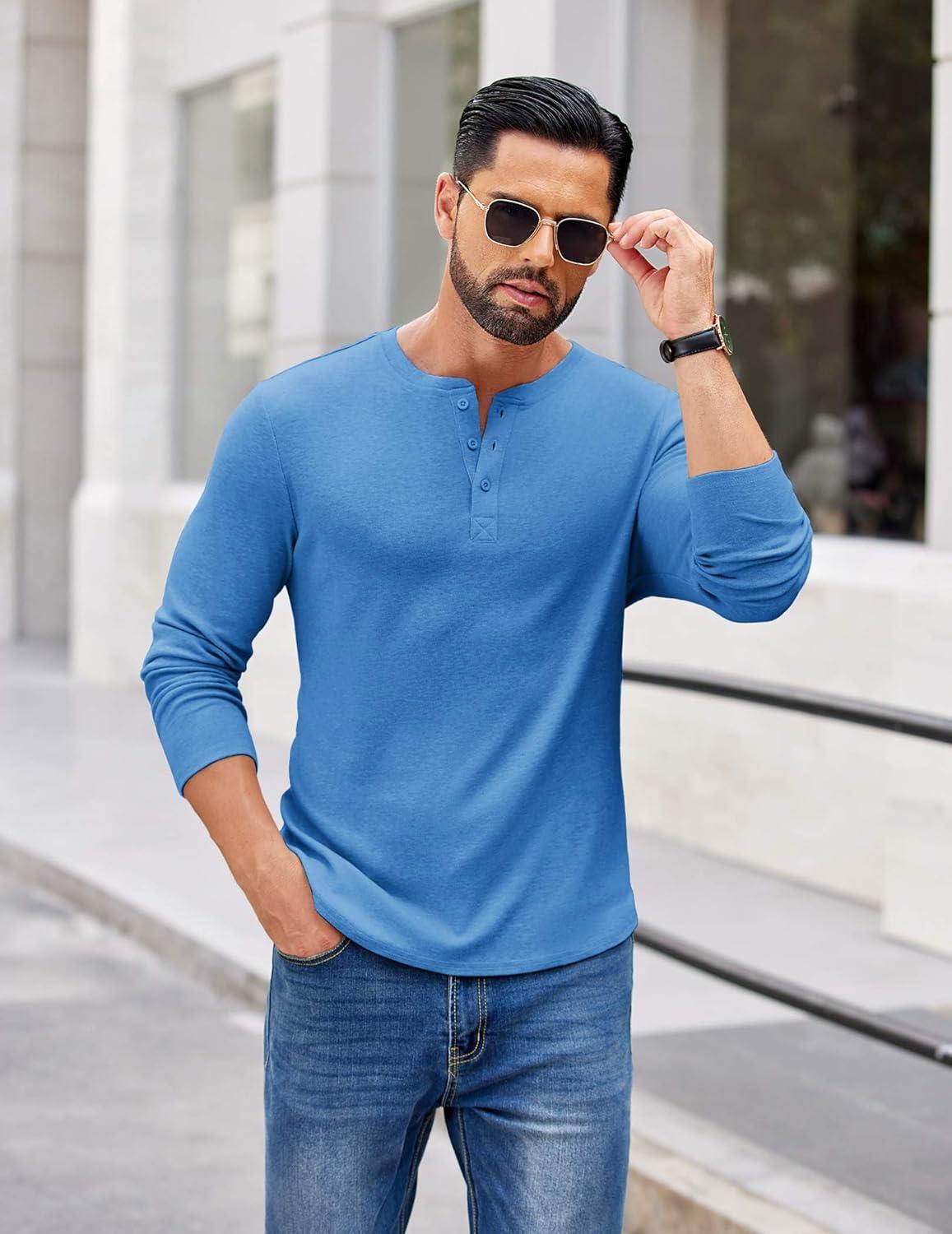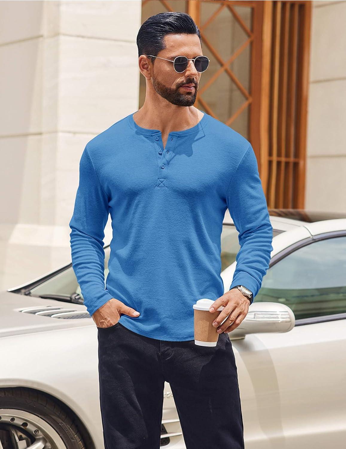 Get your hands on our exclusive COOFANDY Mens Henley Shirts Long Sleeve Casual Pullover Shirt Fashion Button T-Shirt(Blue) collection, now at a discounted price.