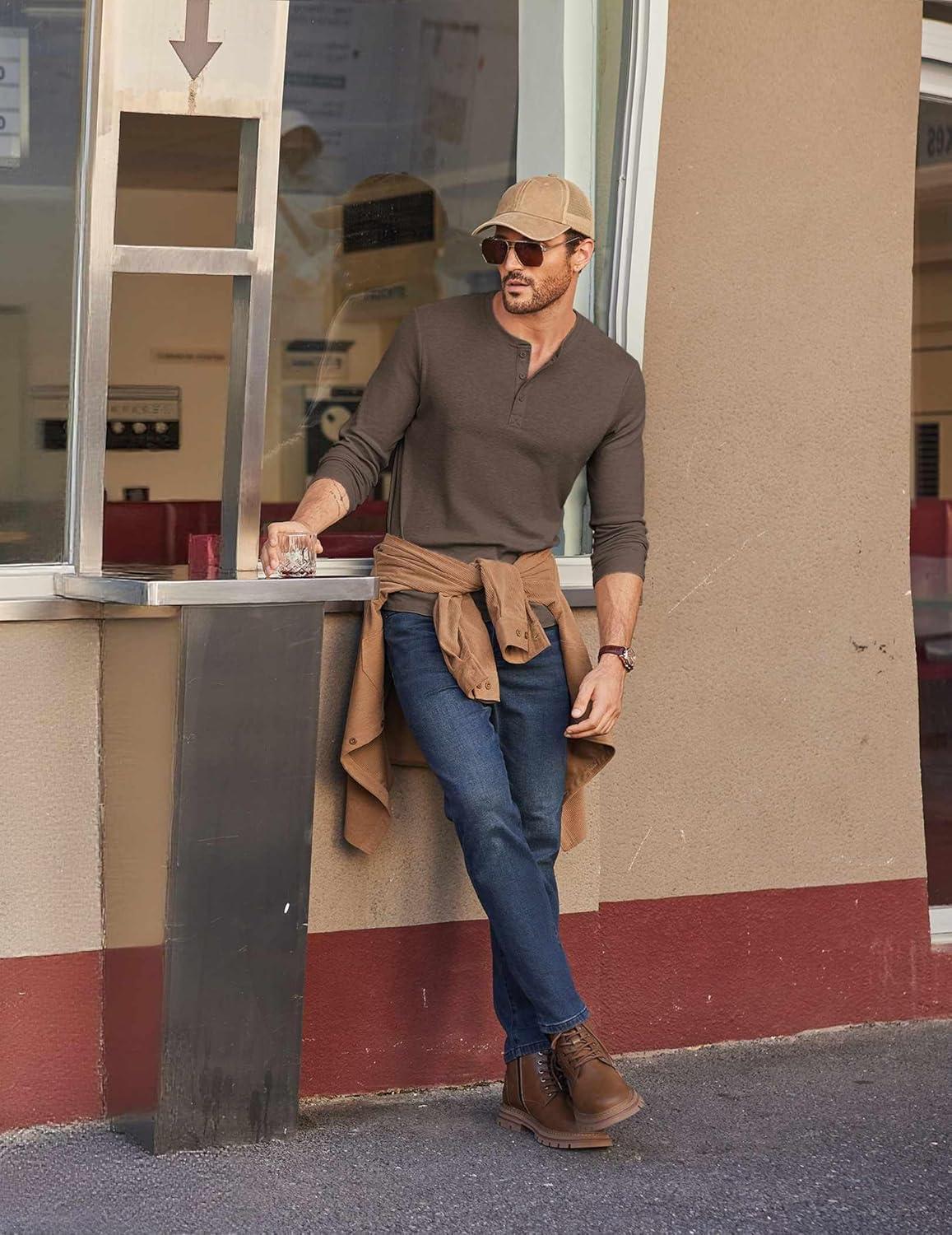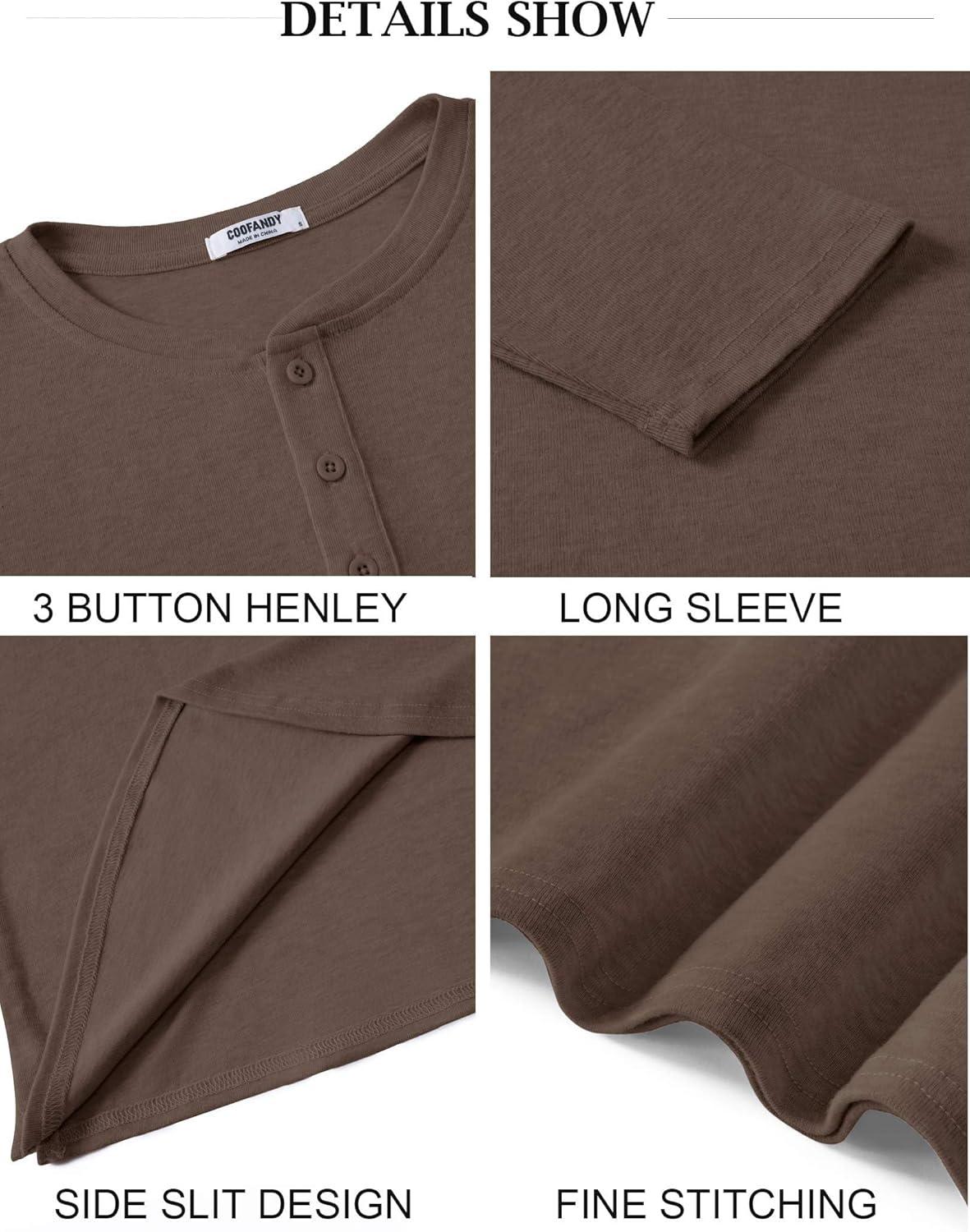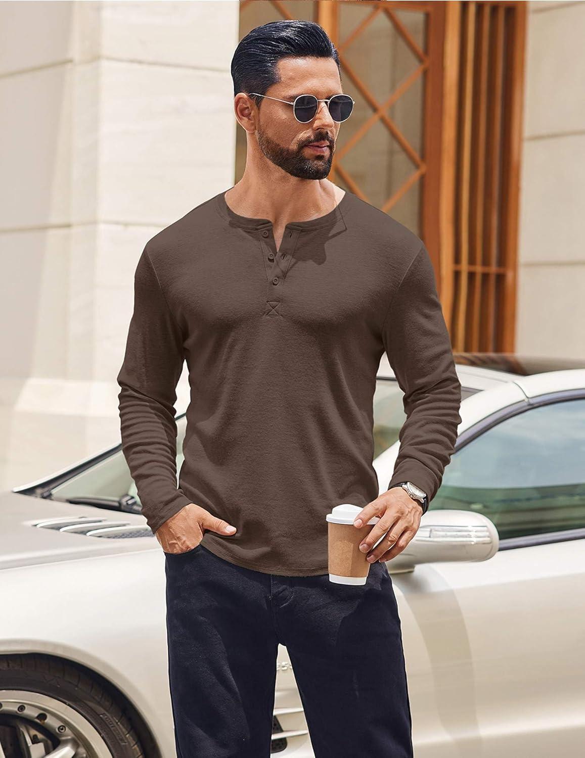 Get the COOFANDY Mens Henley Shirts Long Sleeve Casual Pullover Shirt Fashion Button T-Shirt(Brown) you want at a discounted price during our markdown sale event.