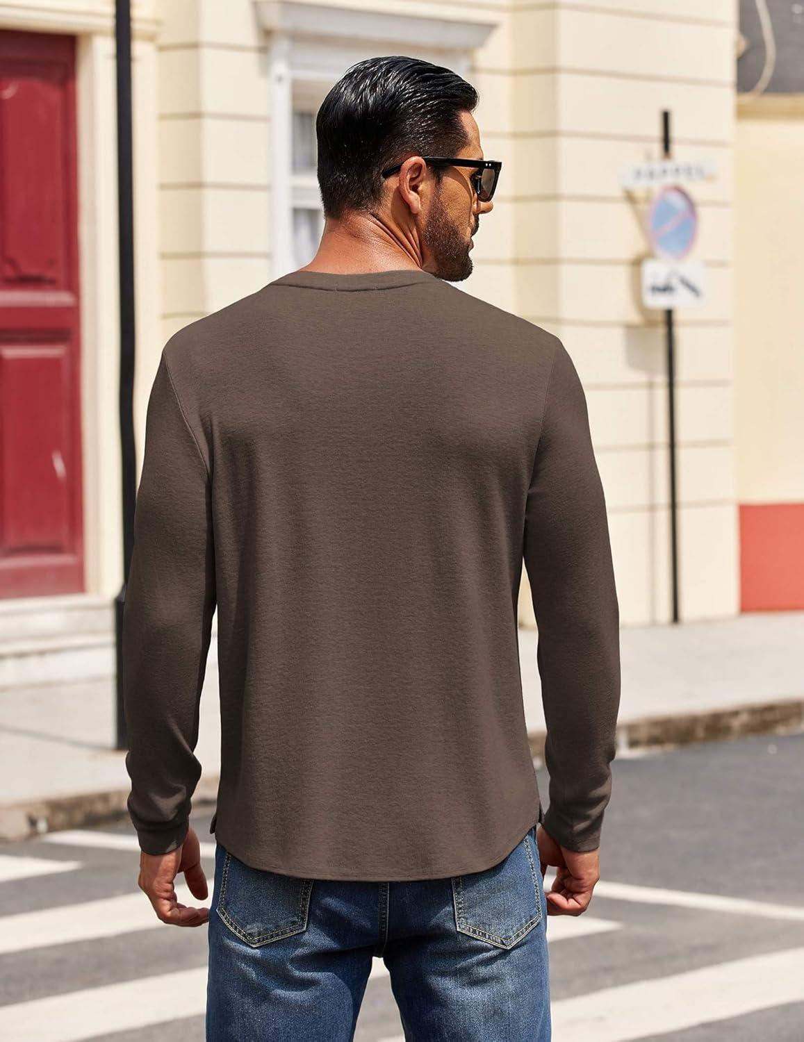 COOFANDY Mens Henley Shirts Long Sleeve Casual Pullover Shirt Fashion Button T-Shirt(Brown)