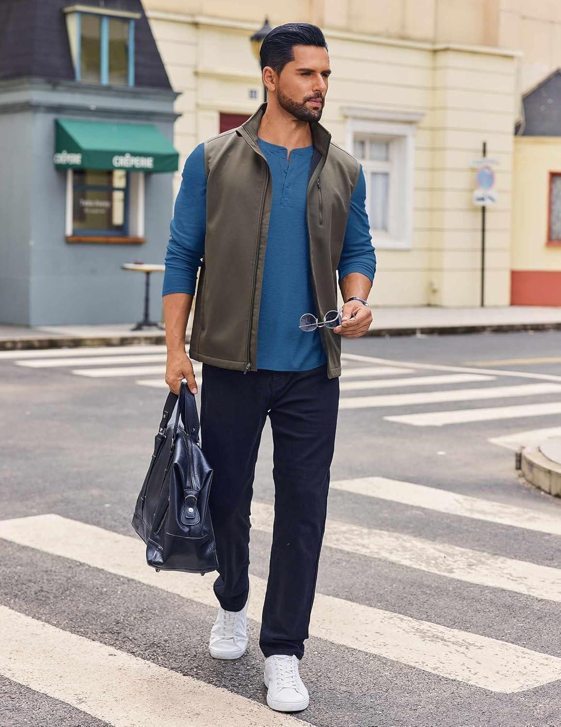 COOFANDY Mens Henley Shirts Long Sleeve Casual Pullover Shirt Fashion Button T-Shirt(Khaki)