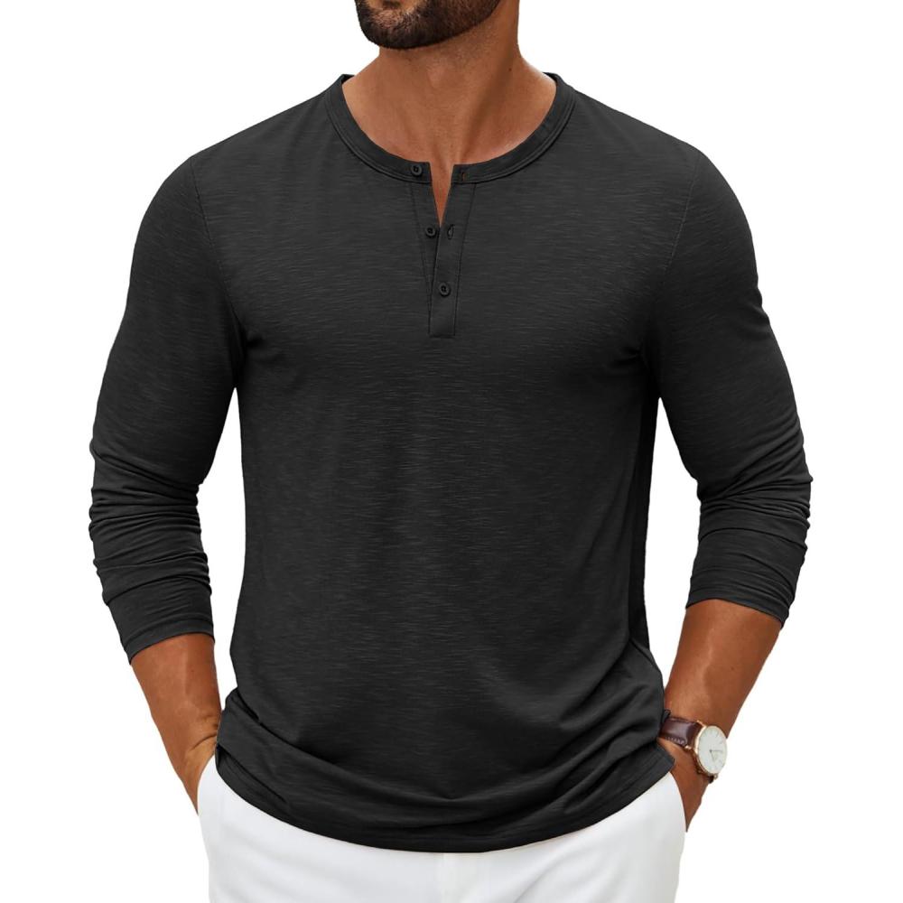 COOFANDY Men's Henley Shirts Long Sleeve Casual Pullover T-Shirt Fashion Basic Button Shirtst(A-black)