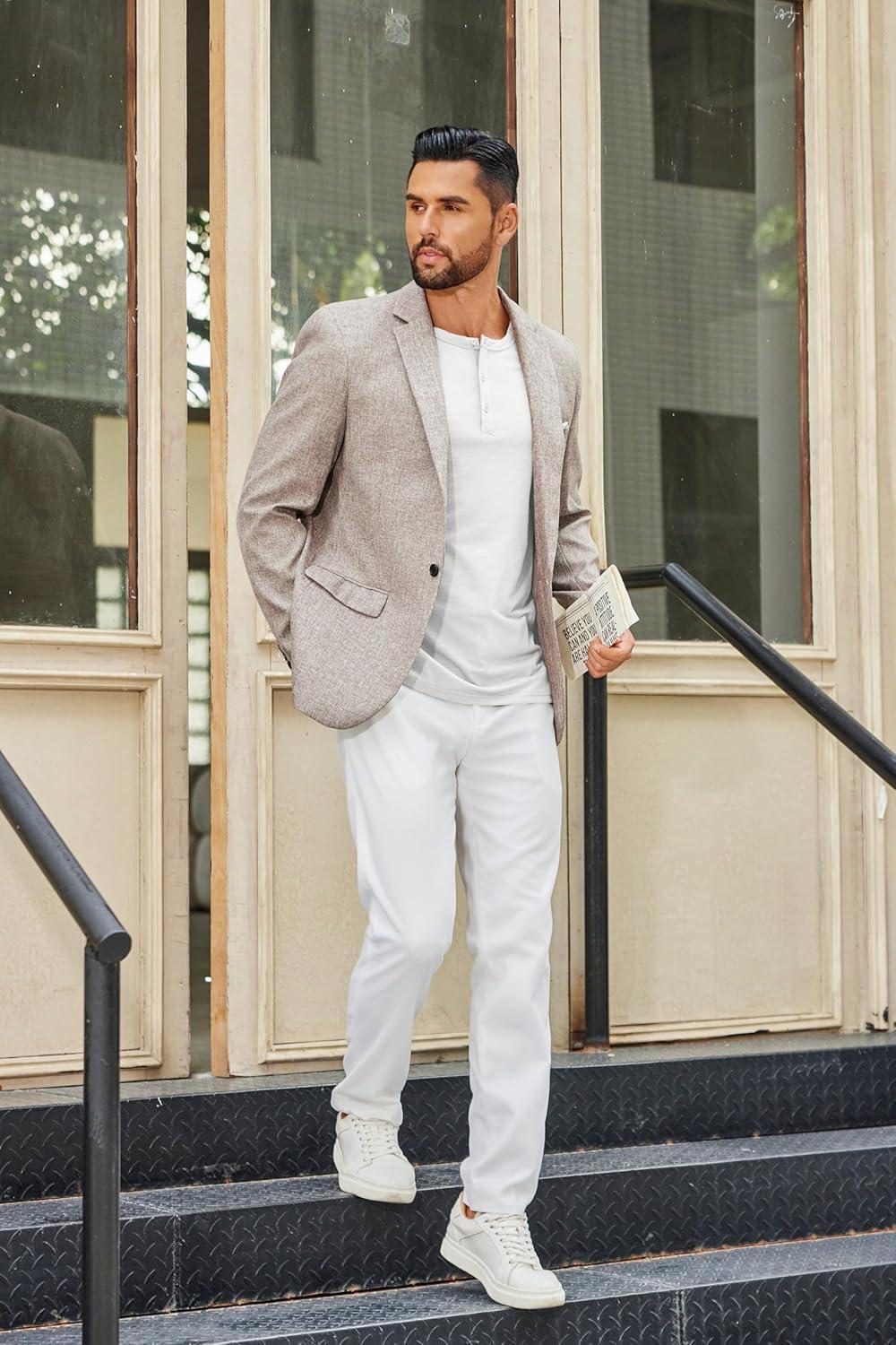 COOFANDY Men's Henley Shirts Long Sleeve Casual Pullover T-Shirt Fashion Basic Button Shirtst(White)