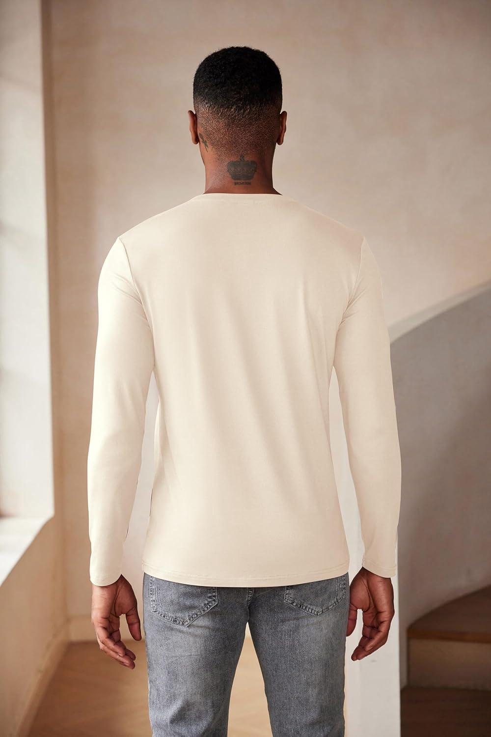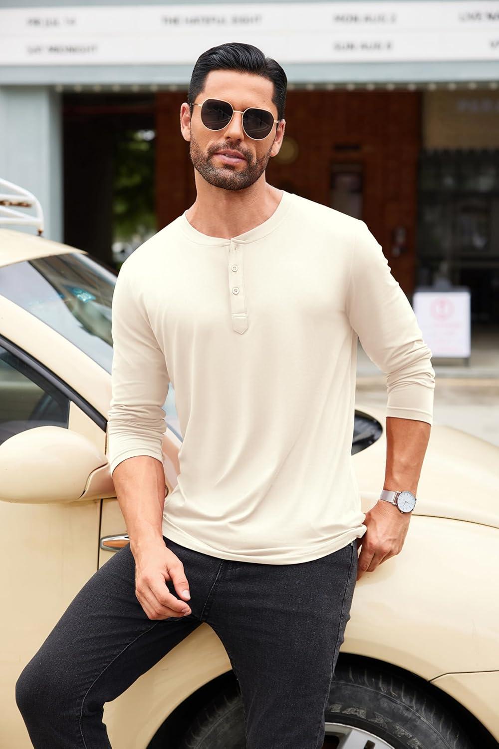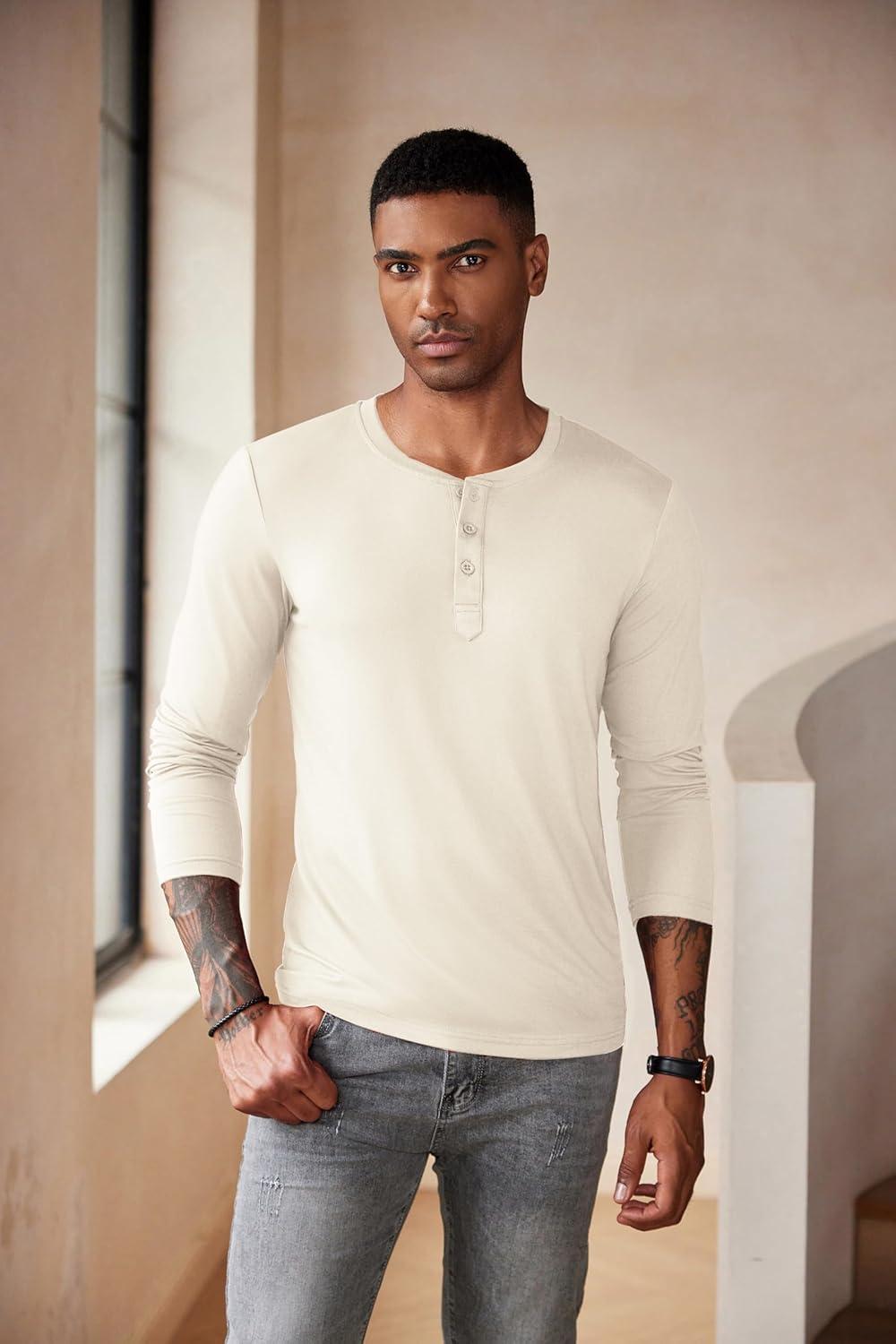 COOFANDY Men’s Henley Shirts Long Sleeve Fashion Casual Tee Basic Lightweight T-Shirt(Beige)