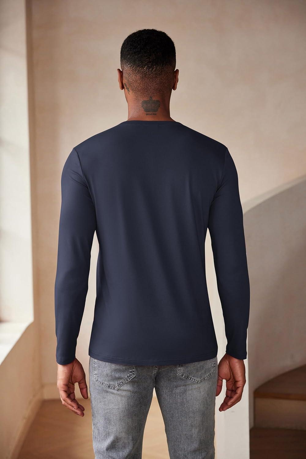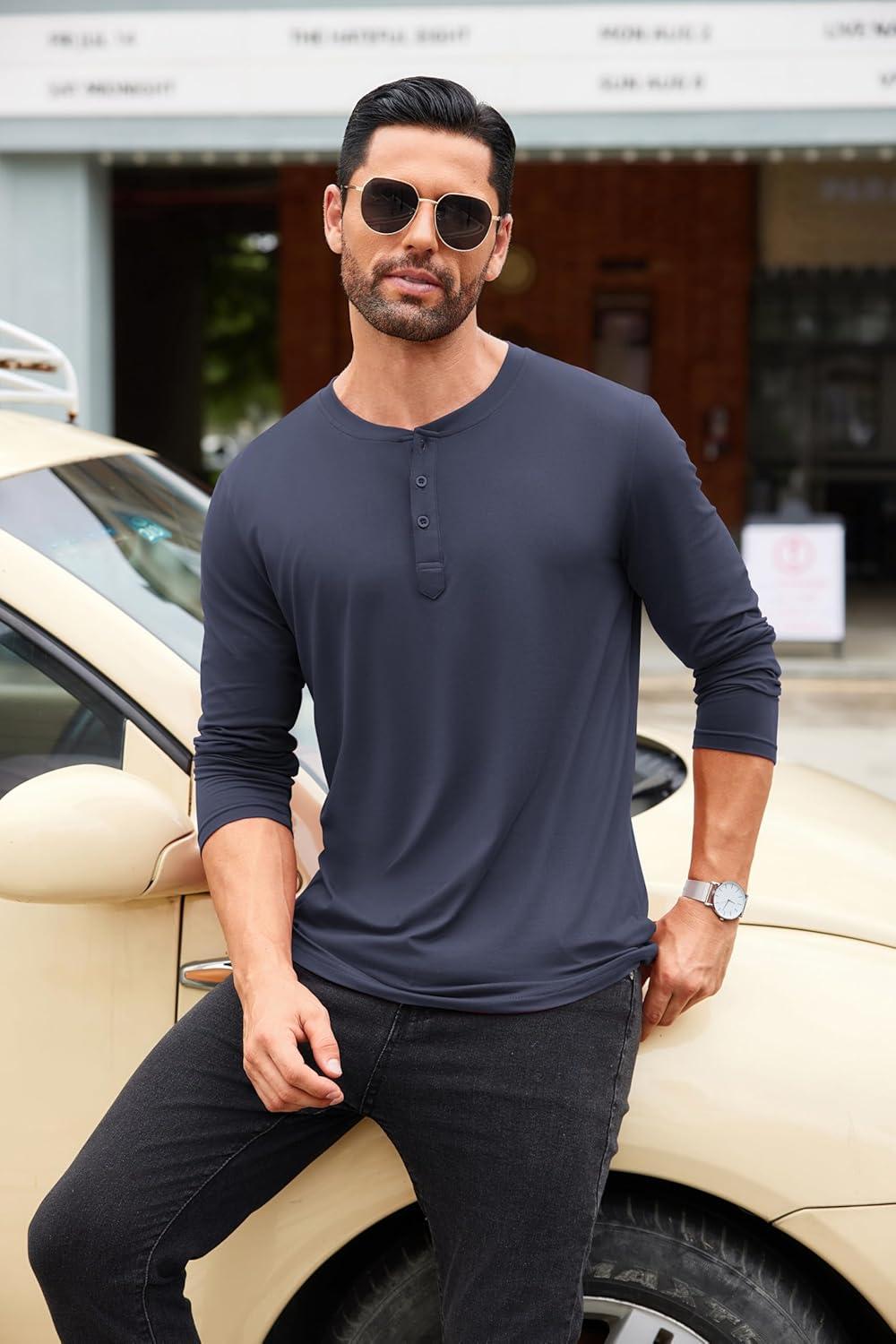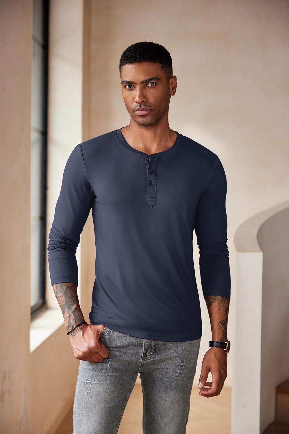 COOFANDY Men's Henley Shirts Long Sleeve Fashion Casual Tee Basic Lightweight T-Shirt(Navy Blue)