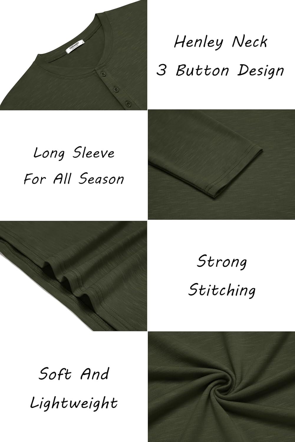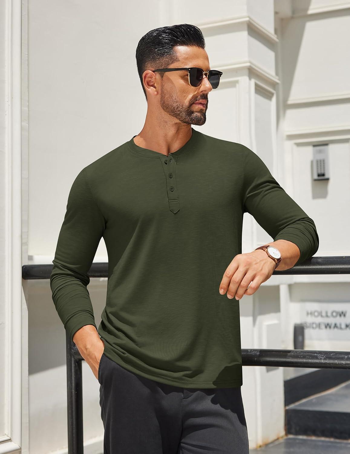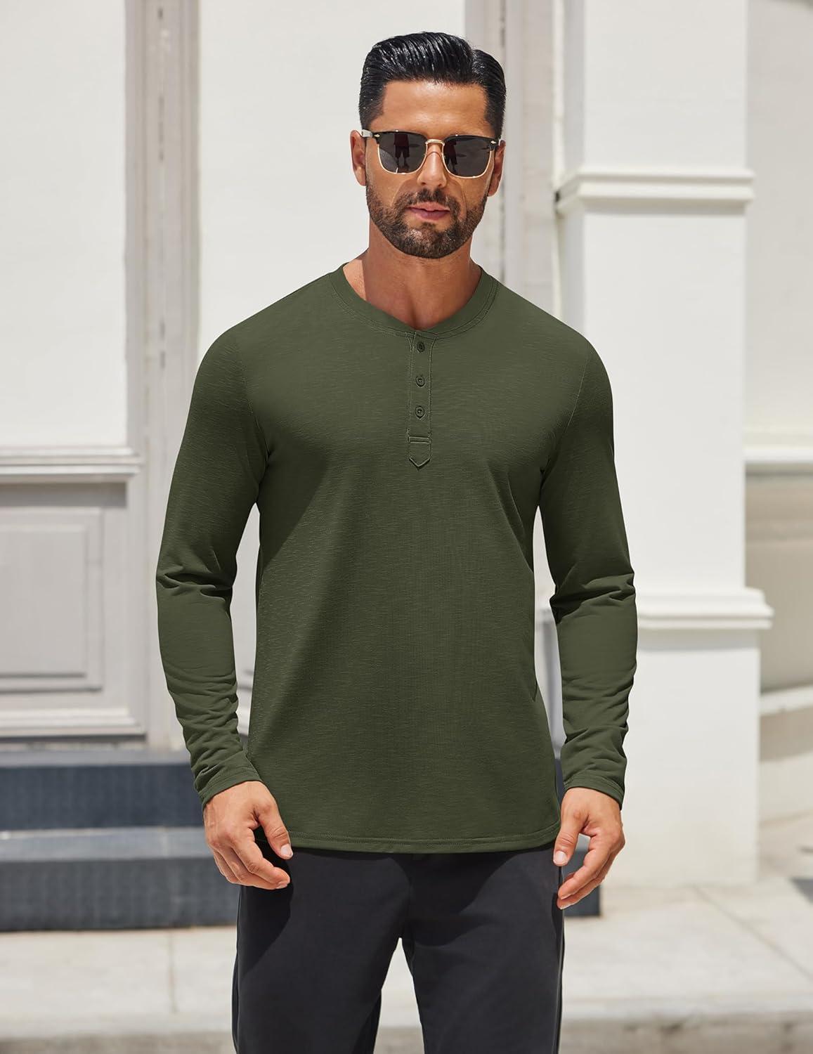 COOFANDY Men's Henley Shirts Long Sleeve Lightweight Button T-Shirt Casual Basic Tee Top(Army Green)