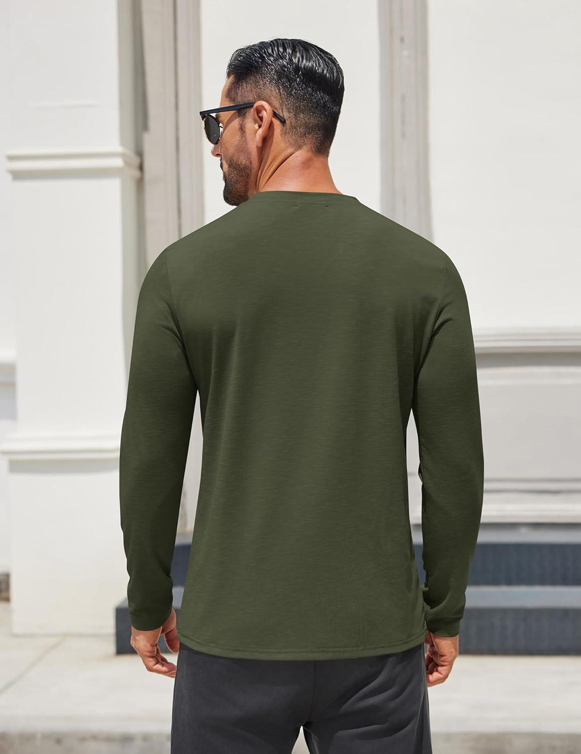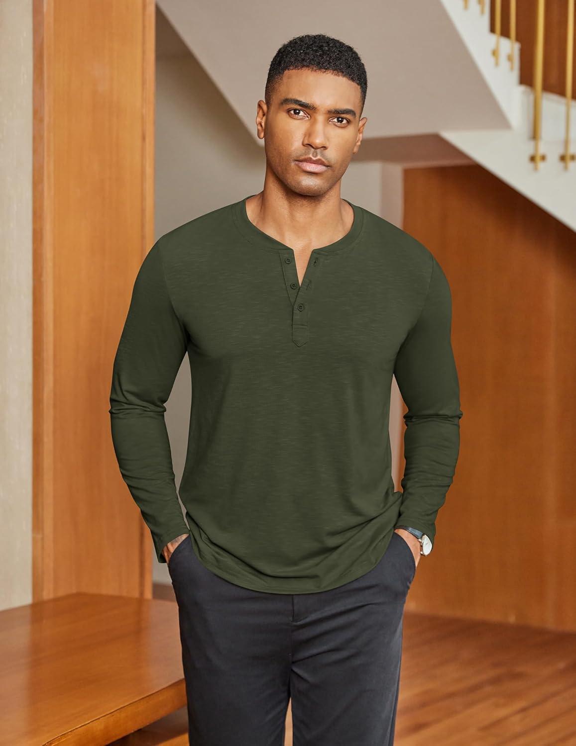 COOFANDY Men’s Henley Shirts Long Sleeve Lightweight Button T-Shirt Casual Basic Tee Top(Army Green)