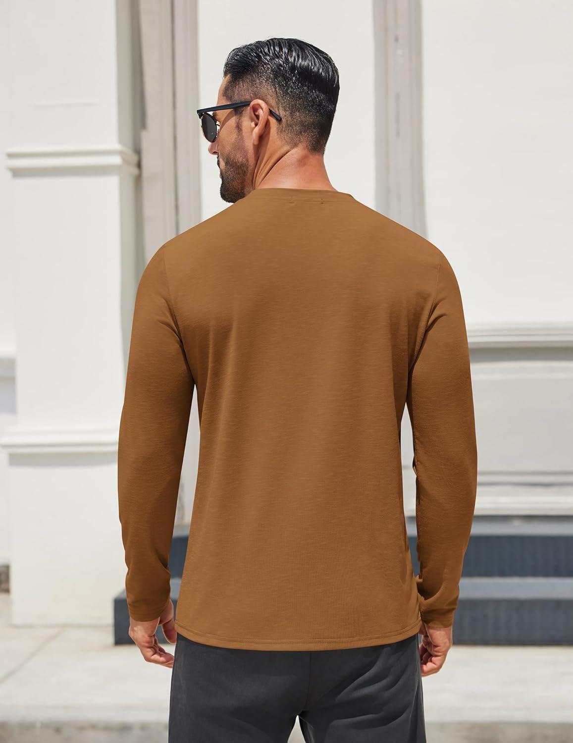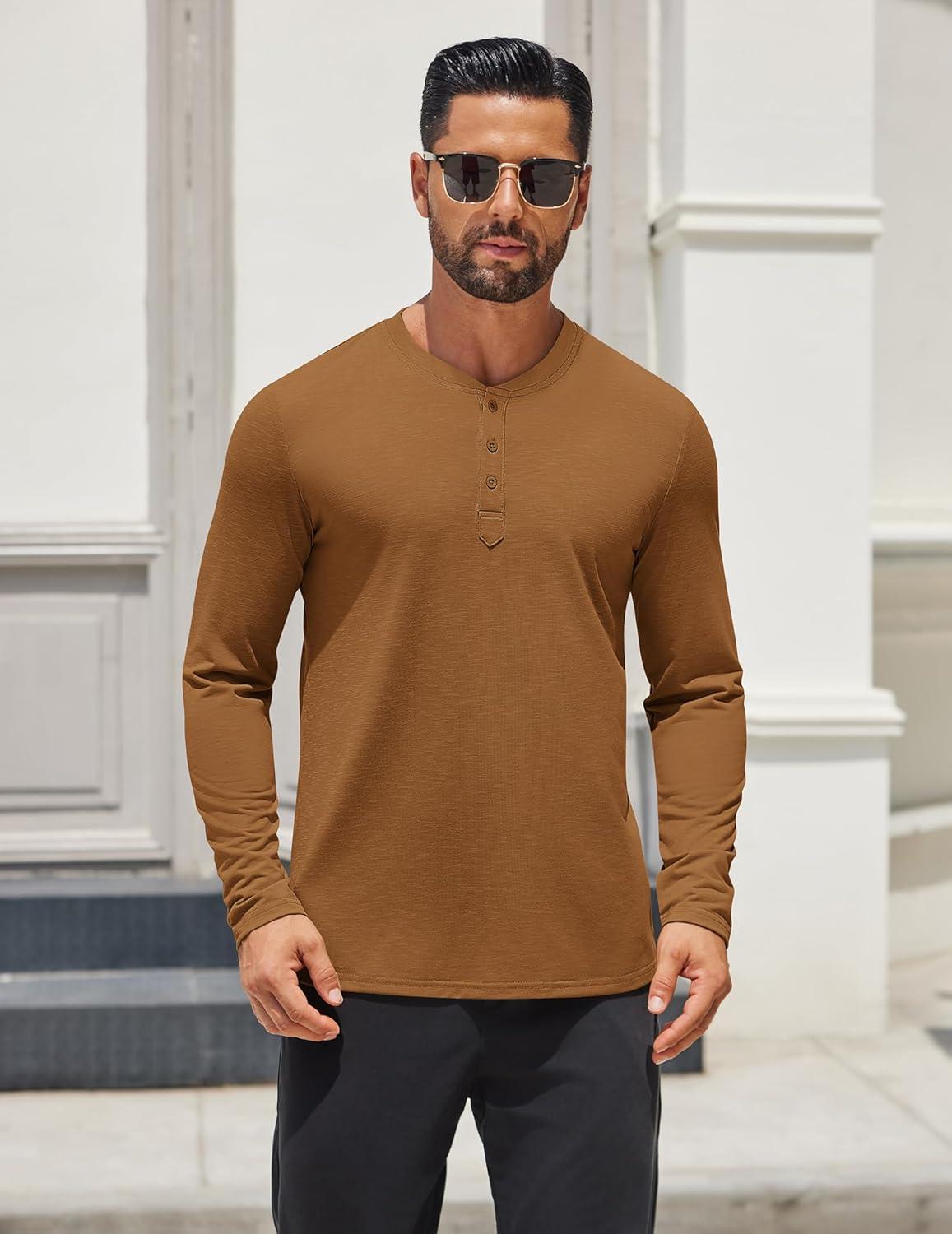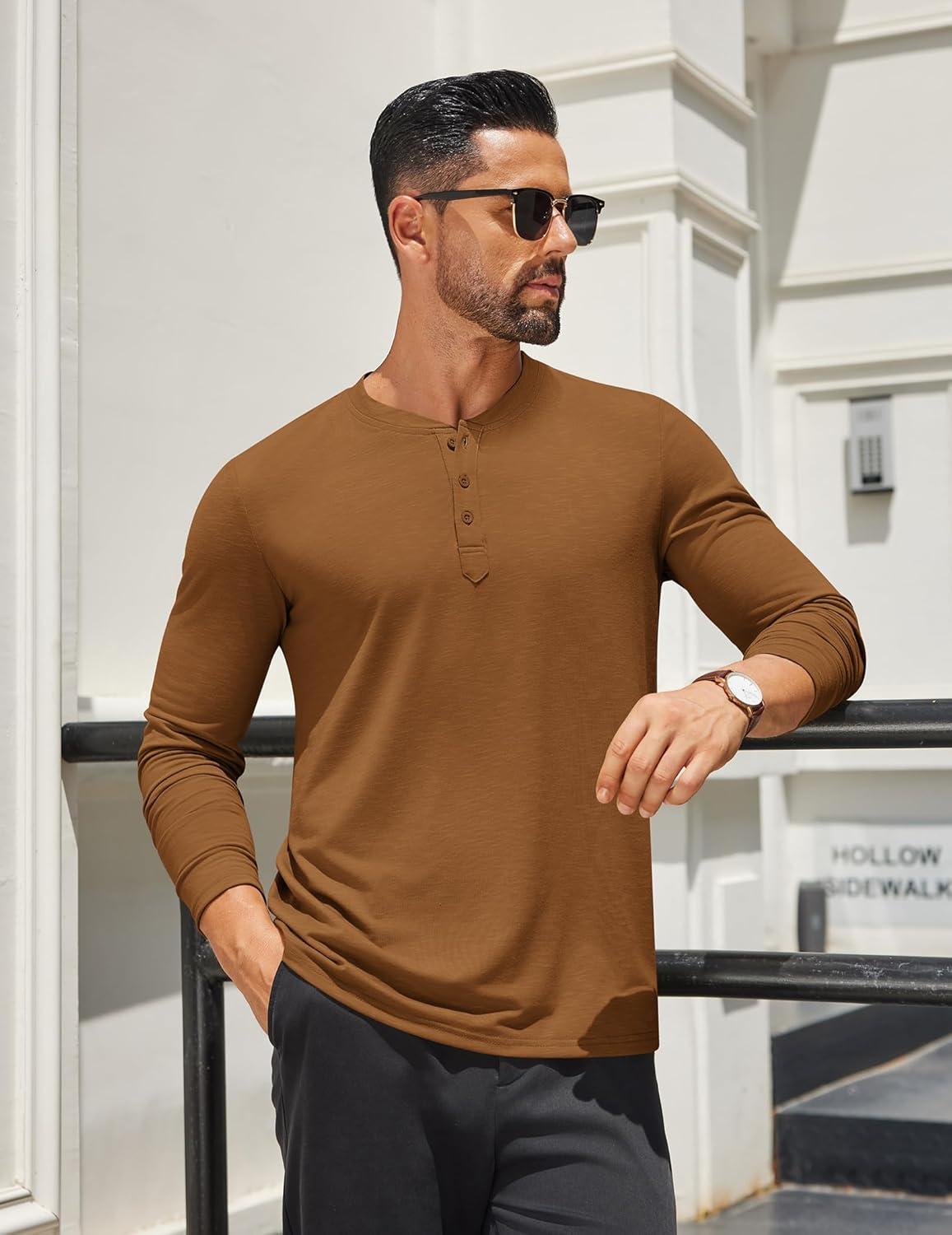 COOFANDY Men's Henley Shirts Long Sleeve Lightweight Button T-Shirt Casual Basic Tee Top(Caramel Brown)