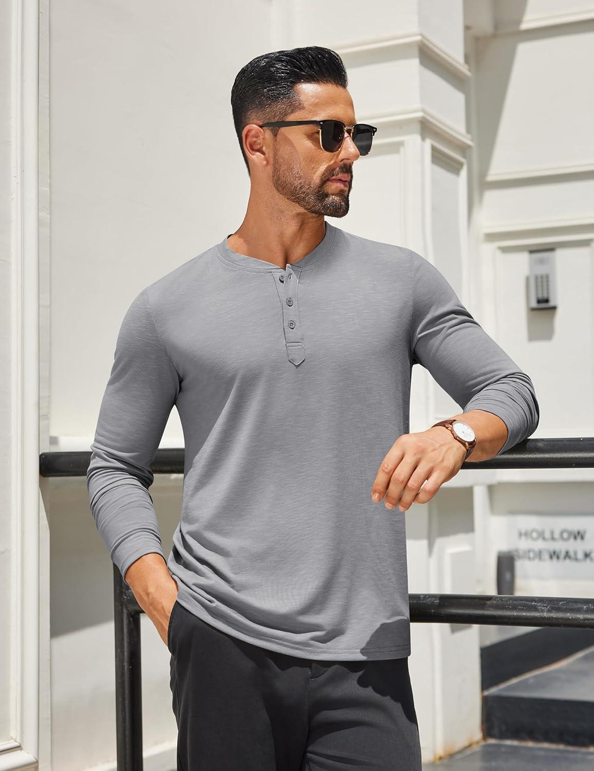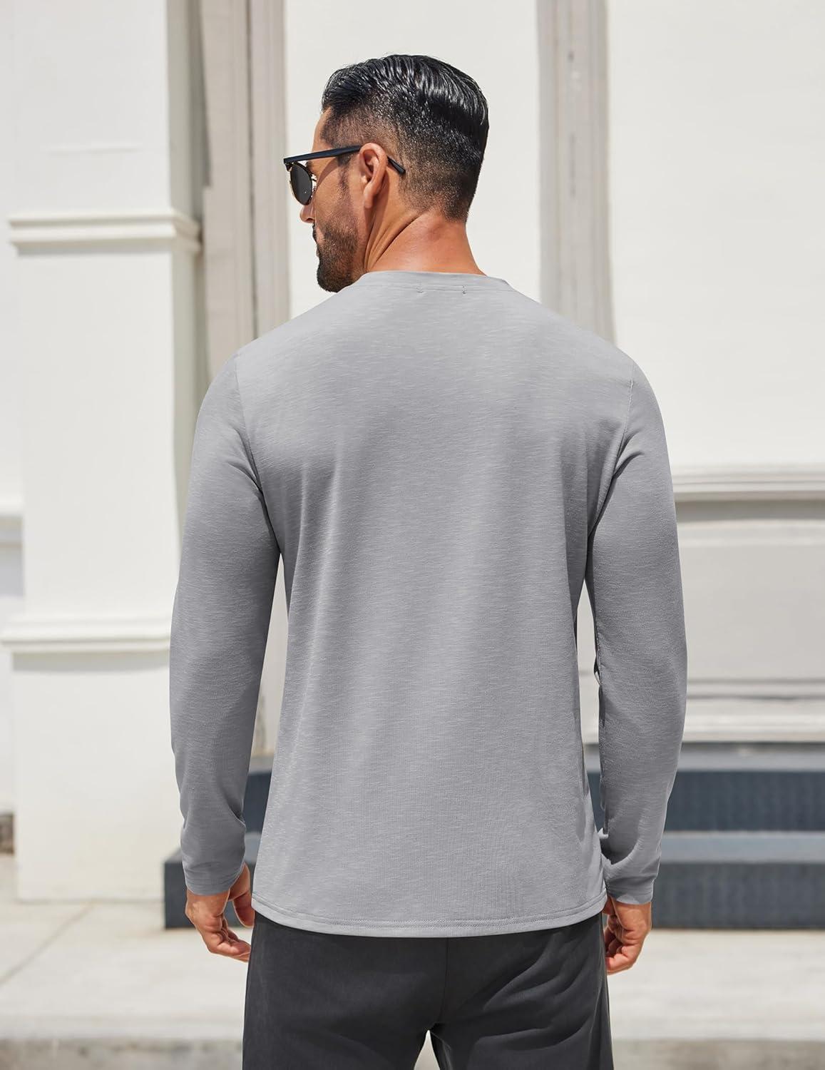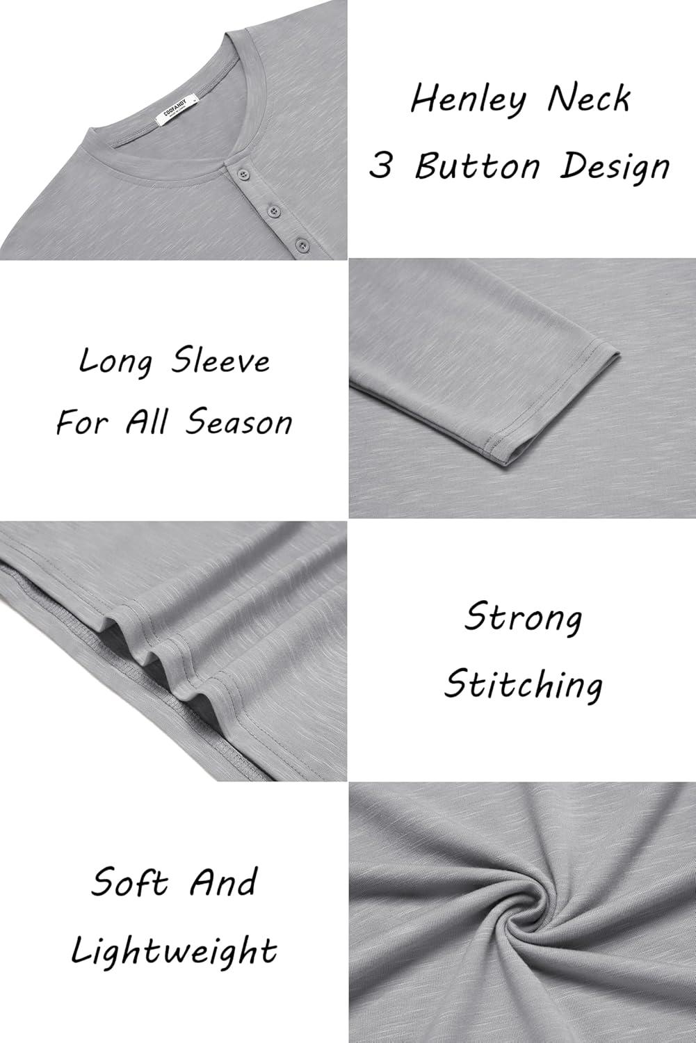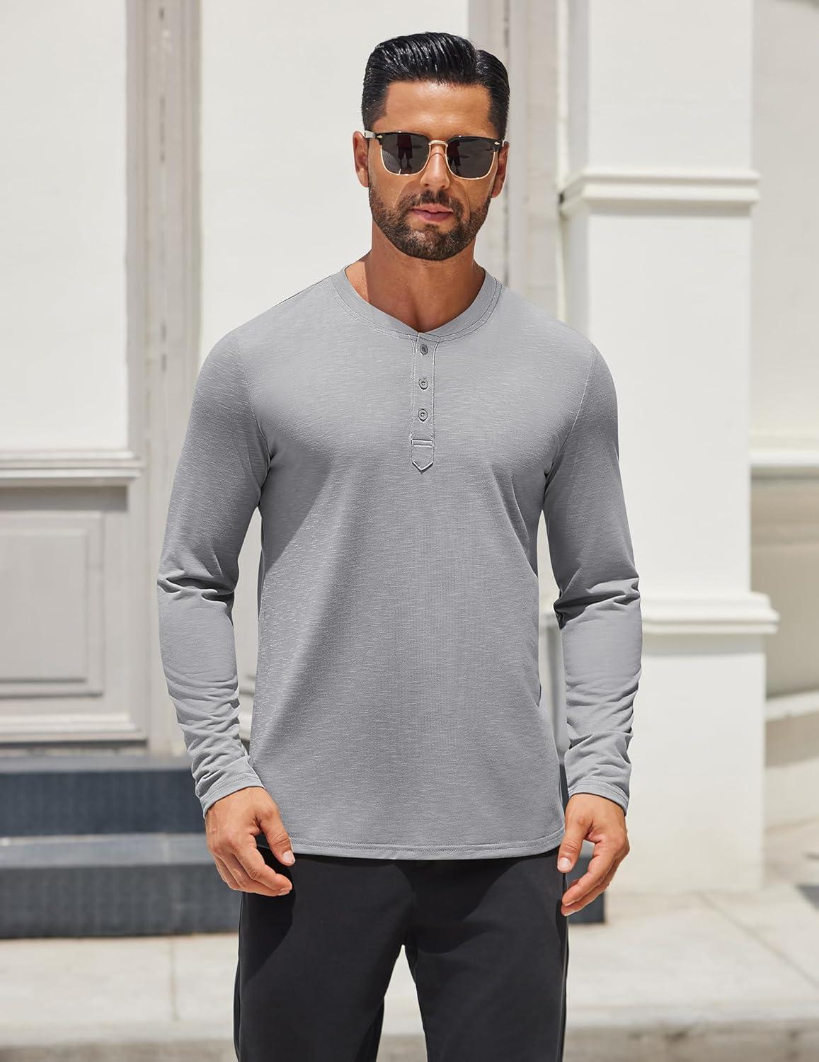 COOFANDY Men's Henley Shirts Long Sleeve Lightweight Button T-Shirt Casual Basic Tee Top(Light Grey)