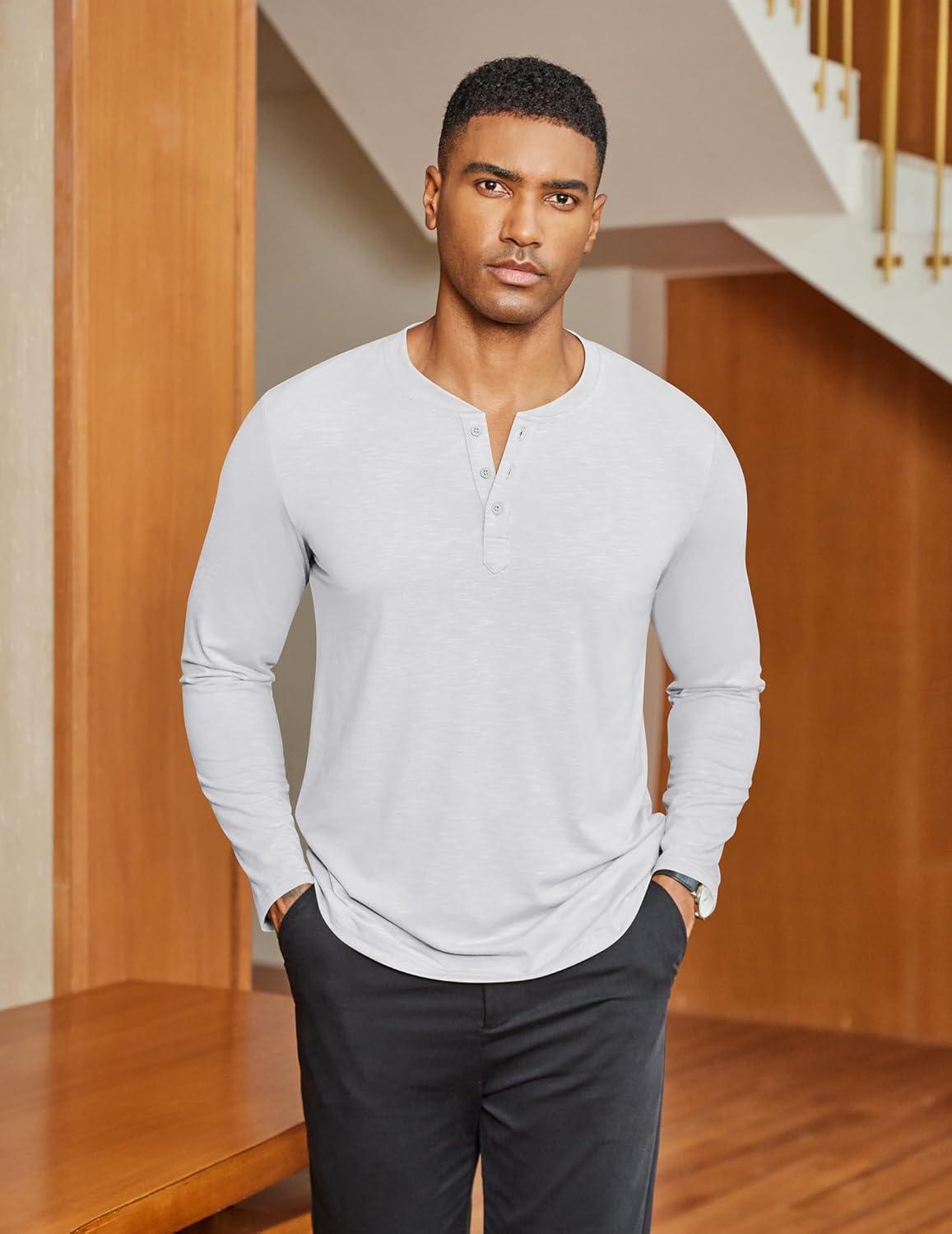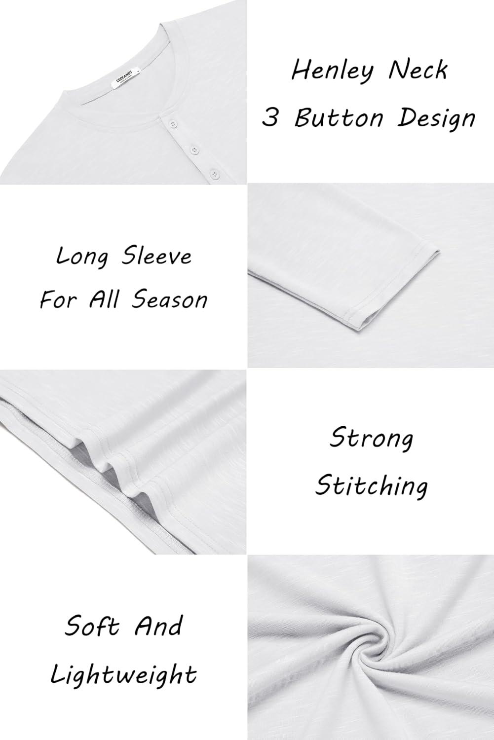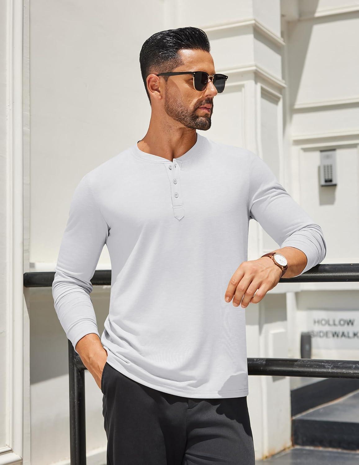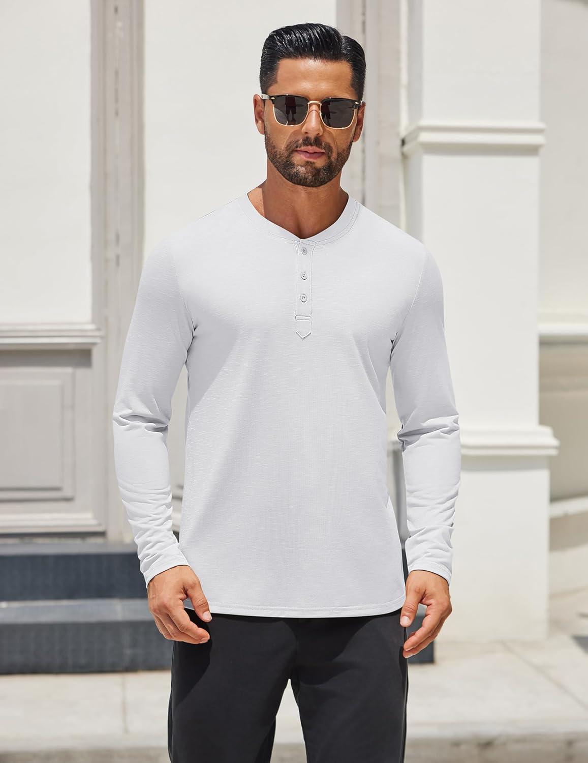 COOFANDY Men's Henley Shirts Long Sleeve Lightweight Button T-Shirt Casual Basic Tee Top(White)