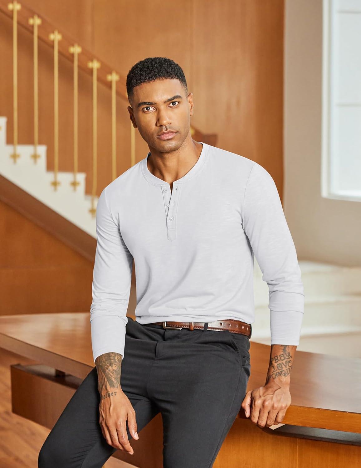 imageCOOFANDY Mens Henley Shirts Long Sleeve Lightweight Button TShirt Casual Basic Tee TopWhite