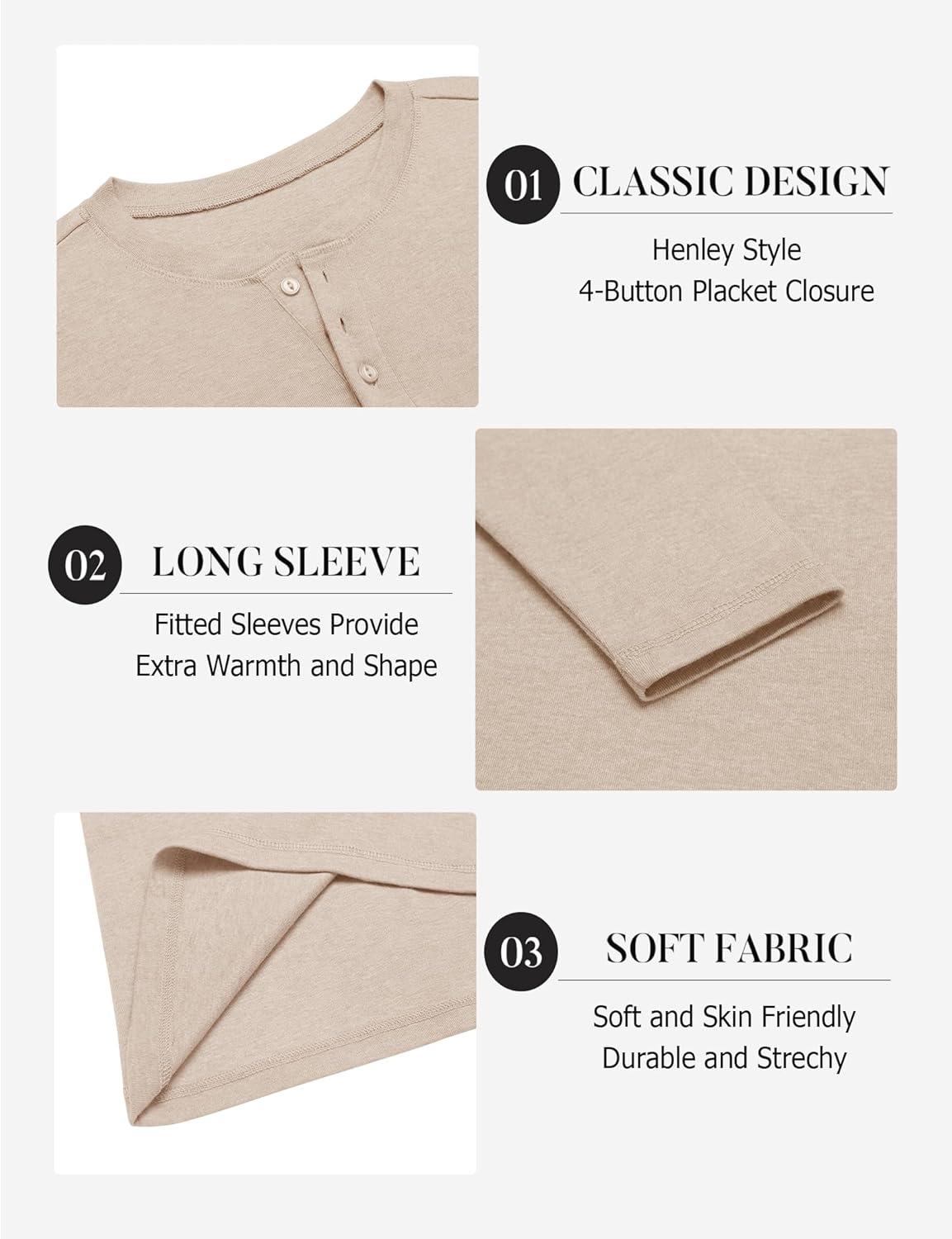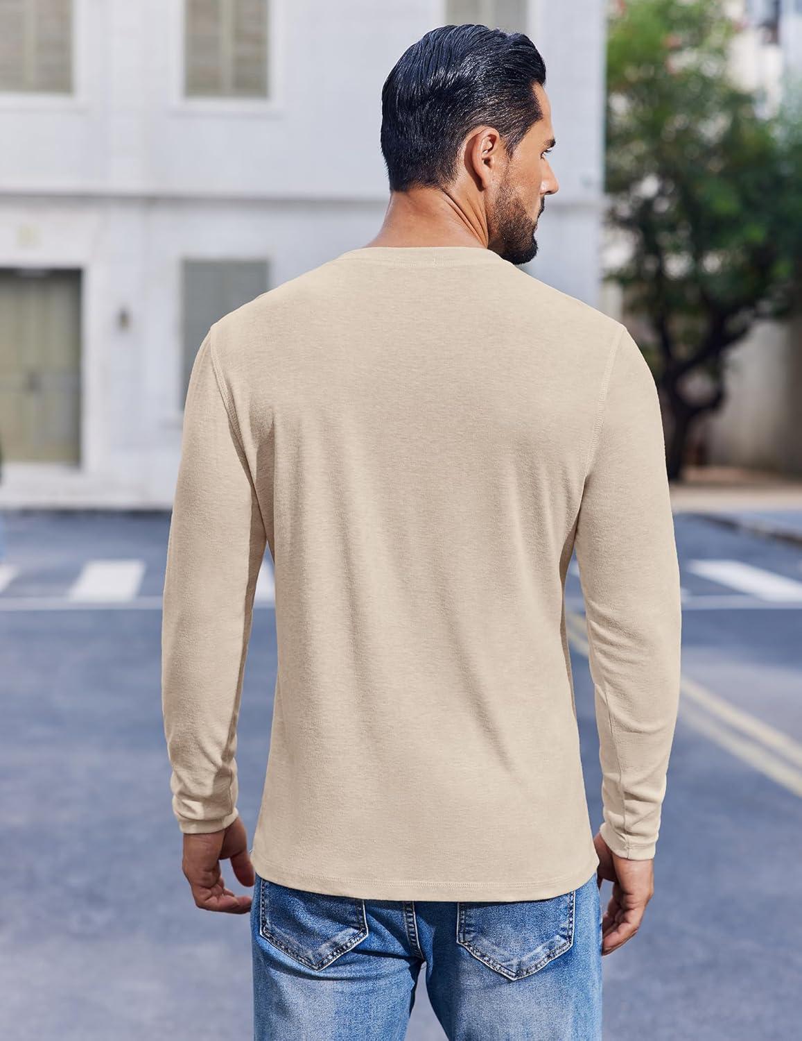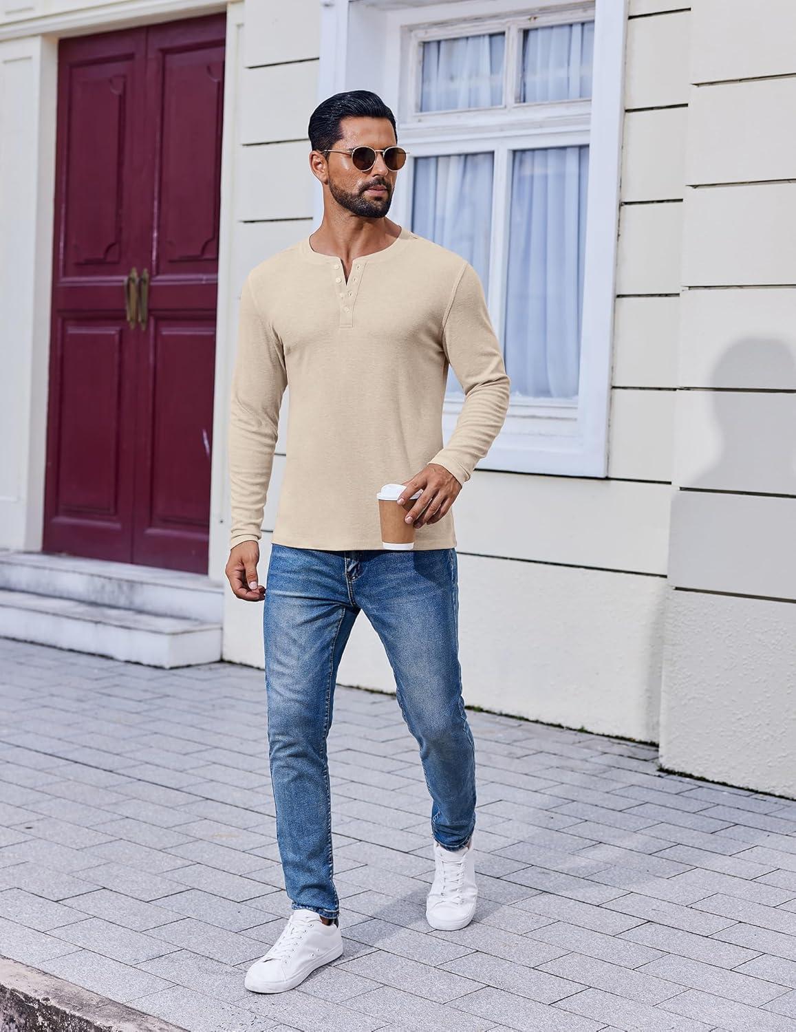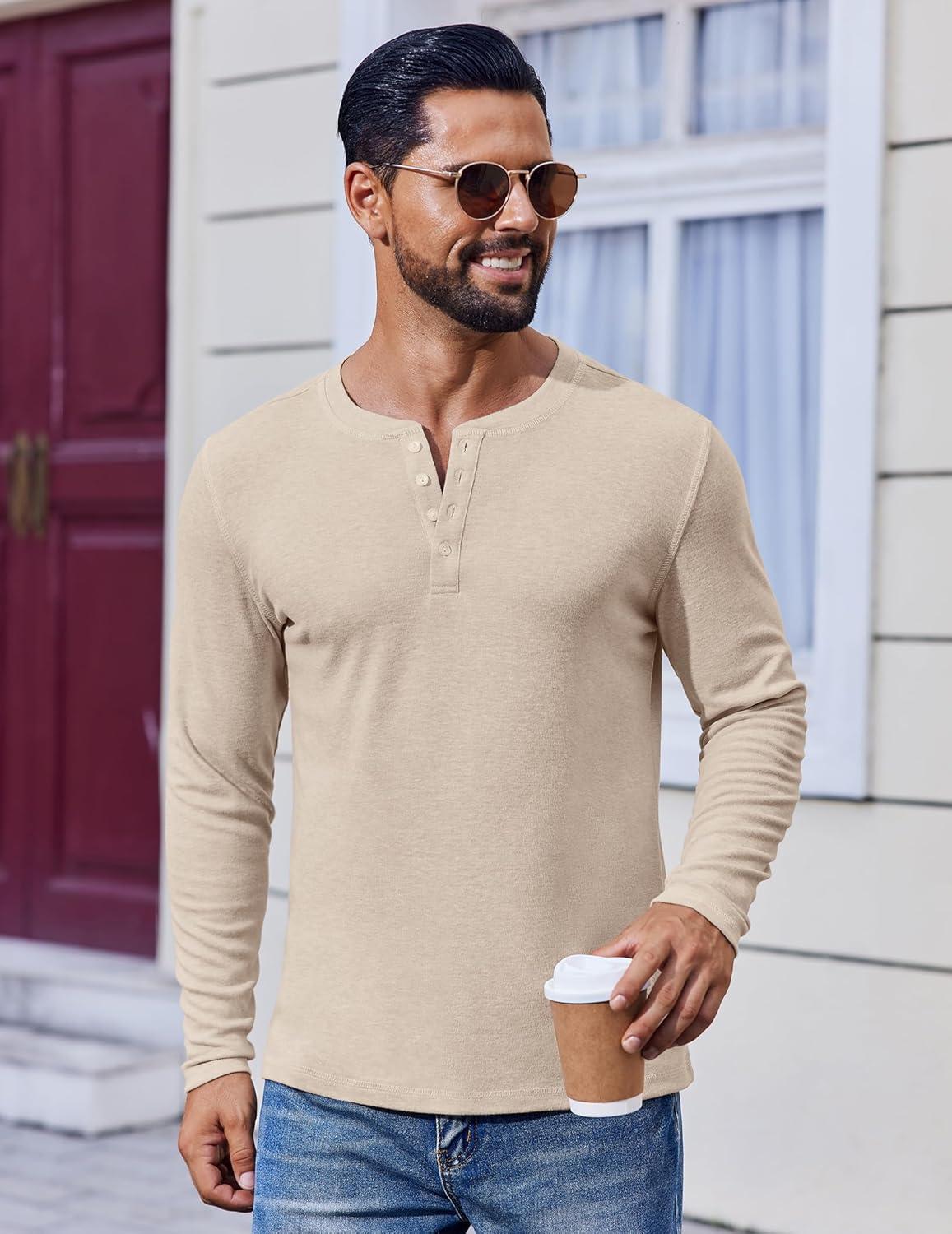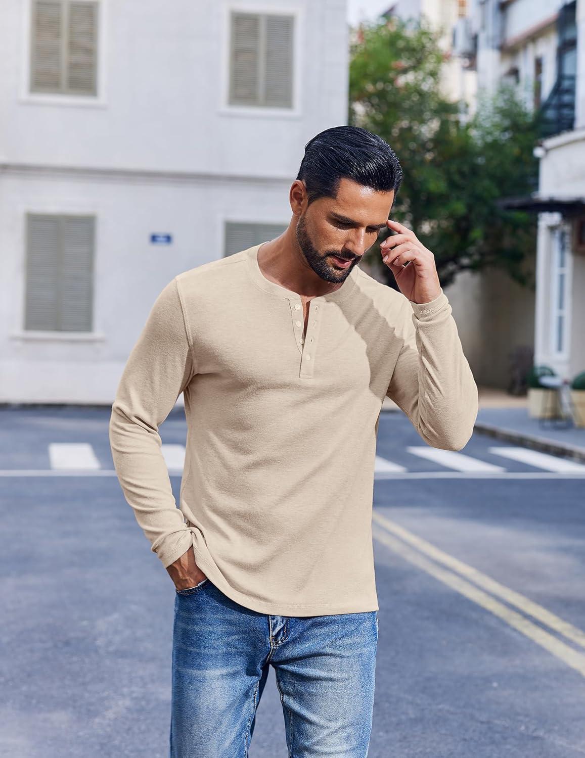 COOFANDY Mens Henley Shirts Long Sleeve Lightweight Buttons T-Shirts Casual Basic Pullover Top(Light Khaki)