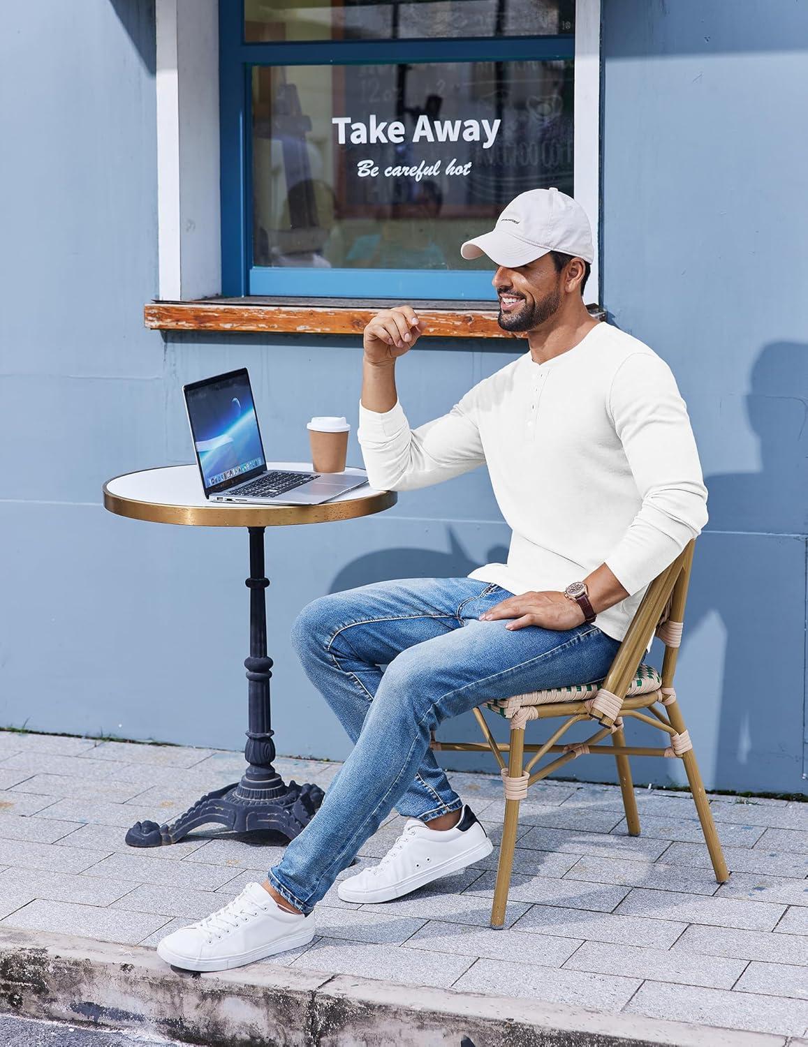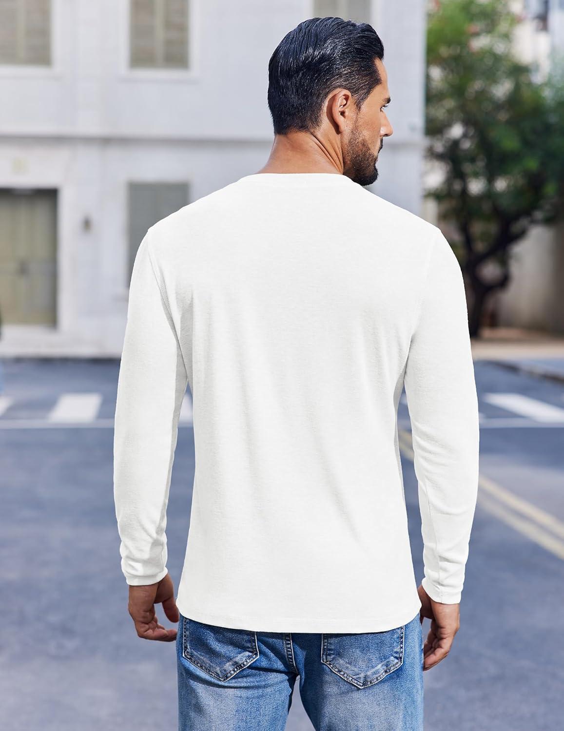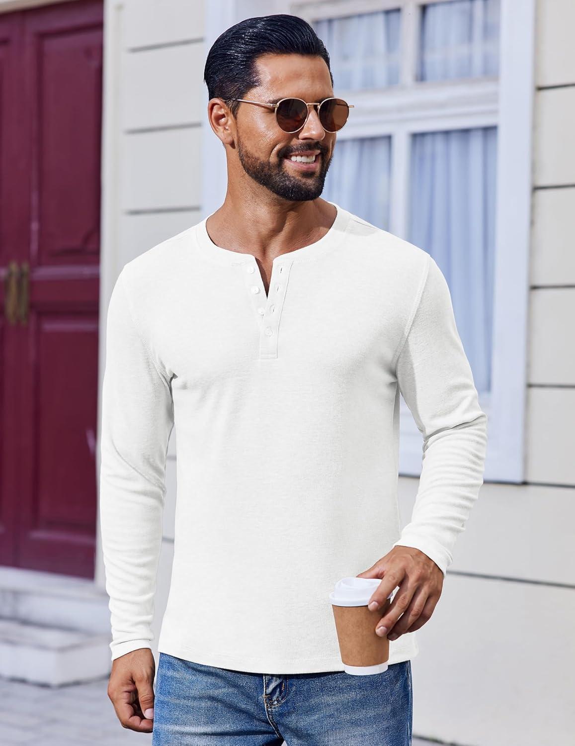 COOFANDY Mens Henley Shirts Long Sleeve Lightweight Buttons T-Shirts Casual Basic Pullover Top(White)