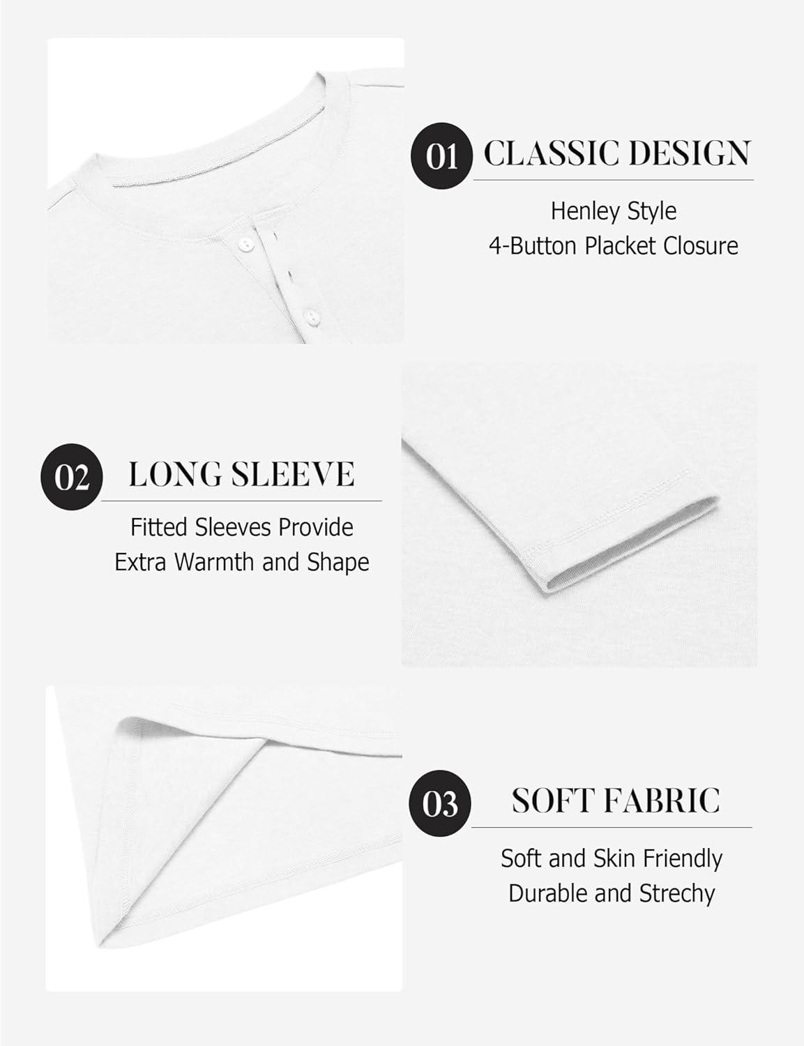imageCOOFANDY Mens Henley Shirts Long Sleeve Lightweight Buttons TShirts Casual Basic Pullover TopWhite