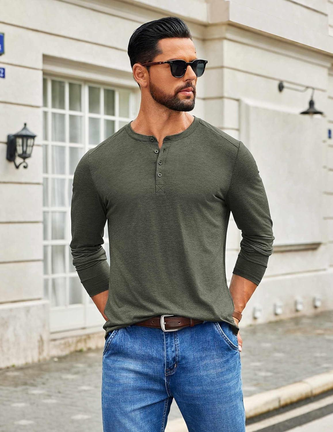 COOFANDY Men’s Henley Shirts Long Sleeve T-Shirt Lightweight Fashion Casual Pullover Tee Shirt(Army Green)