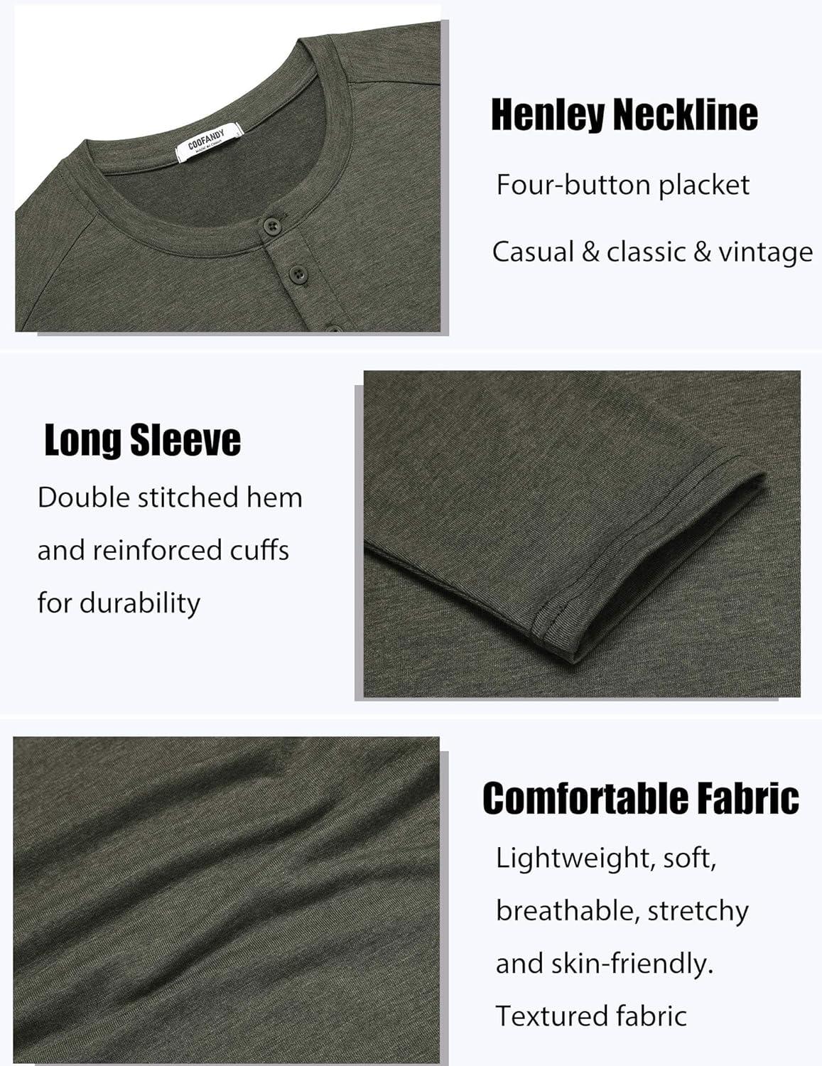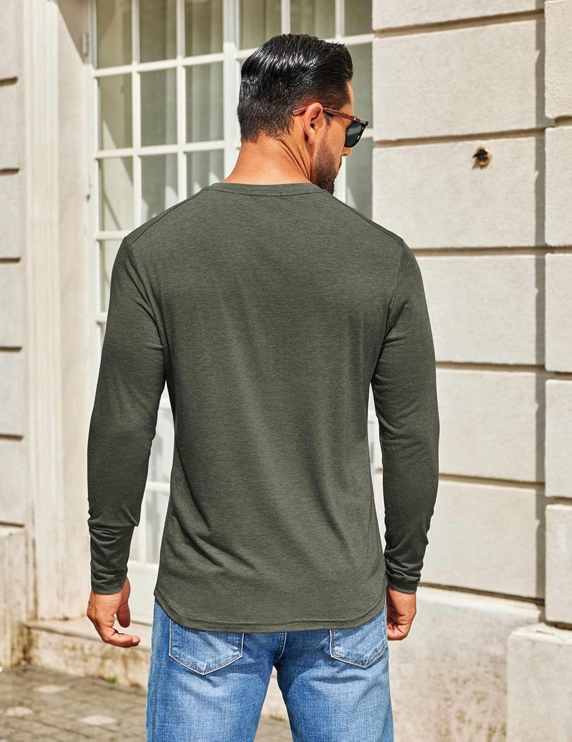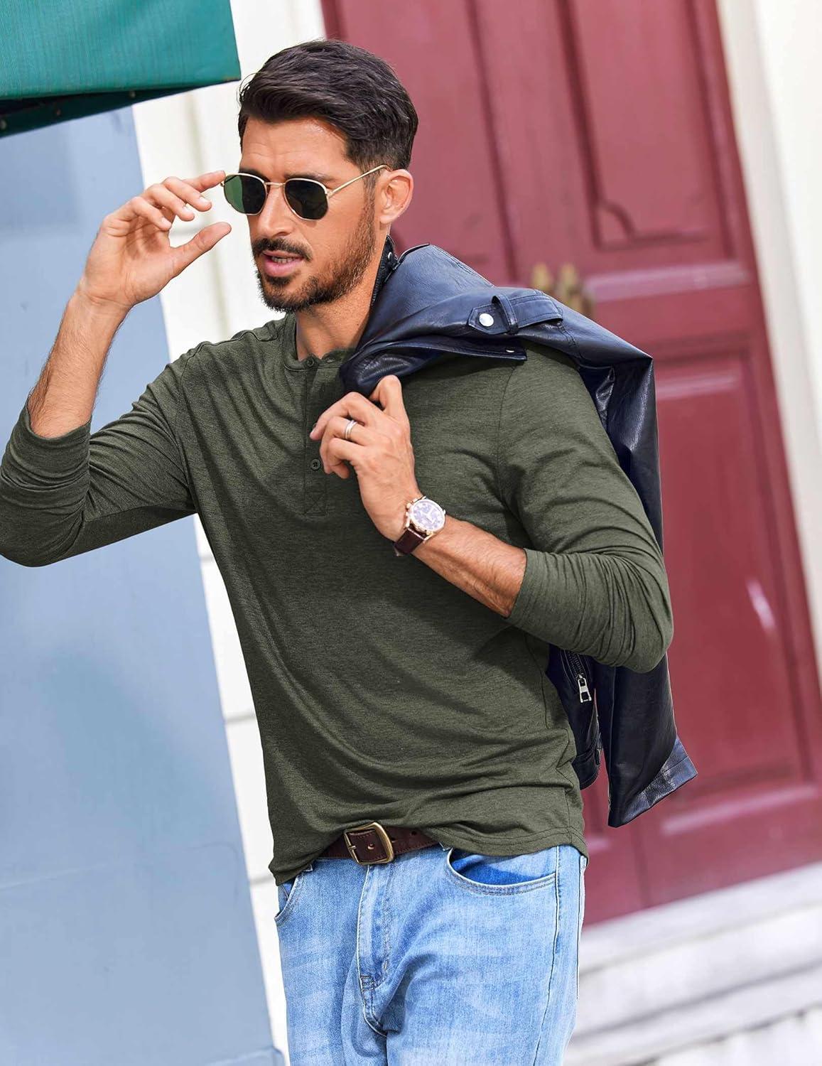 COOFANDY Men's Henley Shirts Long Sleeve T-Shirt Lightweight Fashion Casual Pullover Tee Shirt(Army Green)