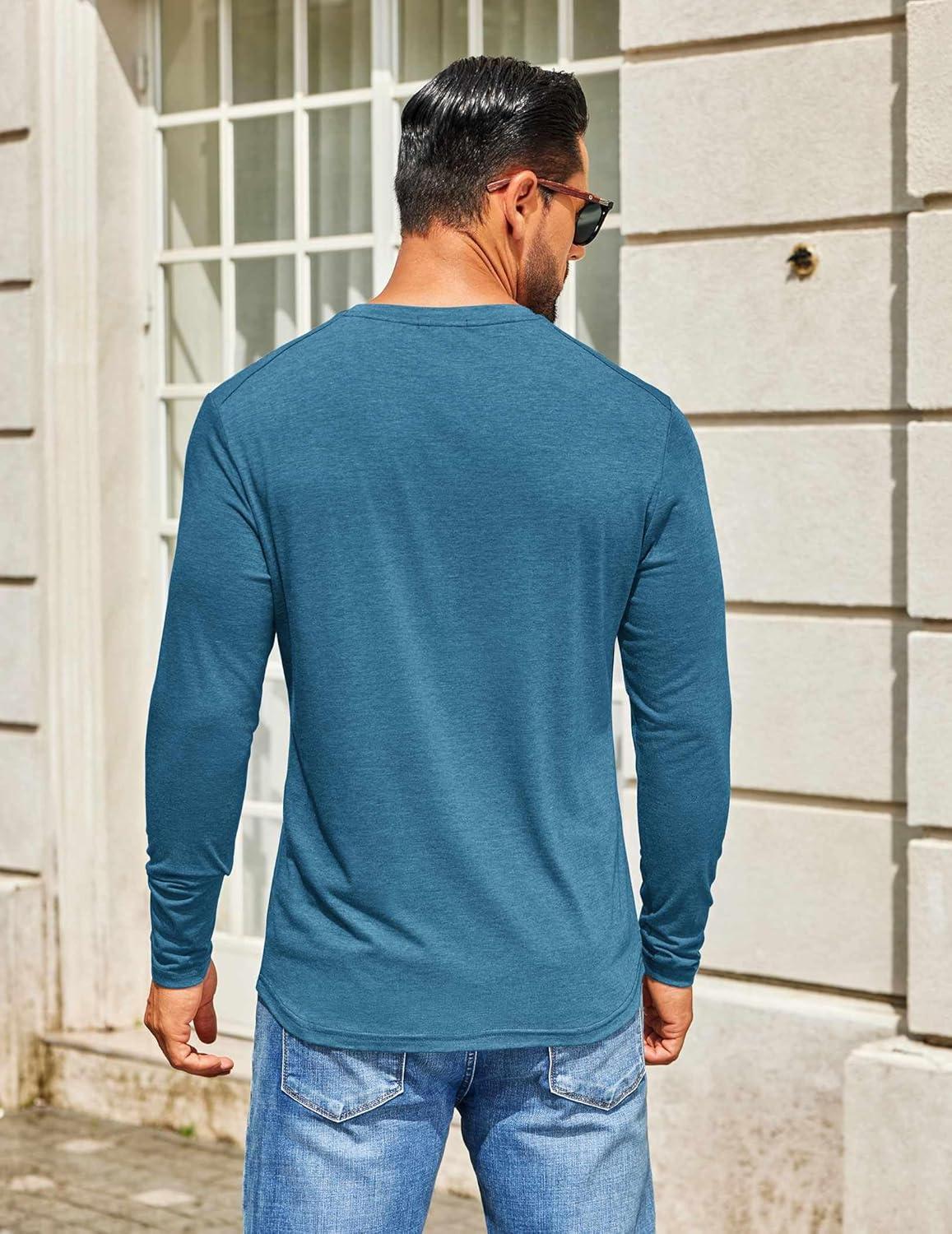 COOFANDY Men's Henley Shirts Long Sleeve T-Shirt Lightweight Fashion Casual Pullover Tee Shirt(Blue)
