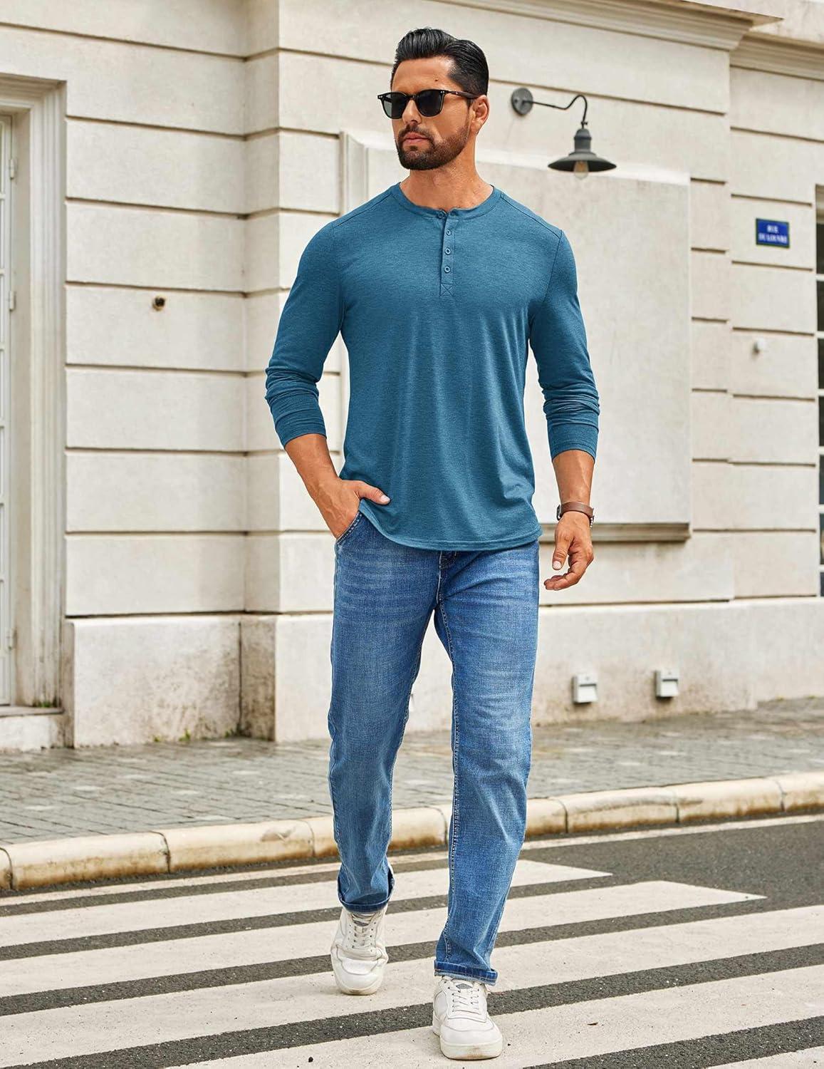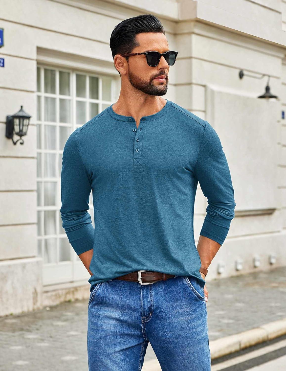 COOFANDY Men’s Henley Shirts Long Sleeve T-Shirt Lightweight Fashion Casual Pullover Tee Shirt(Blue)