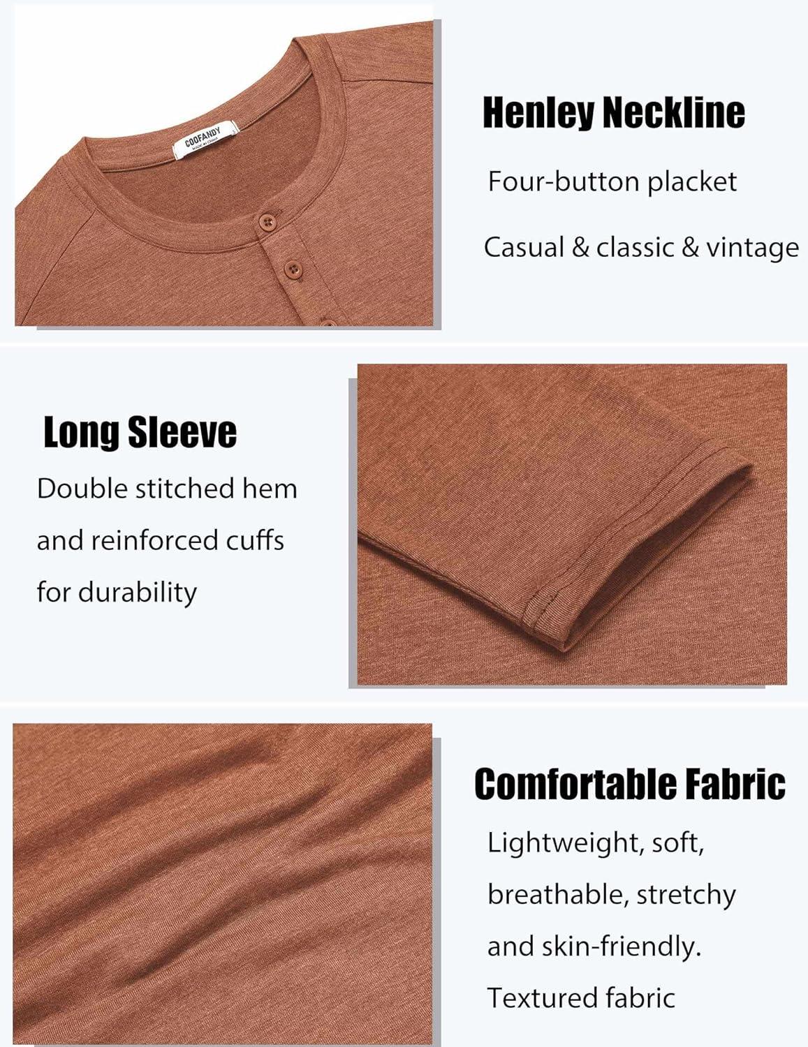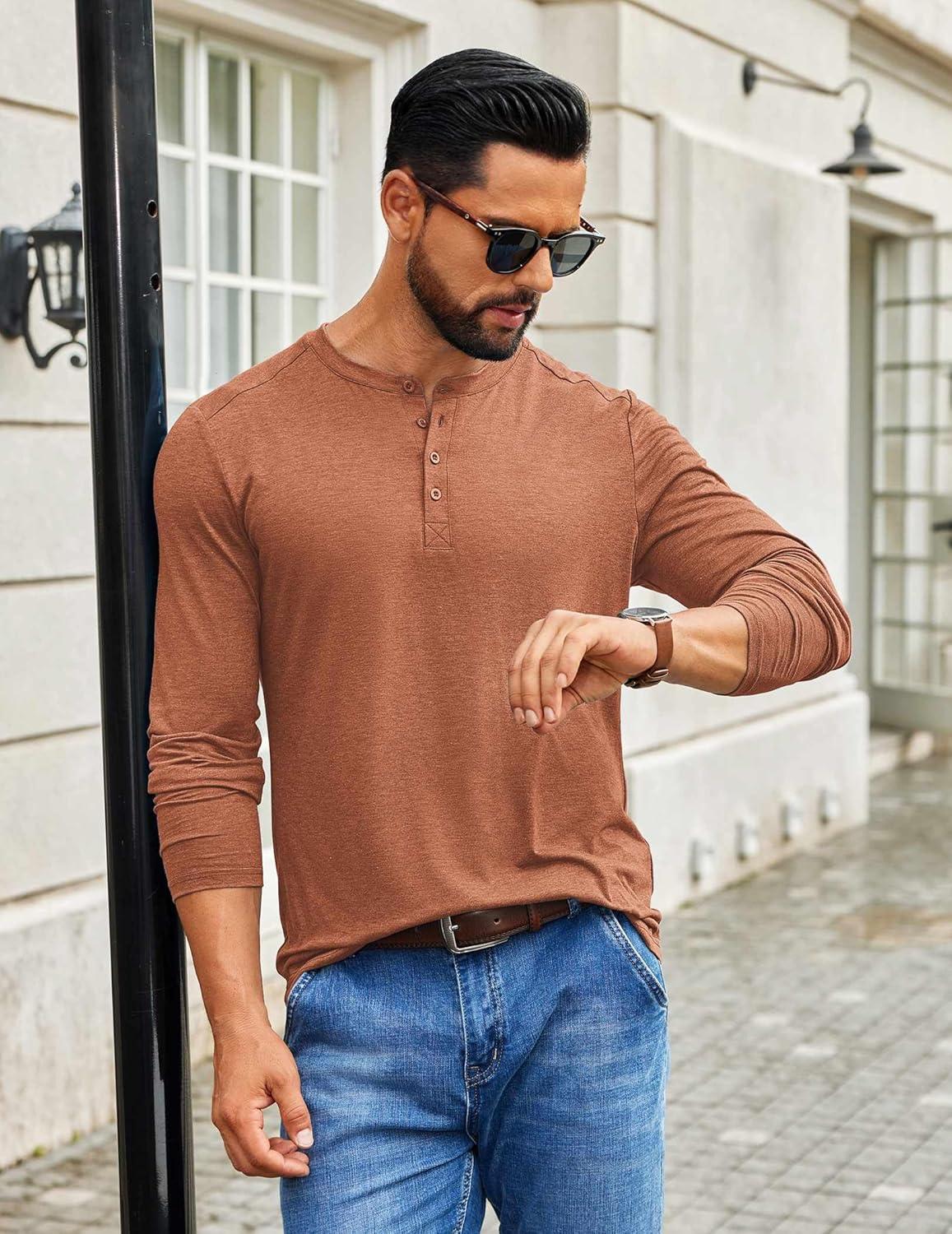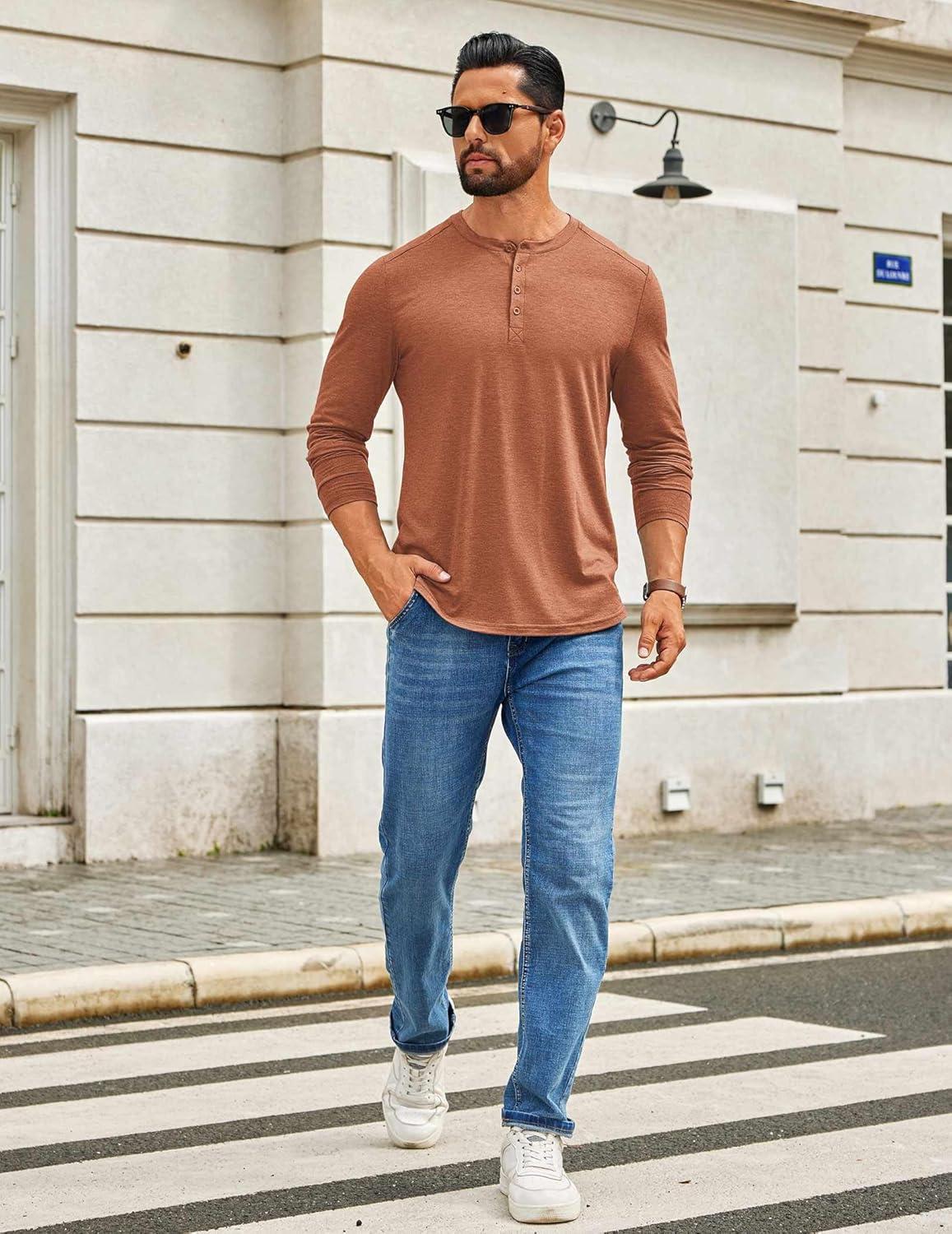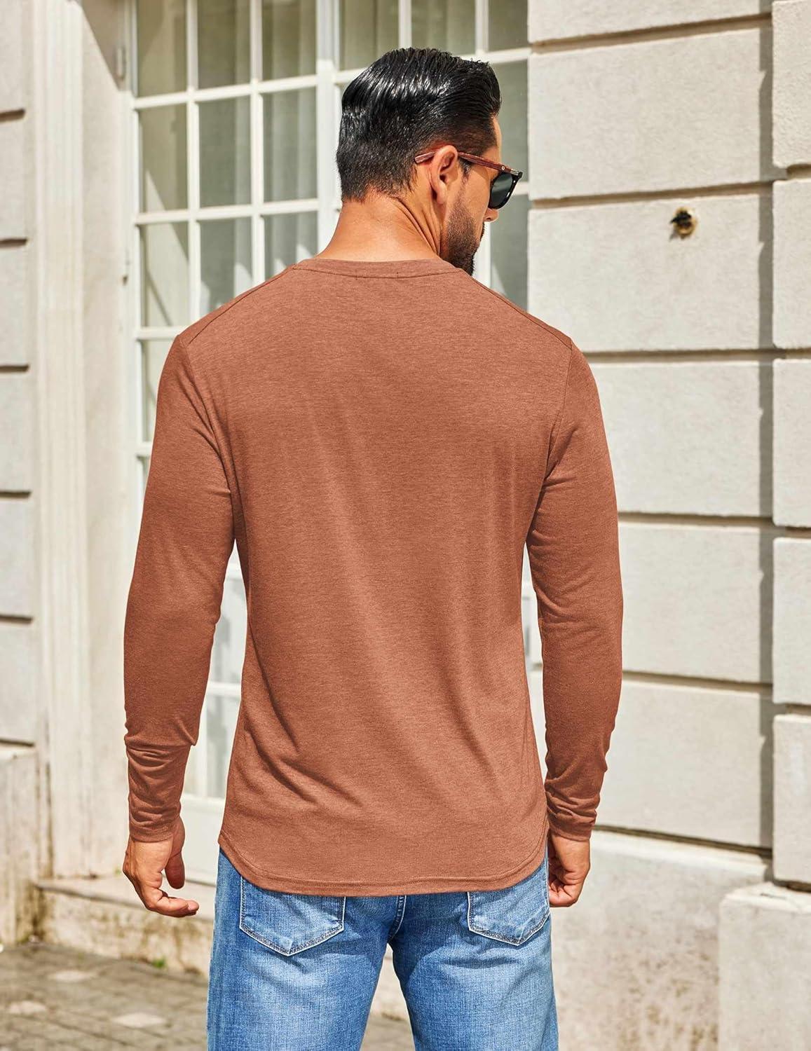 COOFANDY Men's Henley Shirts Long Sleeve T-Shirt Lightweight Fashion Casual Pullover Tee Shirt(Caramel)