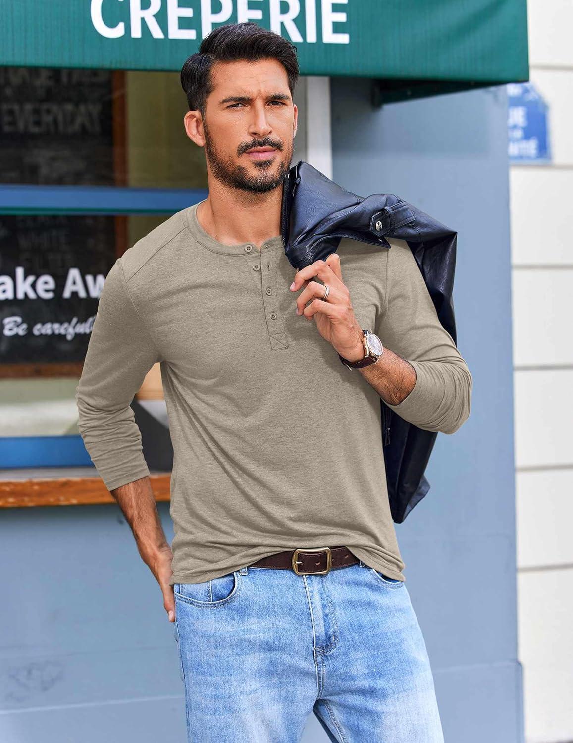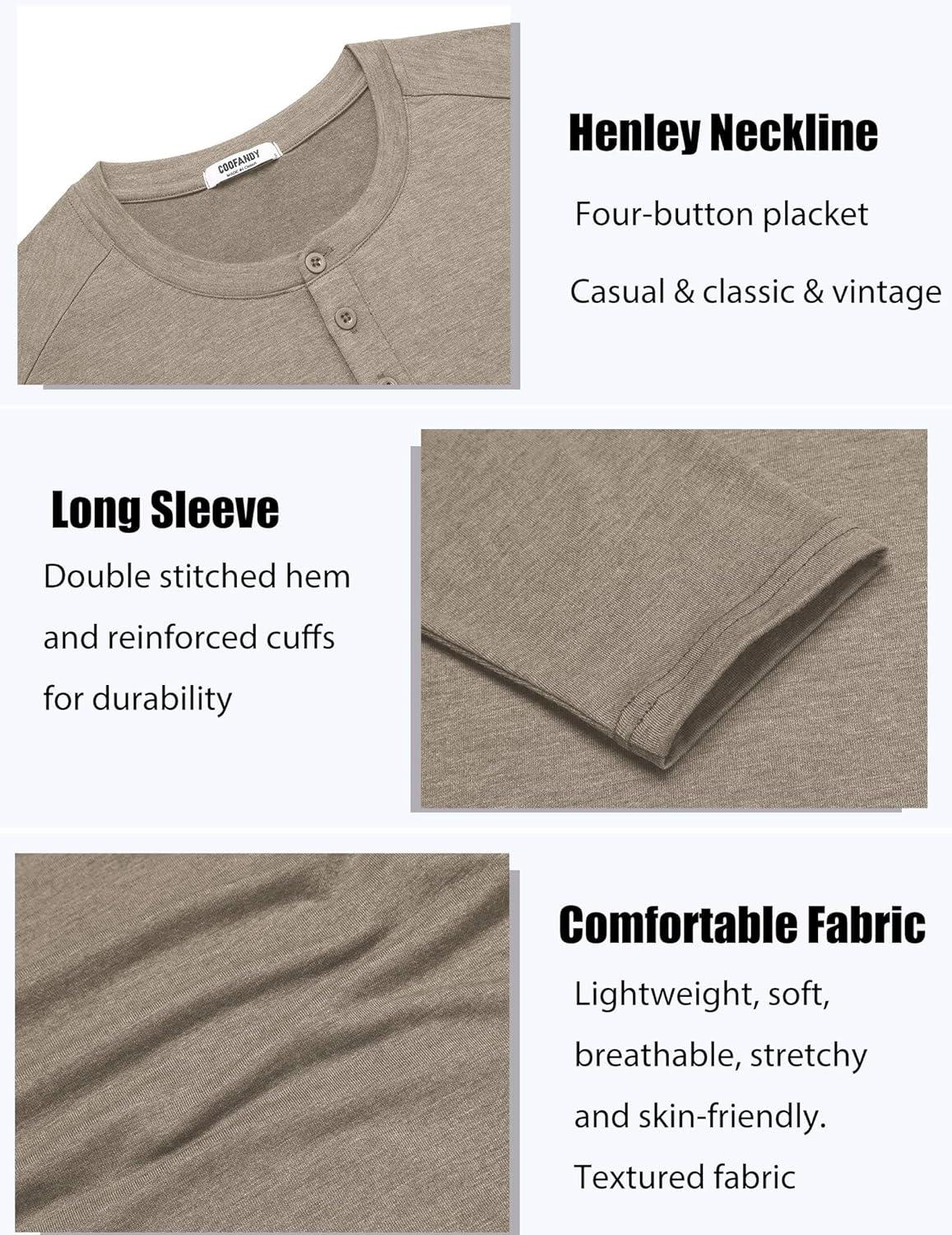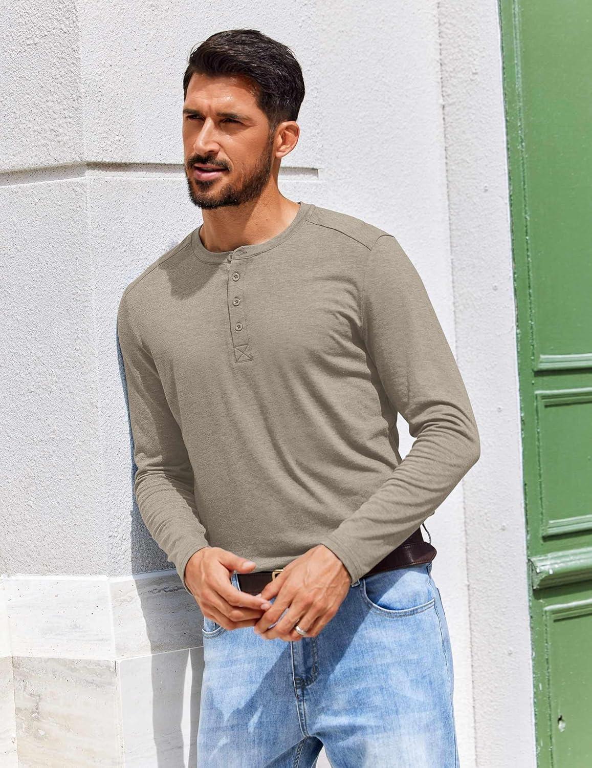 COOFANDY Men’s Henley Shirts Long Sleeve T-Shirt Lightweight Fashion Casual Pullover Tee Shirt(Deep Khaki)