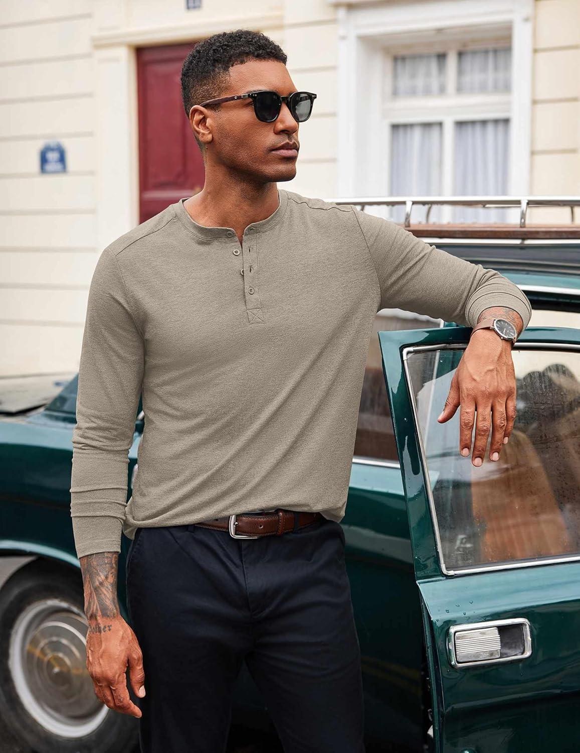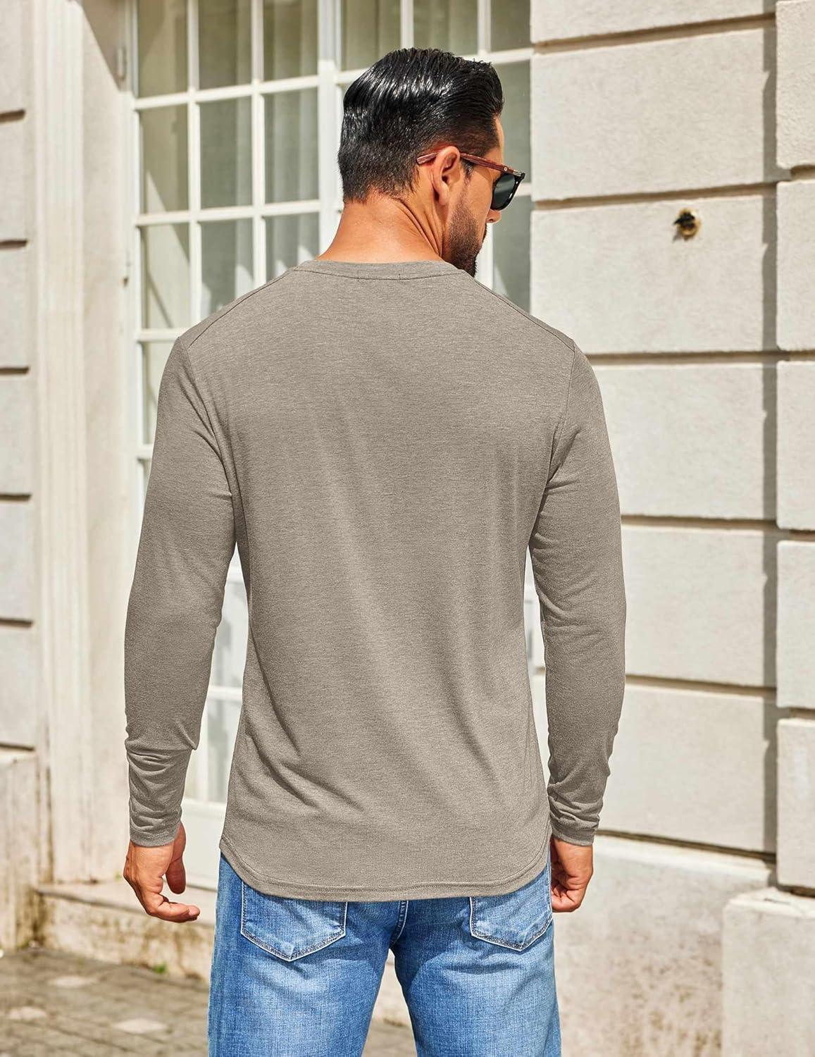 COOFANDY Men’s Henley Shirts Long Sleeve T-Shirt Lightweight Fashion Casual Pullover Tee Shirt(Dark Grey)