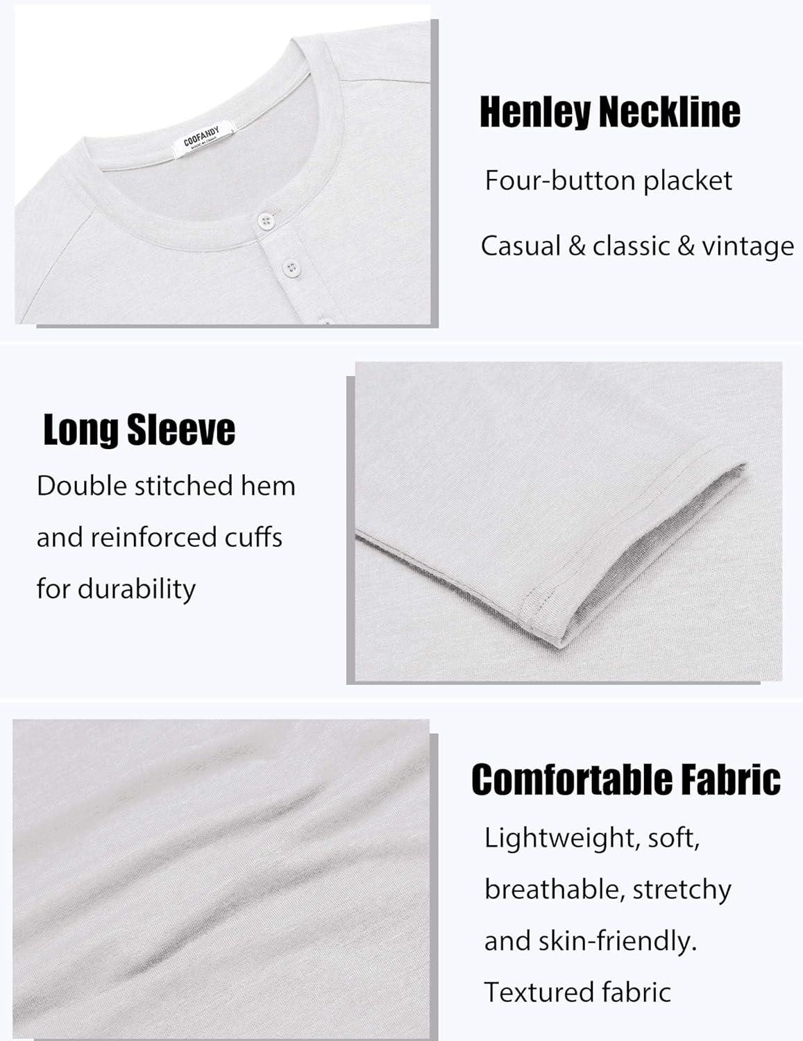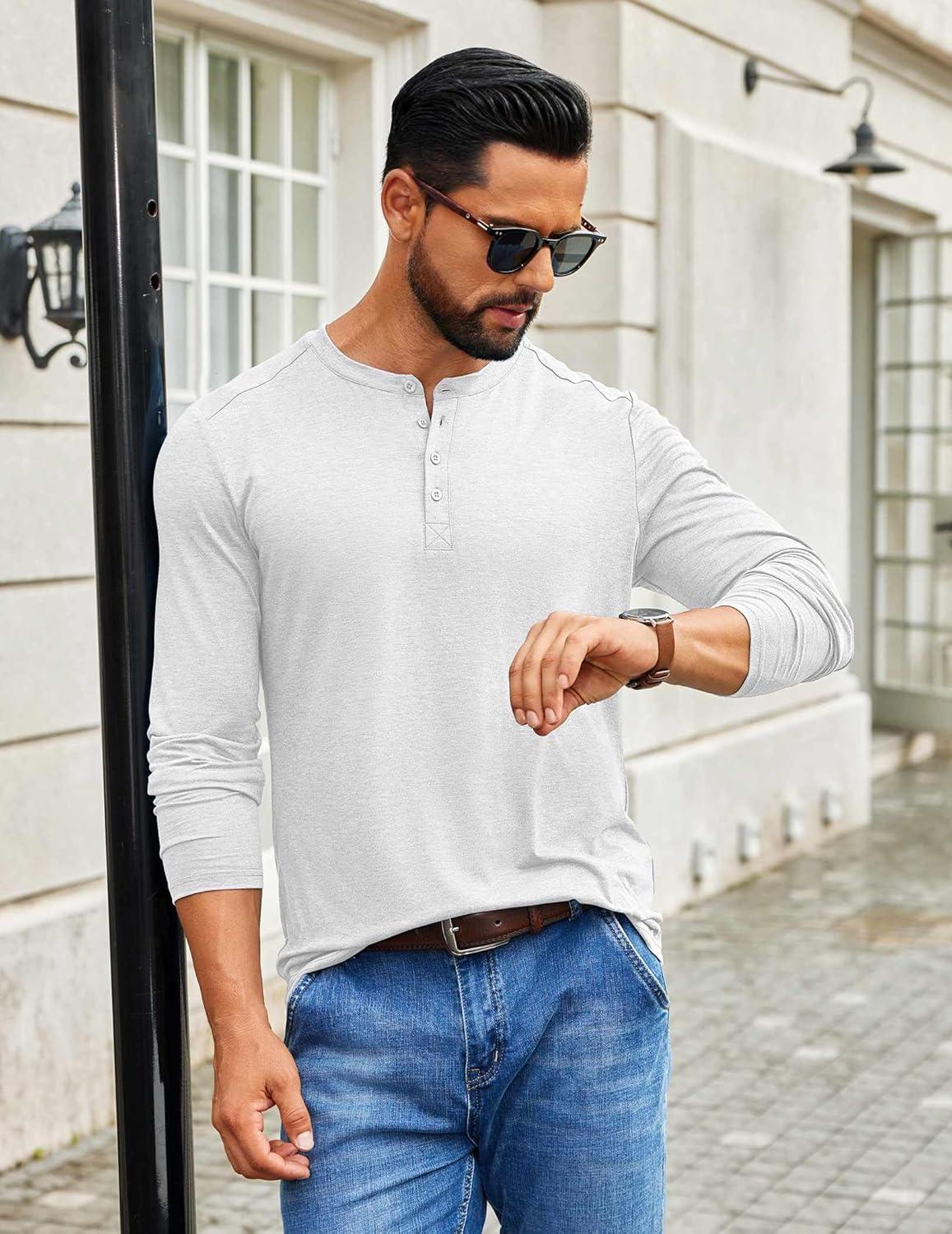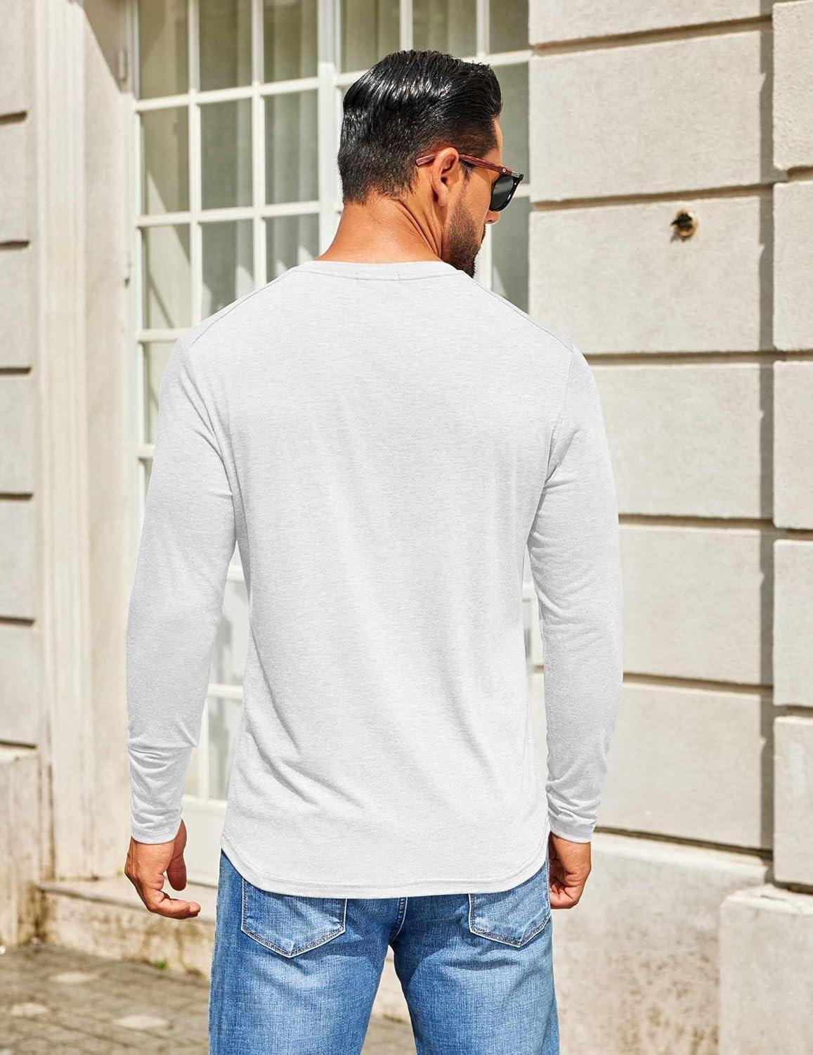 COOFANDY Men's Henley Shirts Long Sleeve T-Shirt Lightweight Fashion Casual Pullover Tee Shirt(White)
