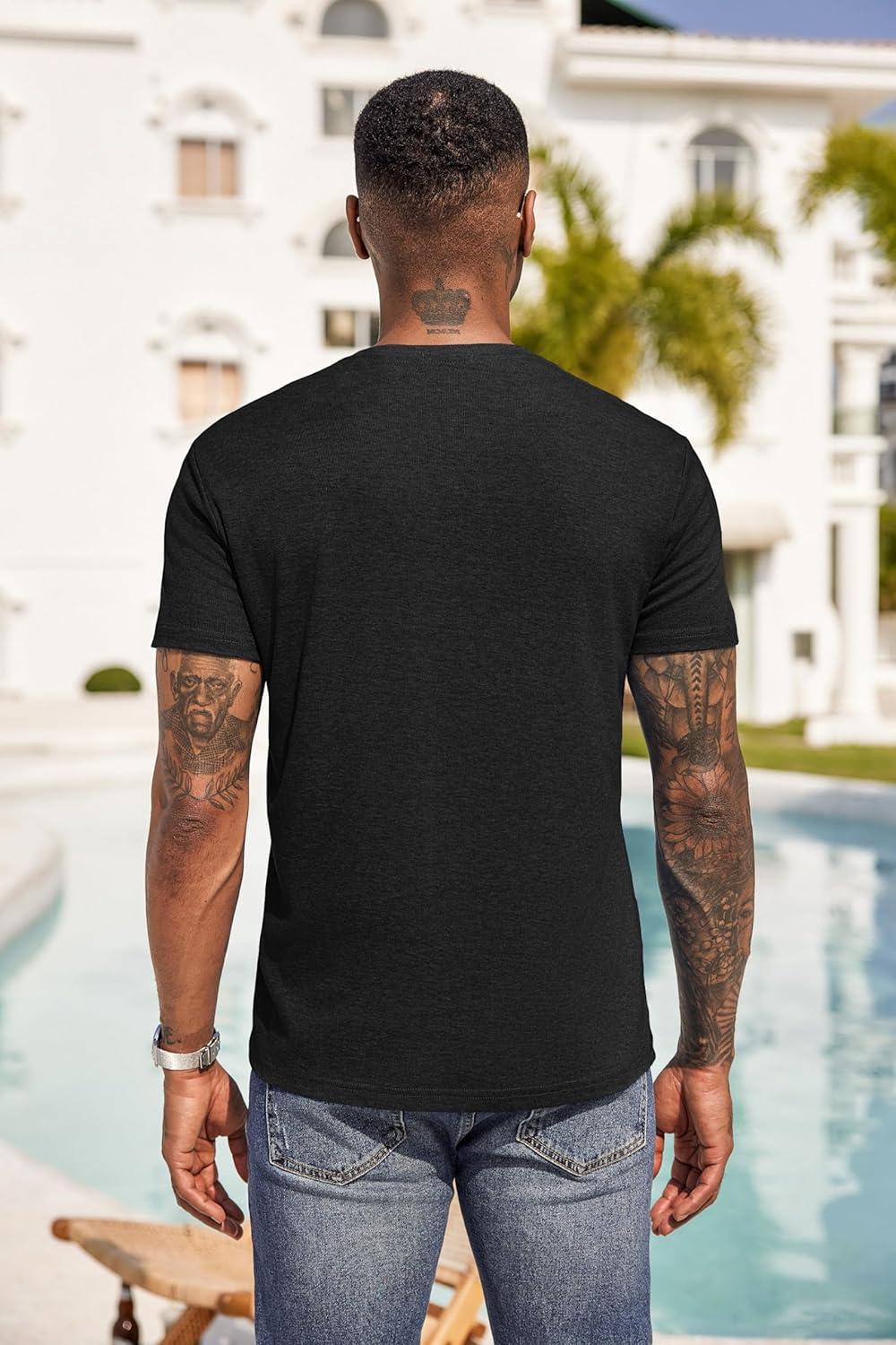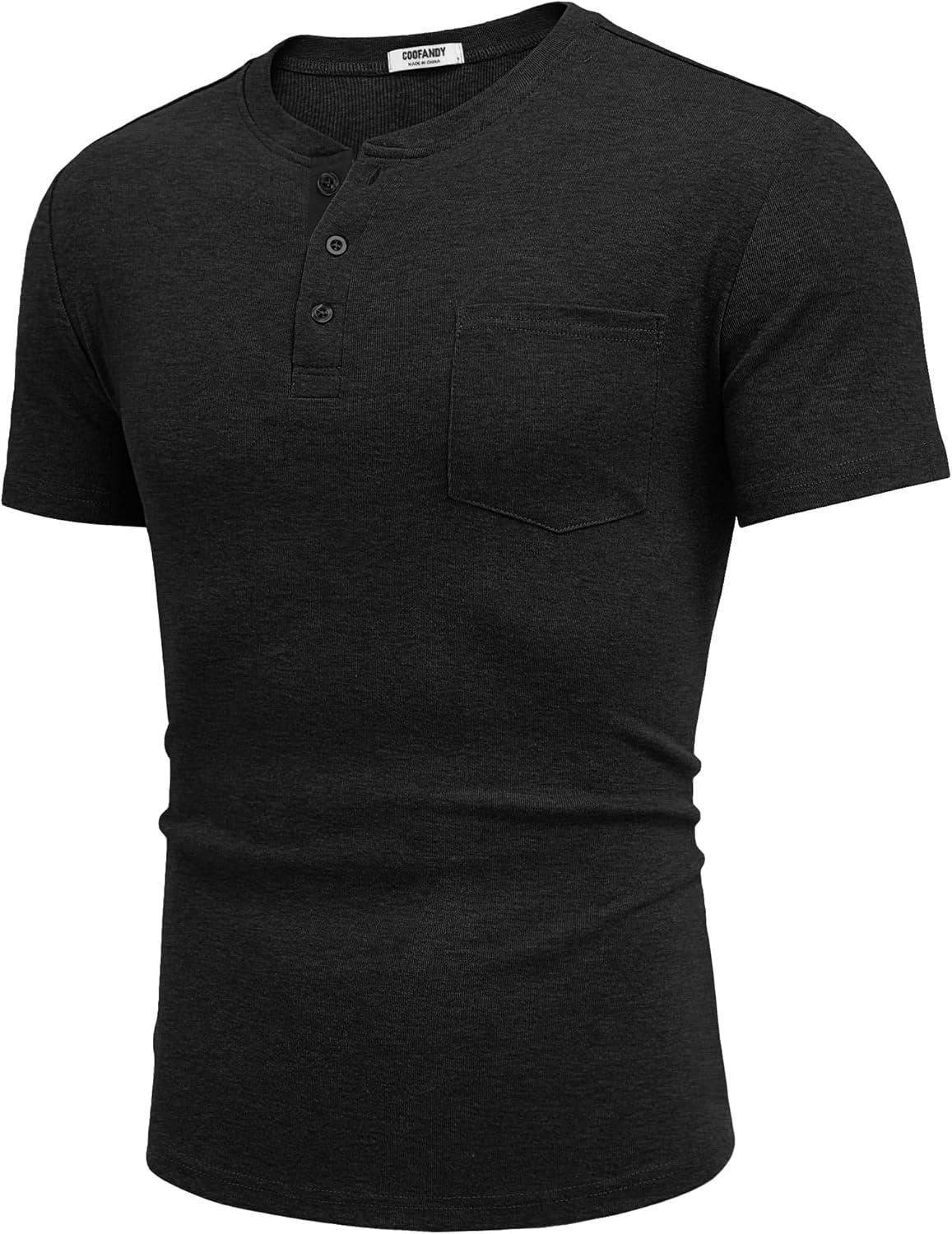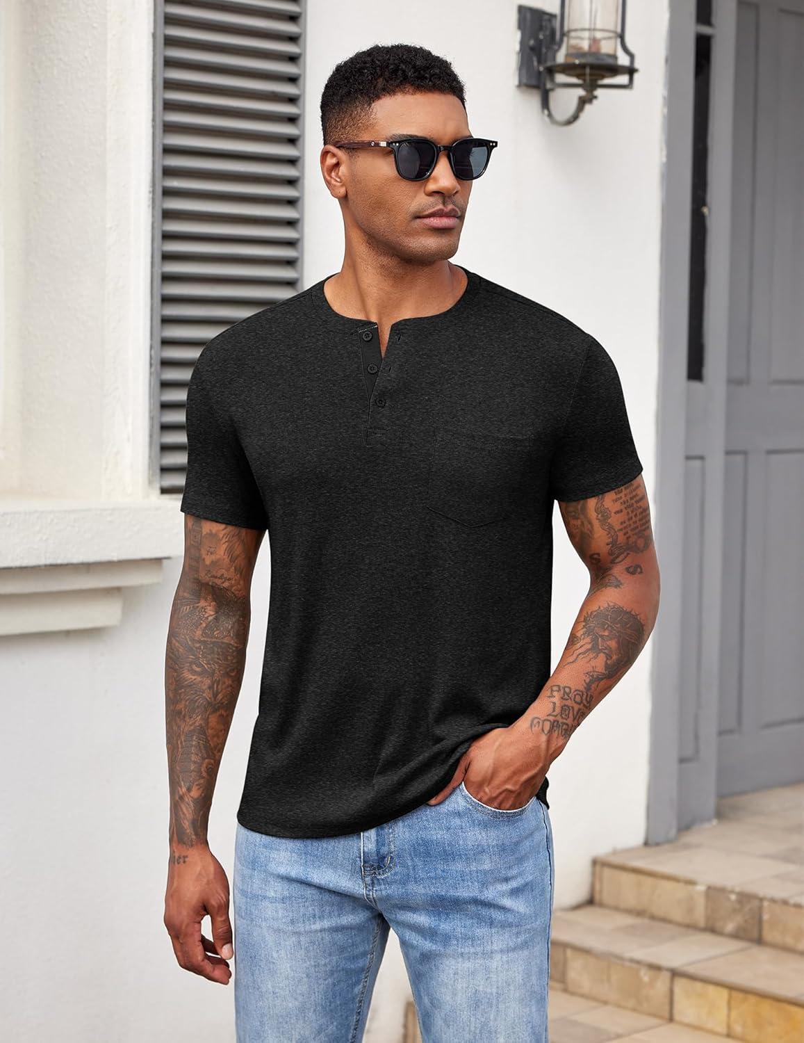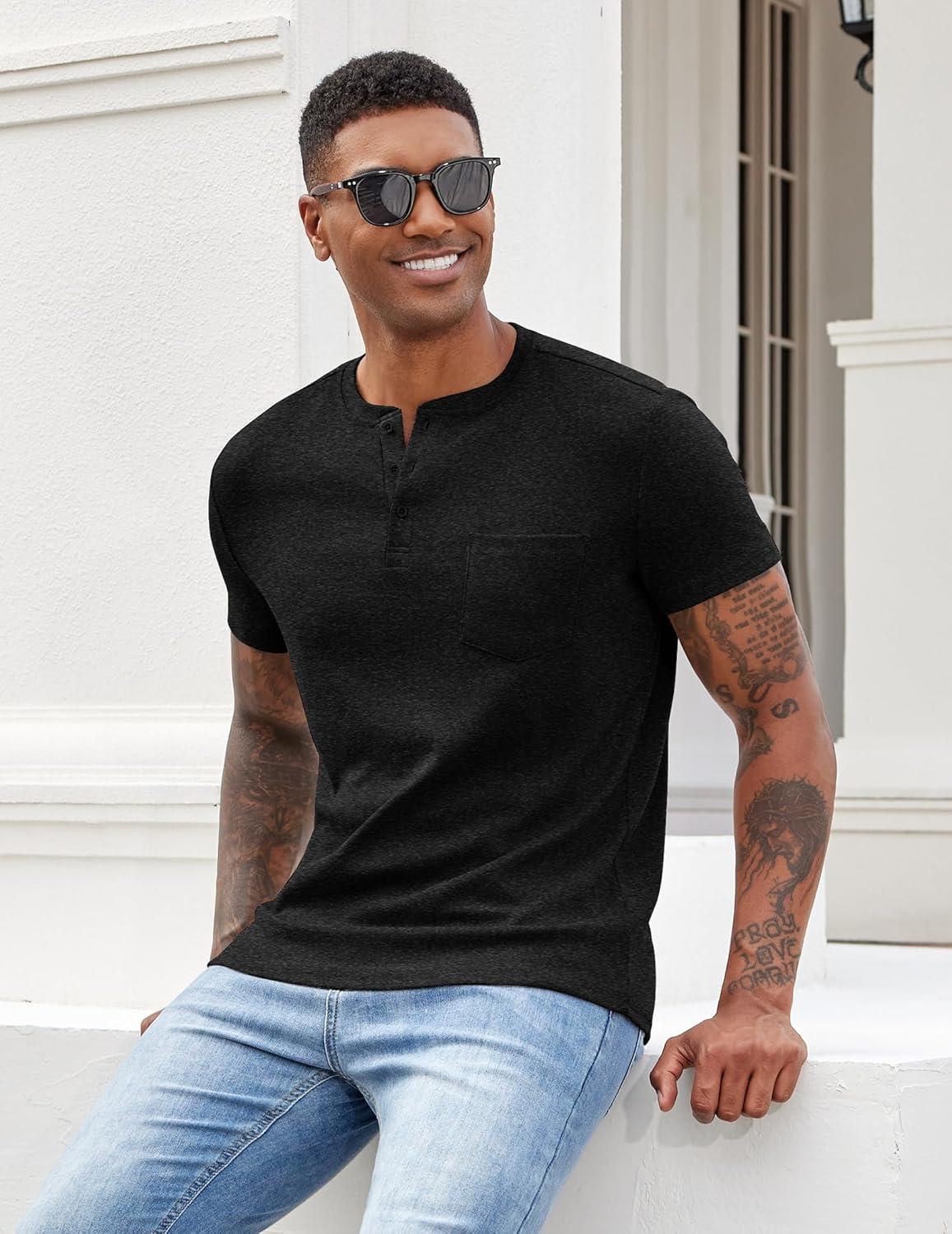 COOFANDY Men's Henley Shirts Short Sleeve Button T Shirt Casual Summer Basic Tee Tops with Pocket(Black)