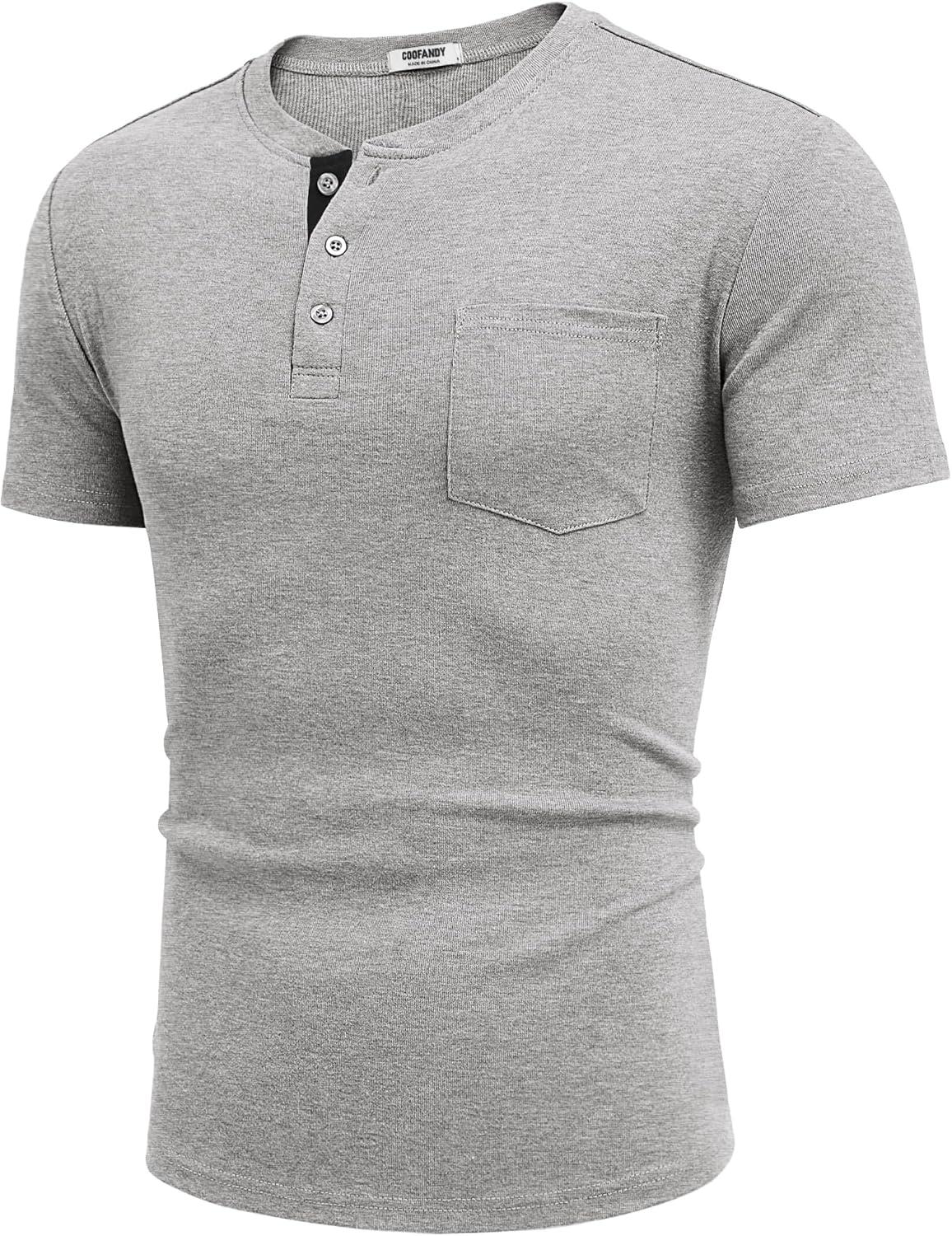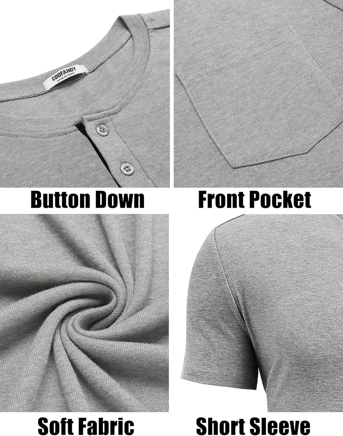 COOFANDY Men's Henley Shirts Short Sleeve Button T Shirt Casual Summer Basic Tee Tops with Pocket(Light Gray)