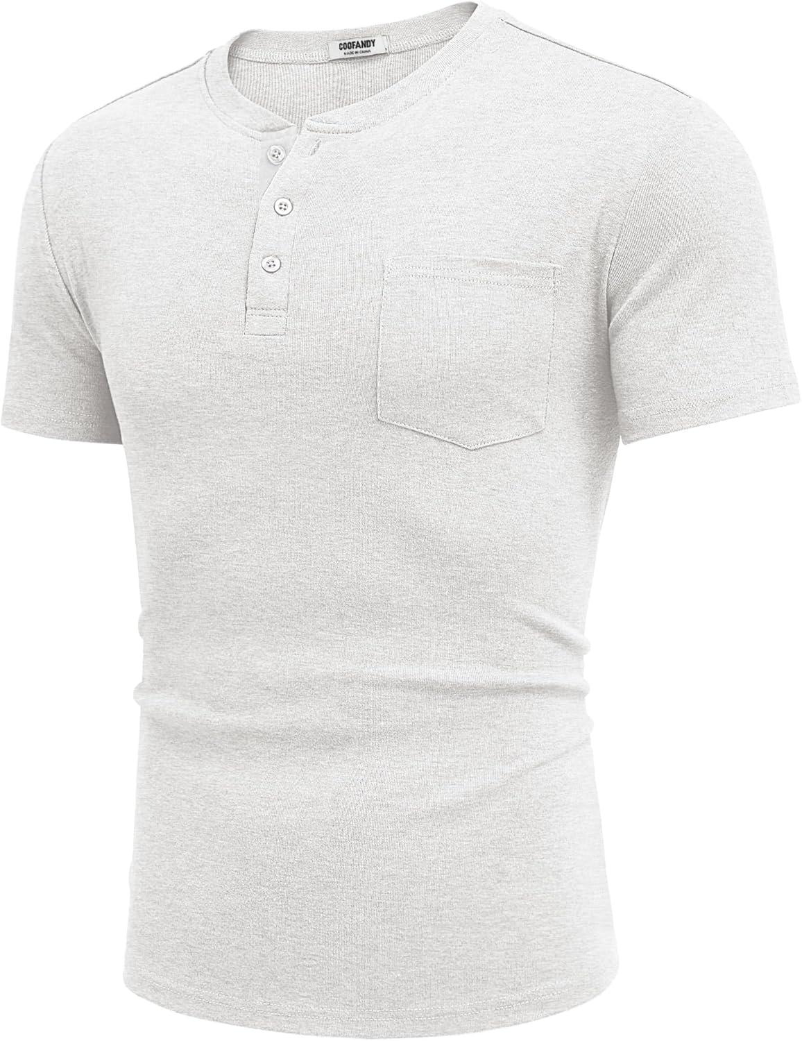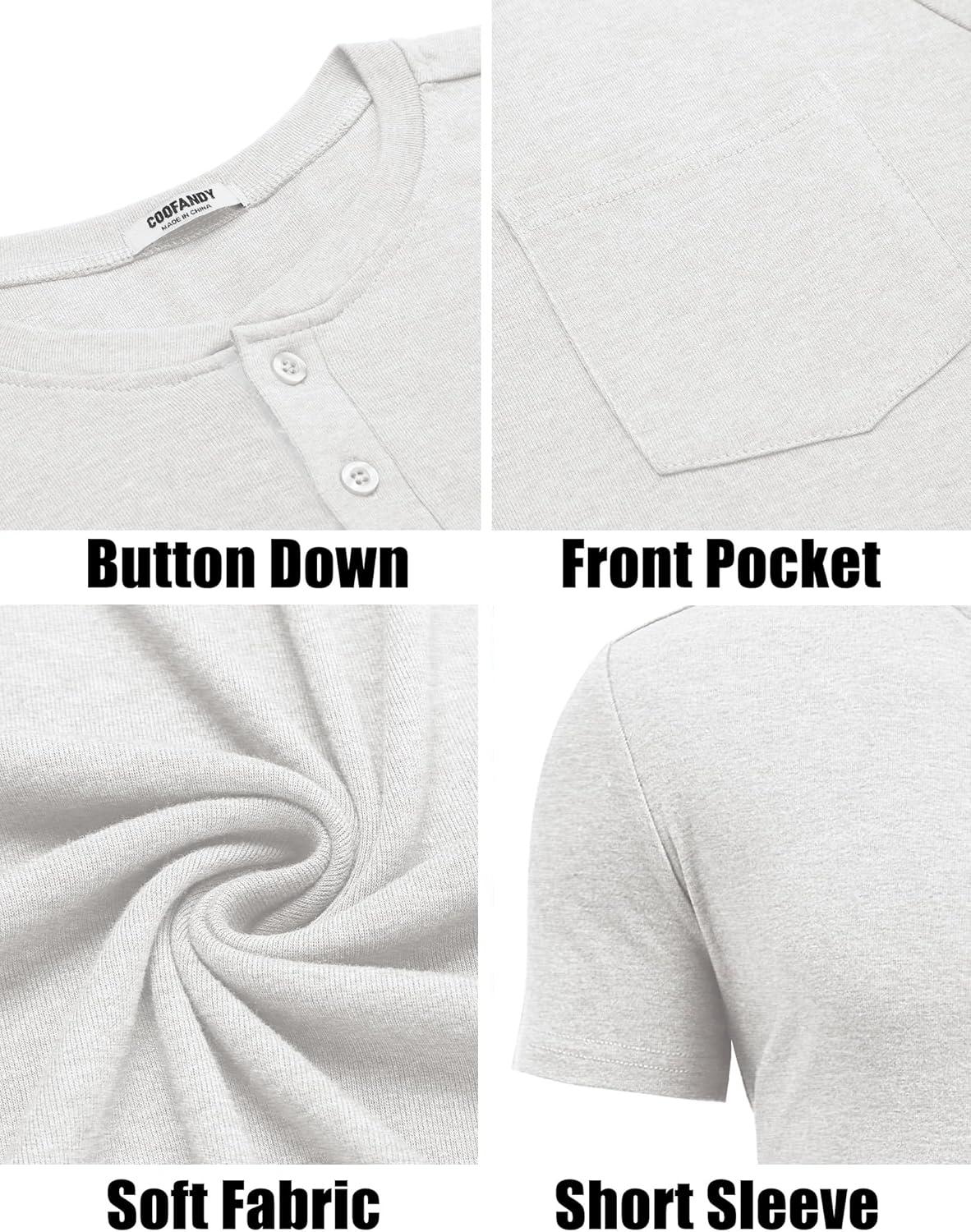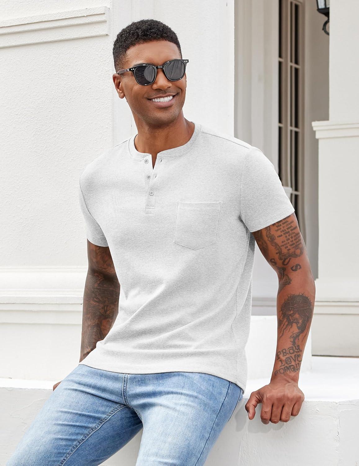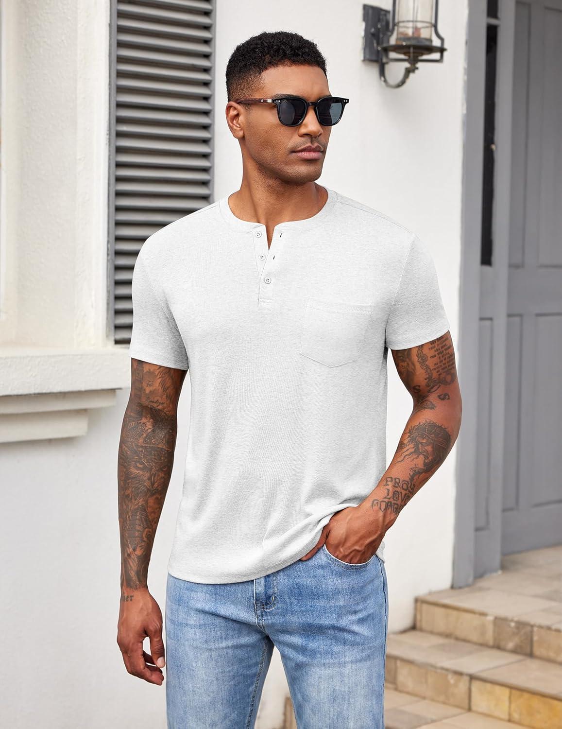 COOFANDY Men's Henley Shirts Short Sleeve Button T Shirt Casual Summer Basic Tee Tops with Pocket(White)