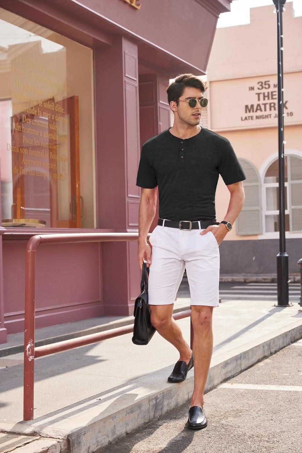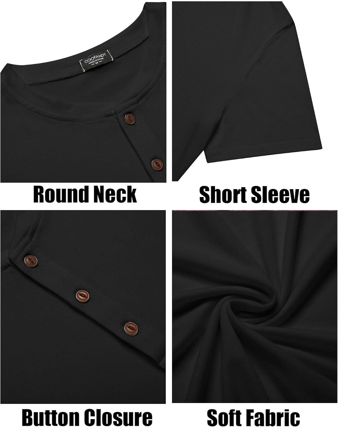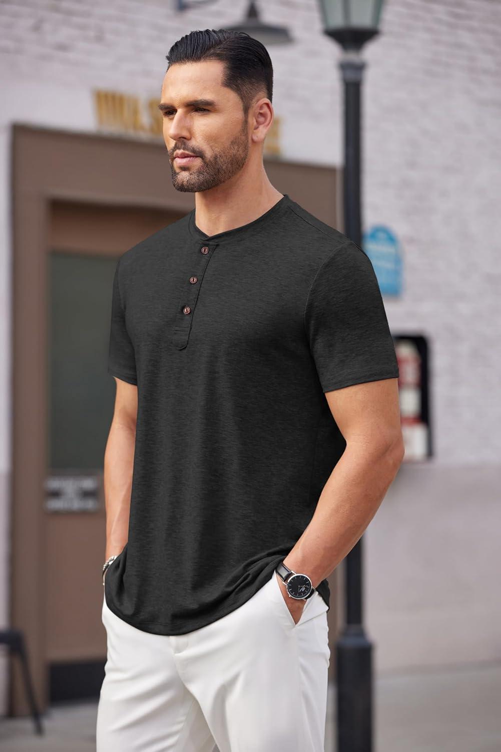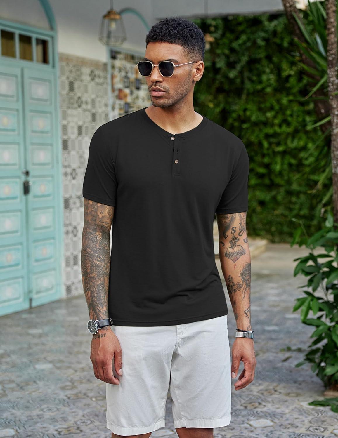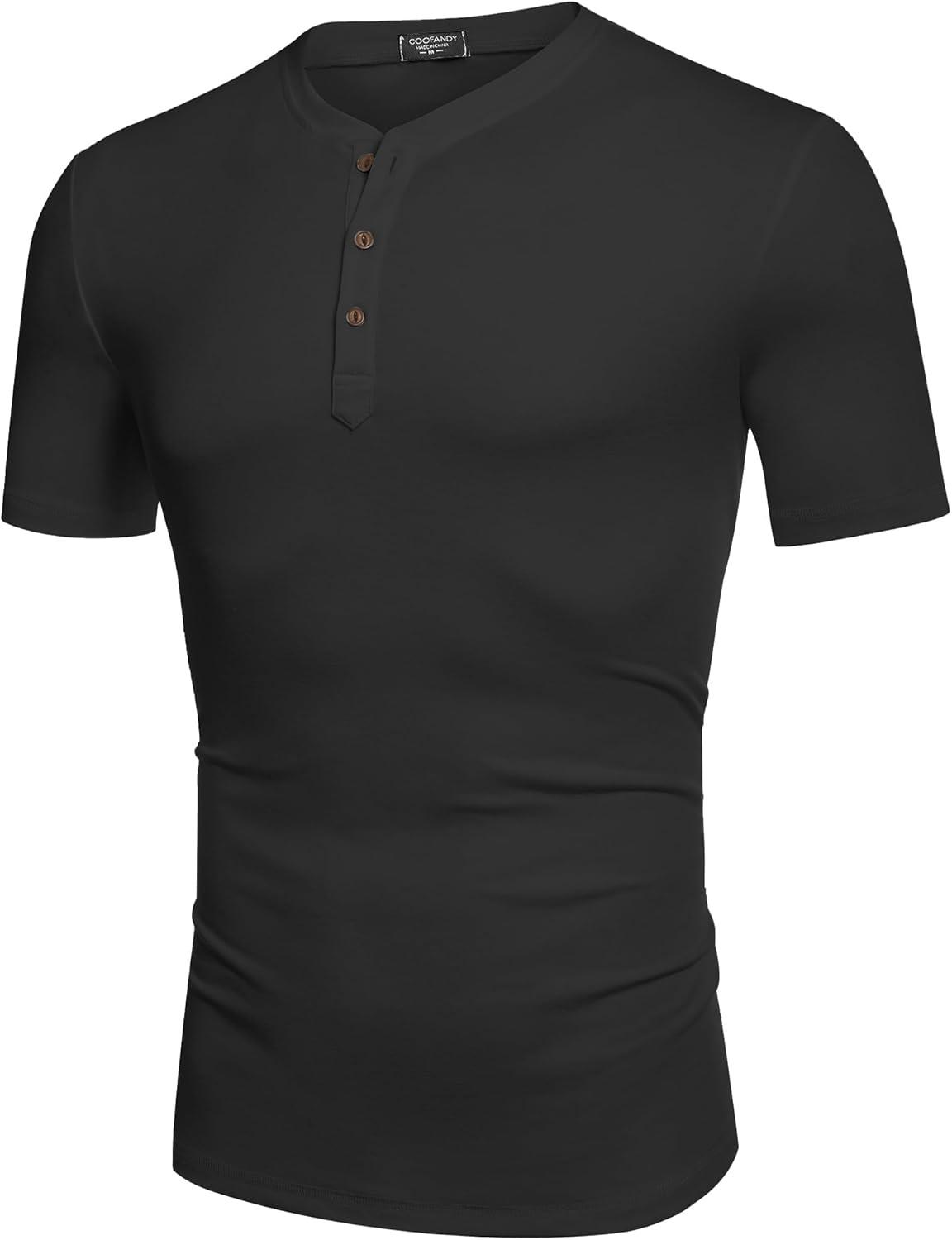 COOFANDY Men's Henley Shirts Short Sleeve Casual Basic Tee Summer Button Henley Soild T Shirts(Black)