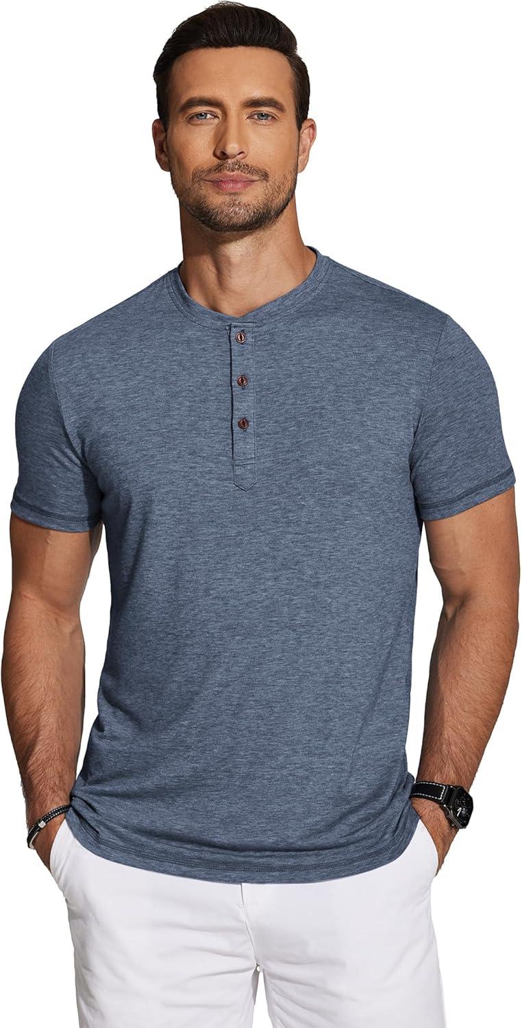COOFANDY Men’s Henley Shirts Short Sleeve Casual Basic Tee Summer Button Henley Soild T Shirts(Navy Blue)
