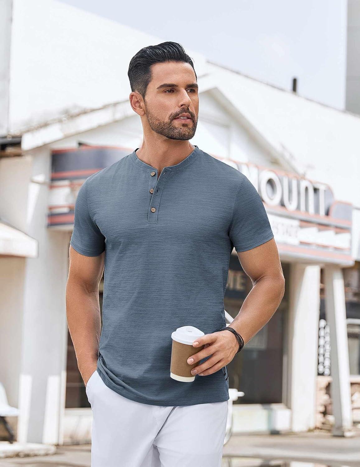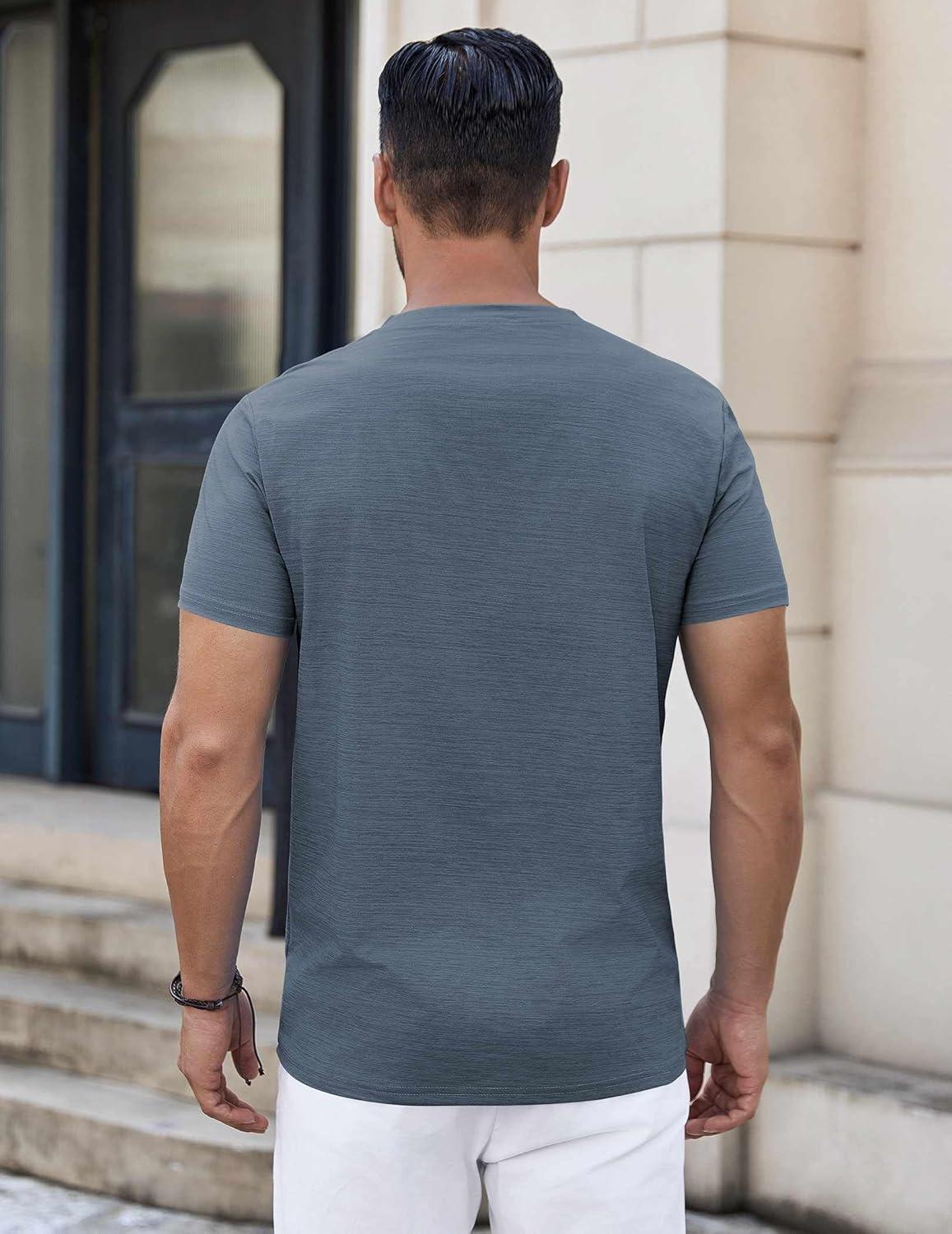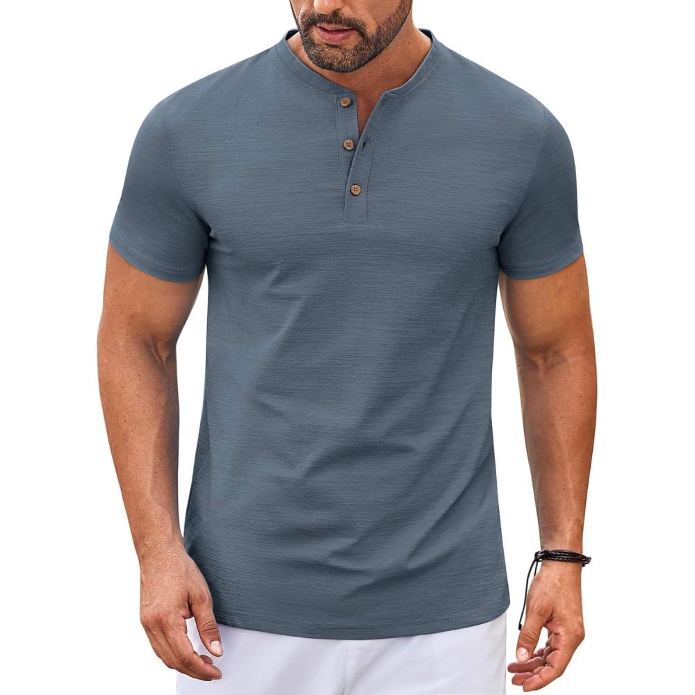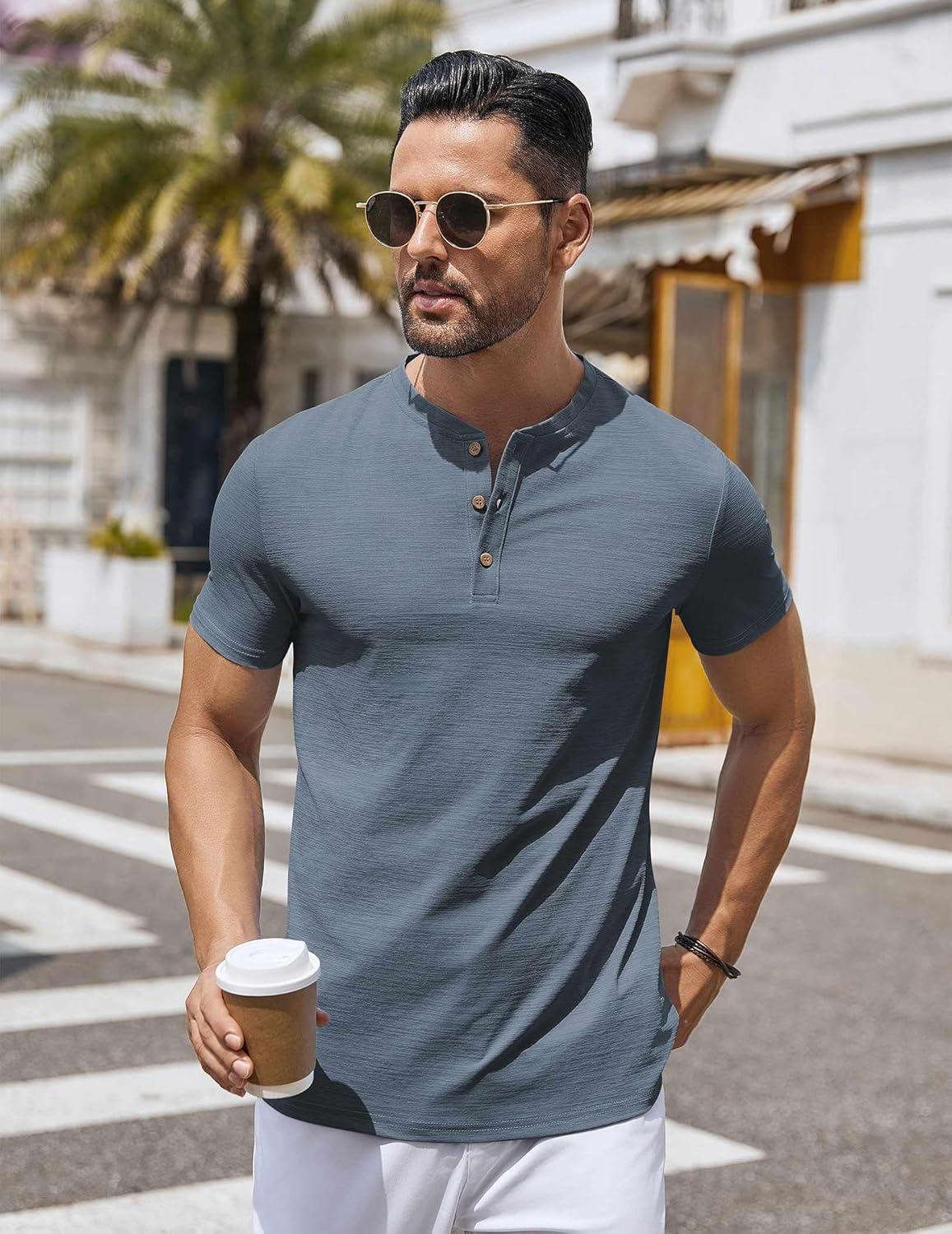 COOFANDY Mens Henley Shirts Short Sleeve Casual Button Down Shirts Lightweight Summer Basic Tee(Dark Grey)