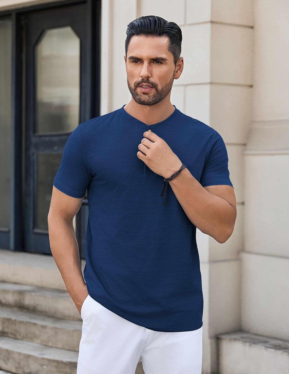 COOFANDY Mens Henley Shirts Short Sleeve Casual Button Down Shirts Lightweight Summer Basic Tee(Navy Blue)