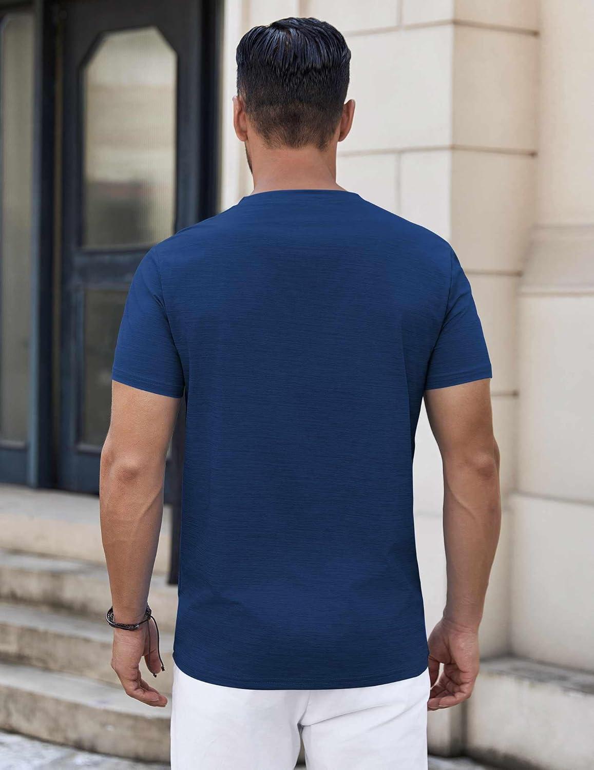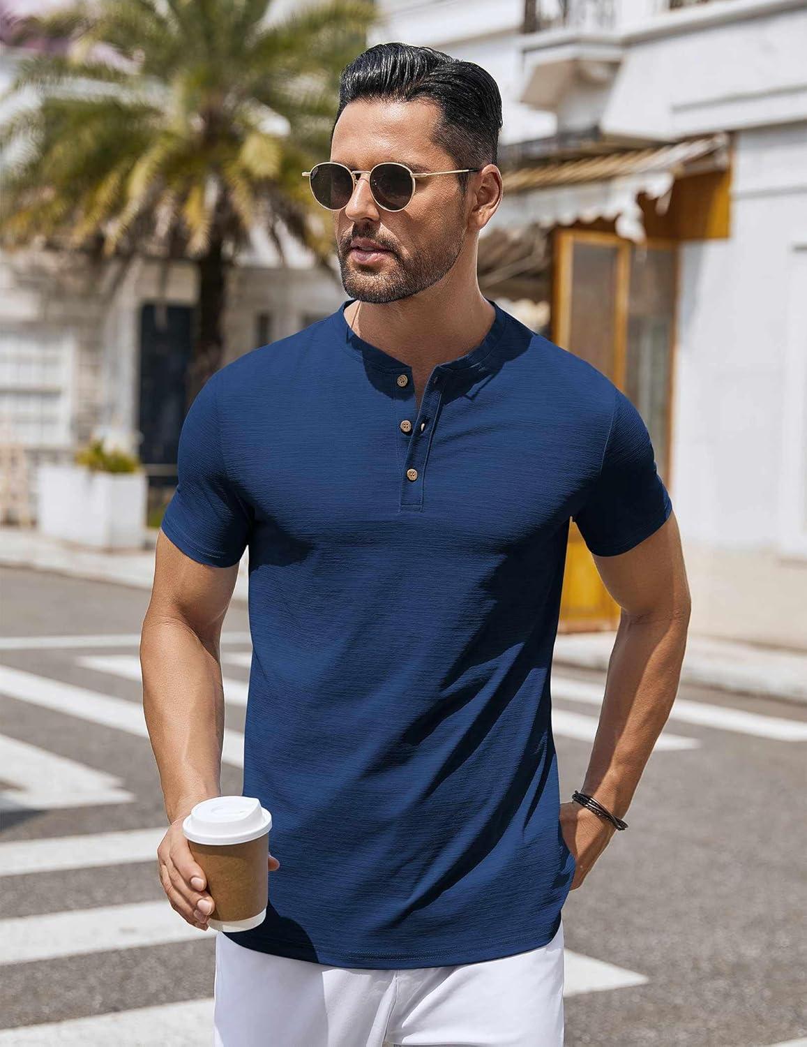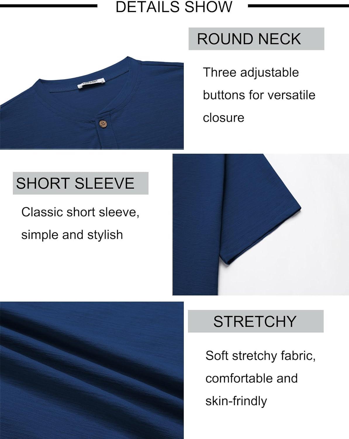 COOFANDY Mens Henley Shirts Short Sleeve Casual Button Down Shirts Lightweight Summer Basic Tee(Blue)