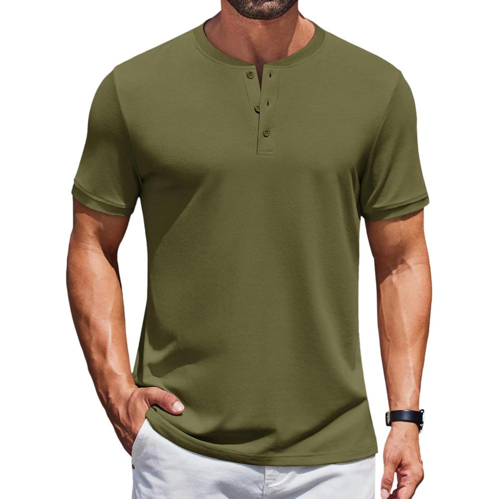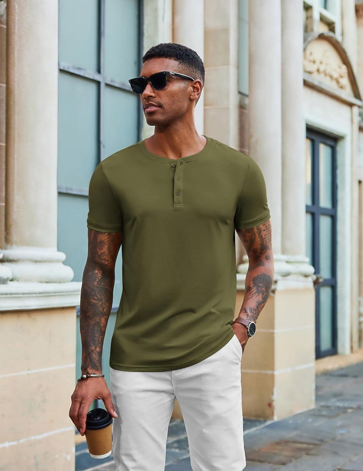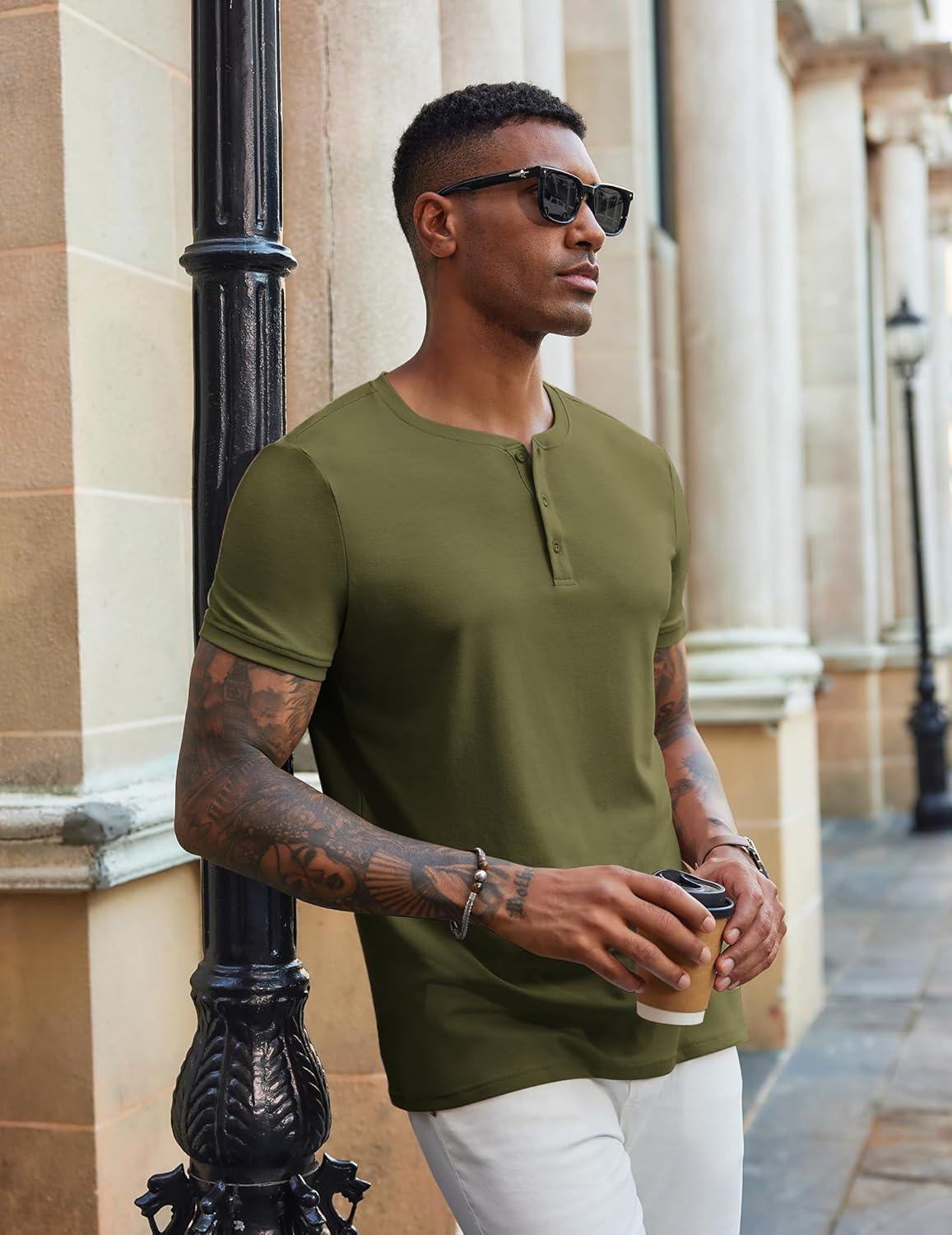 COOFANDY Men's Henley Shirts Short Sleeve Casual Summer Basic Tee Solid Button T-Shirts(Army Green)