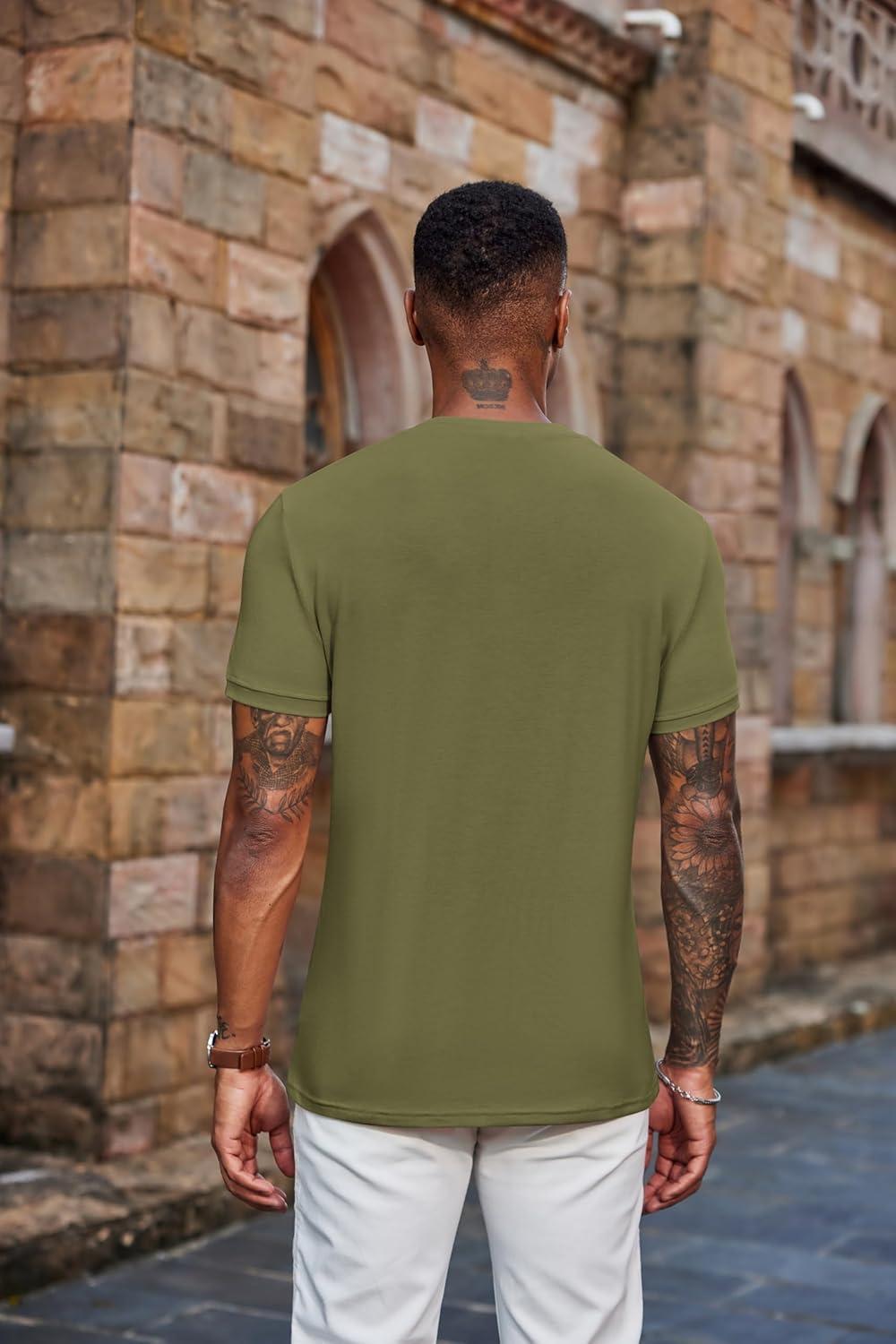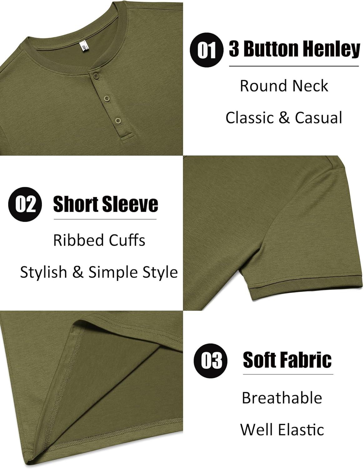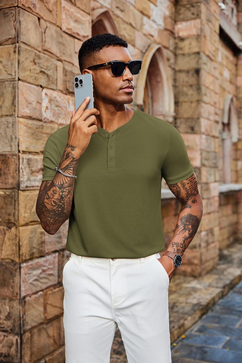 COOFANDY Men's Henley Shirts Short Sleeve Casual Summer Basic Tee Solid Button T-Shirts(Army Green)