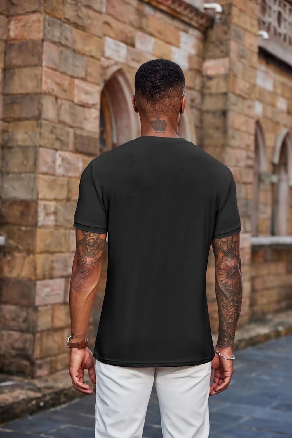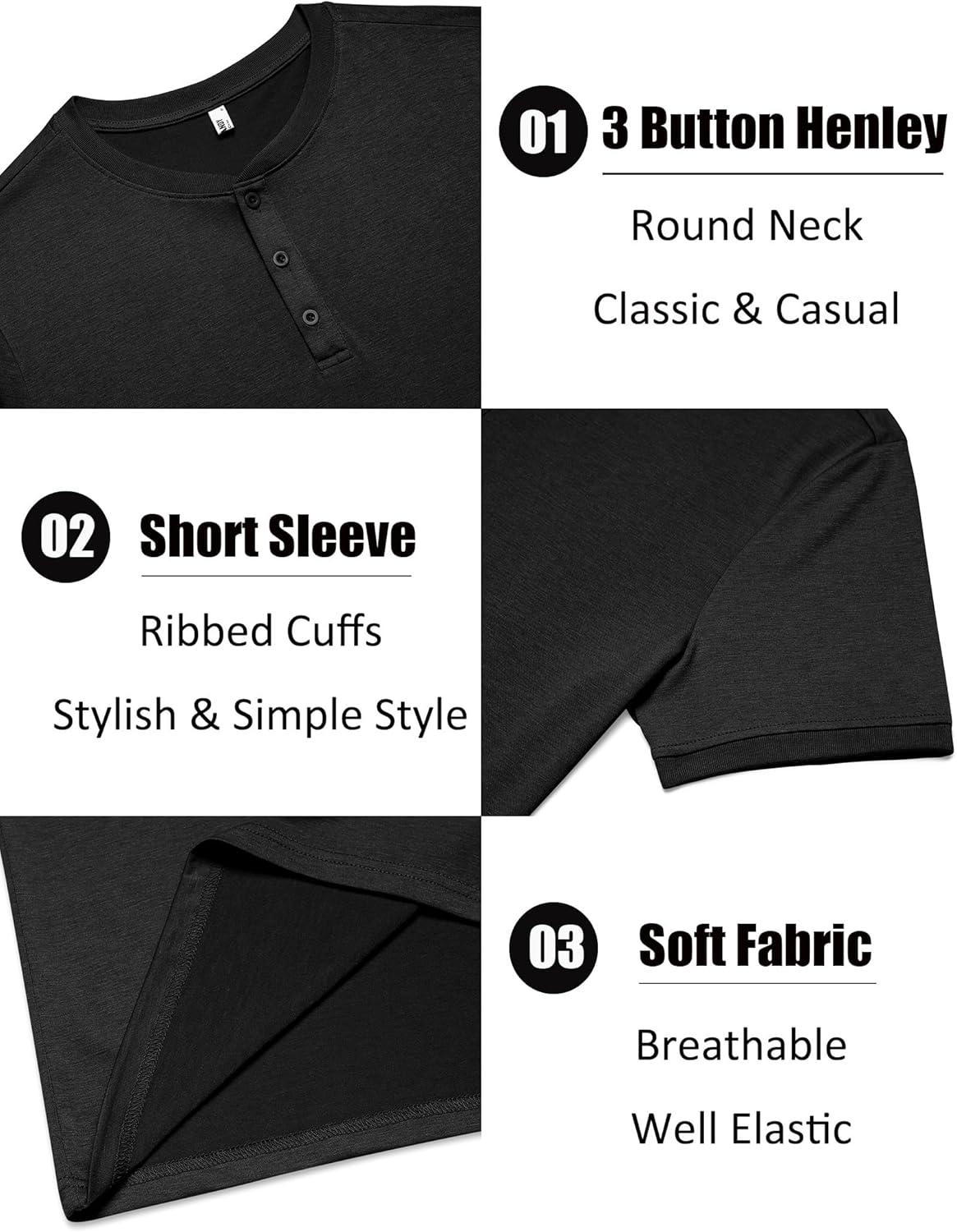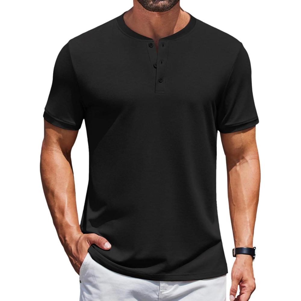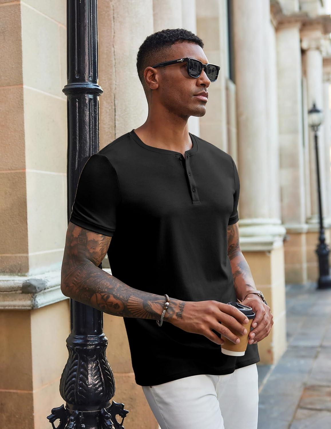 COOFANDY Men's Henley Shirts Short Sleeve Casual Summer Basic Tee Solid Button T-Shirts(Black)