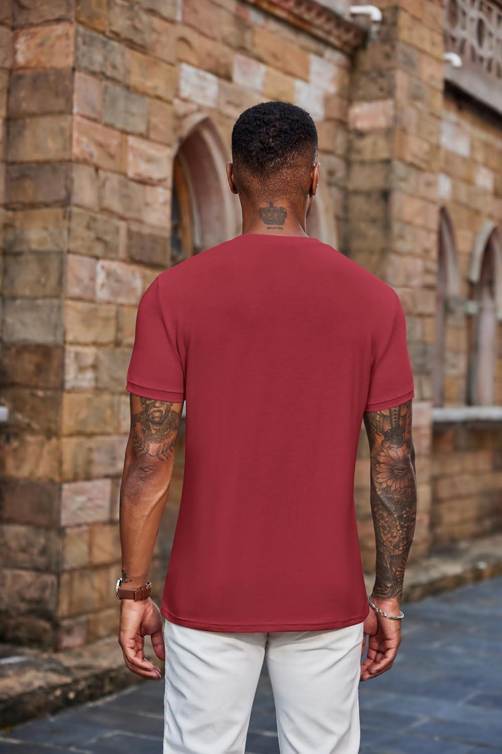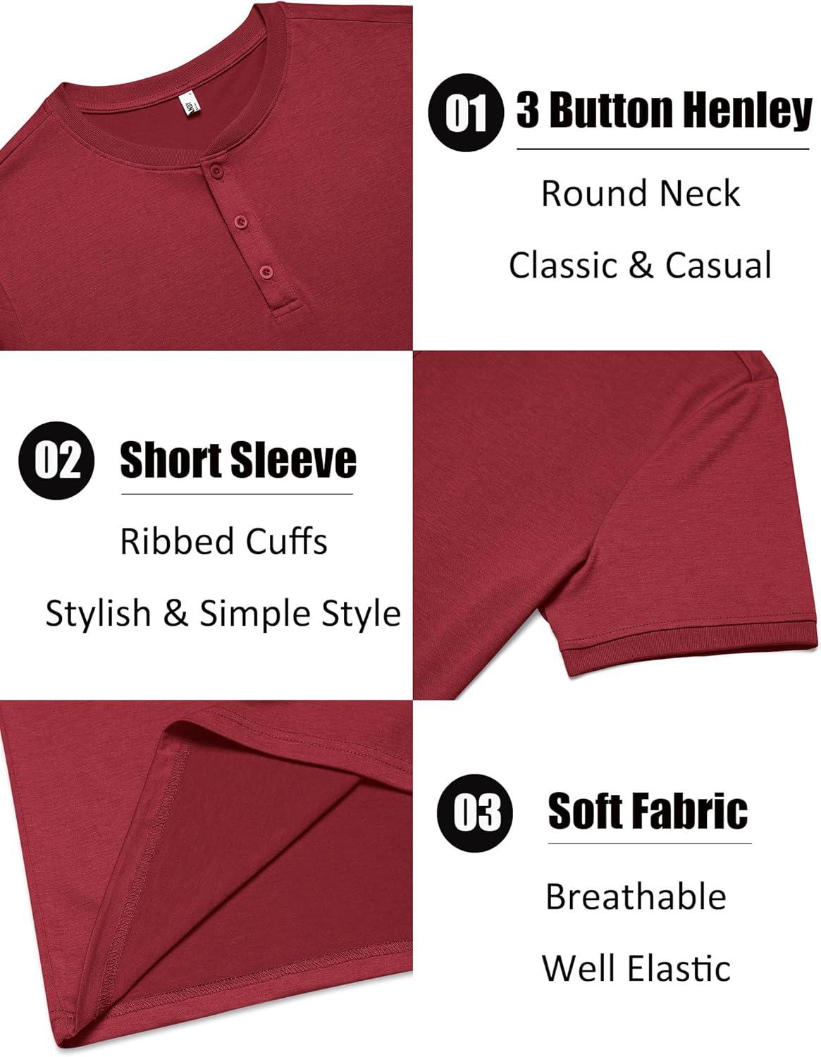 COOFANDY Men's Henley Shirts Short Sleeve Casual Summer Basic Tee Solid Button T-Shirts(Wine Red)