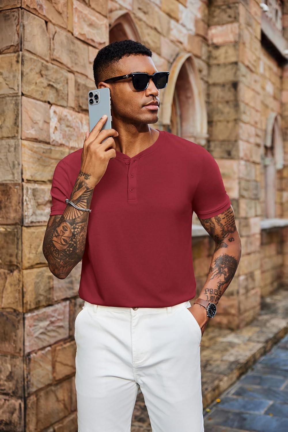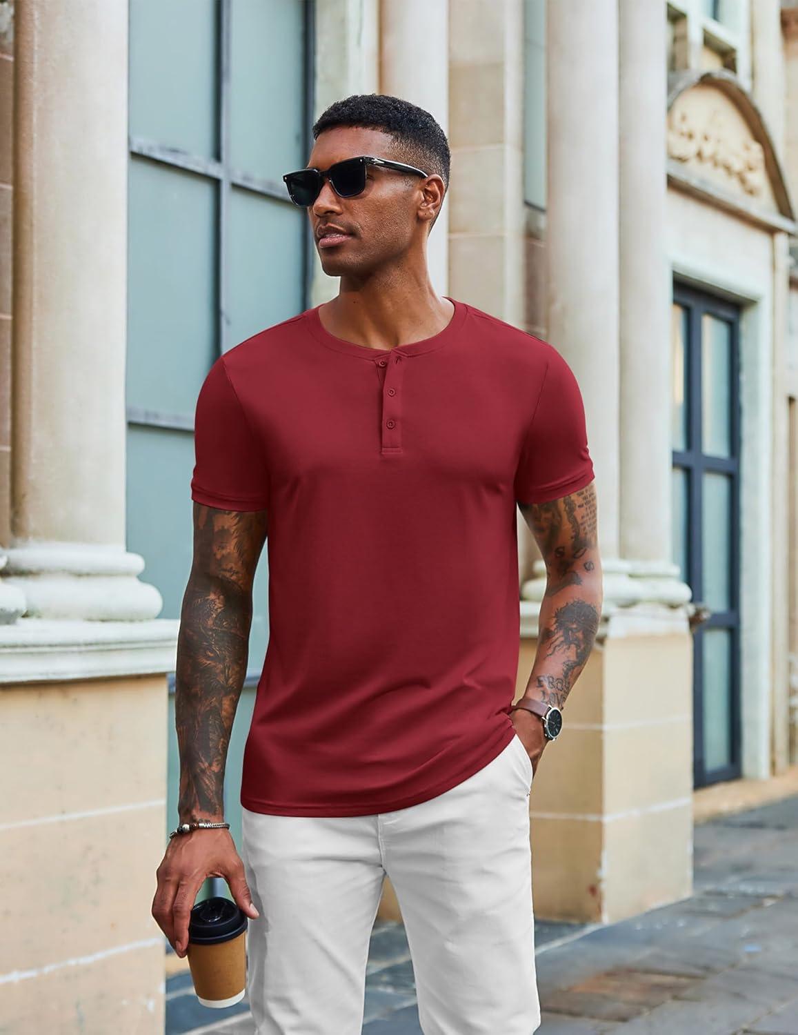 Discover the latest COOFANDY Men’s Henley Shirts Short Sleeve Casual Summer Basic Tee Solid Button T-Shirts(Wine Red) from and take advantage of our limited-time introductory offer.