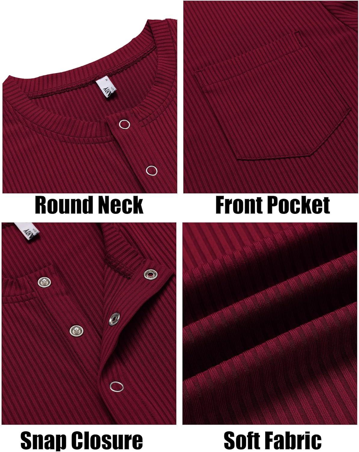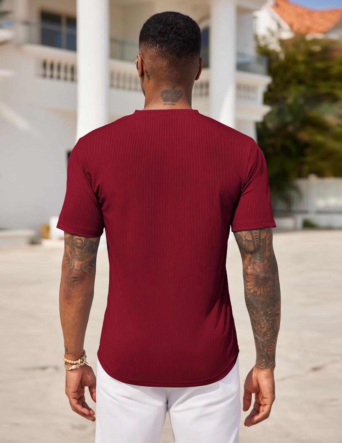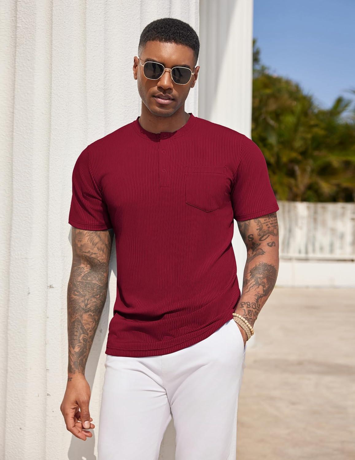 COOFANDY Mens Henley Shirts Short Sleeve Tshirt Basic Button Tees Summer Ribbed Pocket T Shirt Casual Stretch Tops(Wine Red)