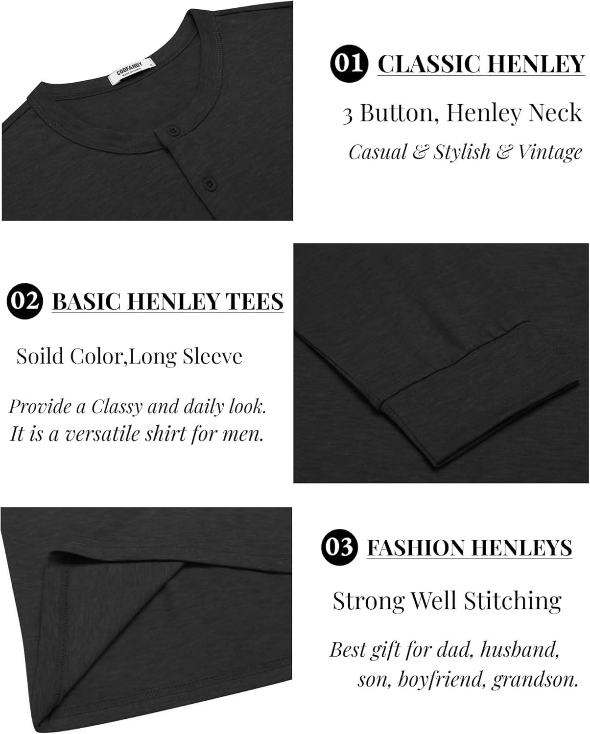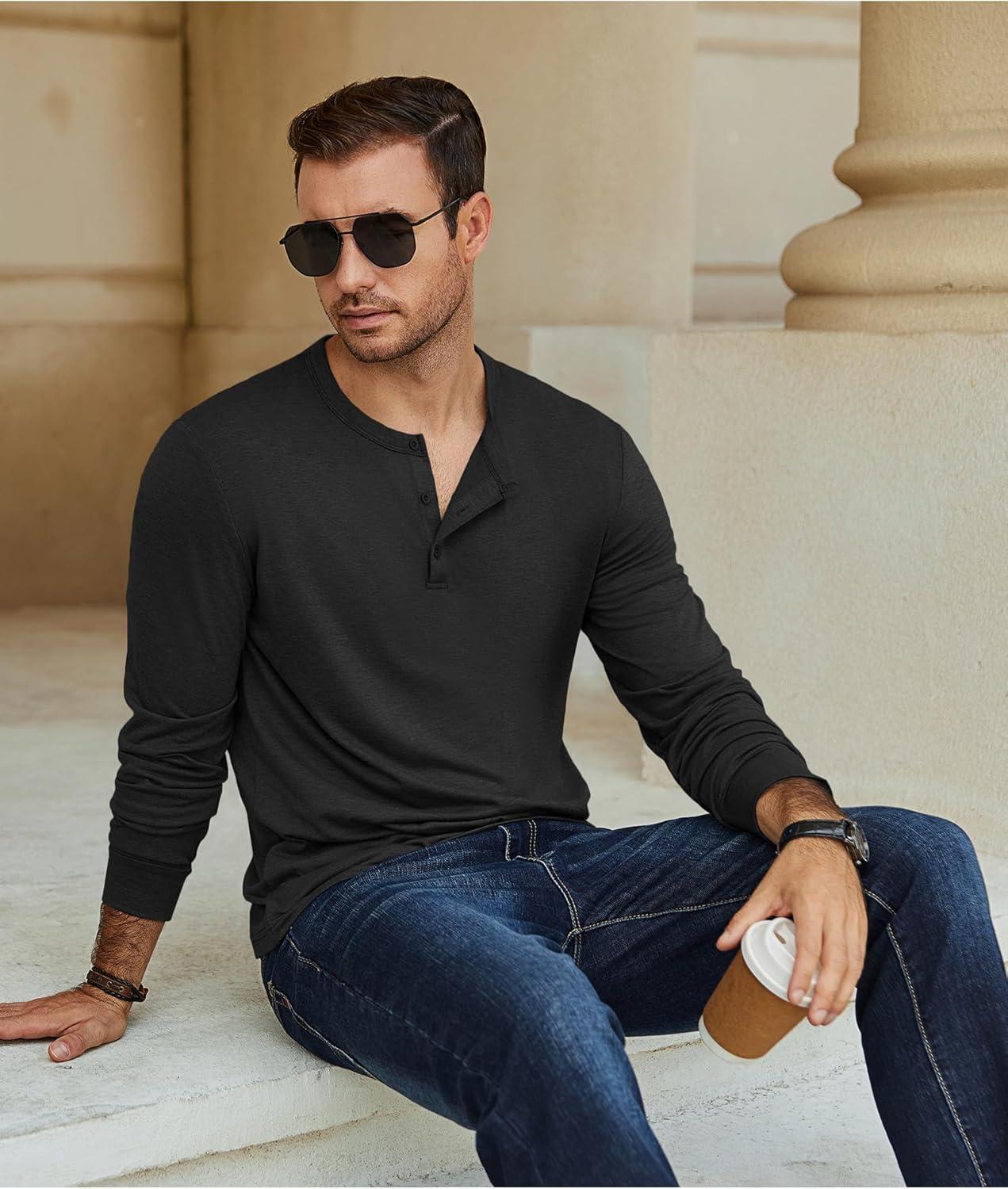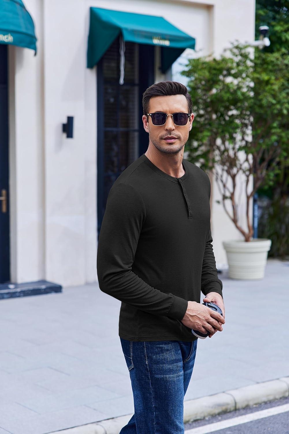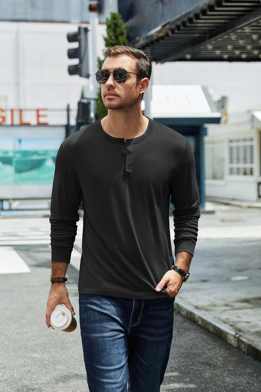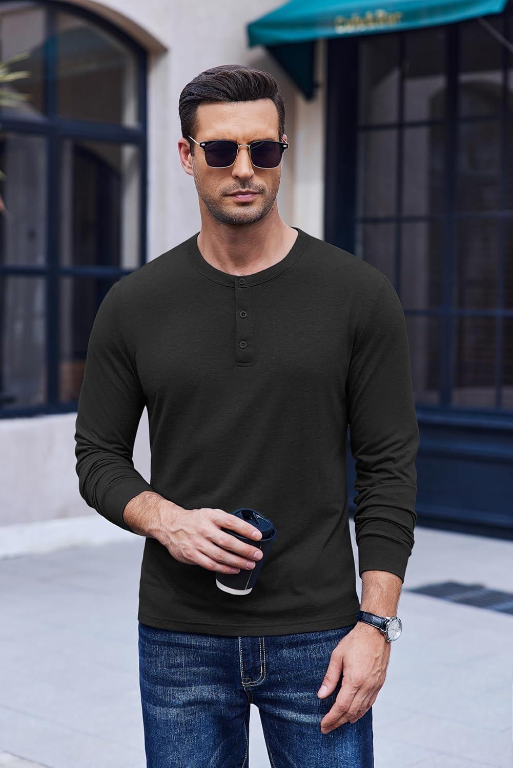 COOFANDY Men's Henley T-Shirt Long Sleeve Casual Lightweight Pullover Shirts Soft Stretch Basic Tees Fall Tops(Black)