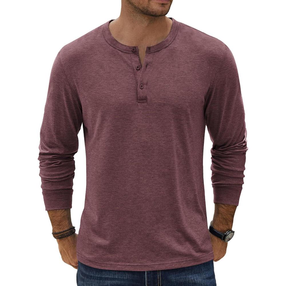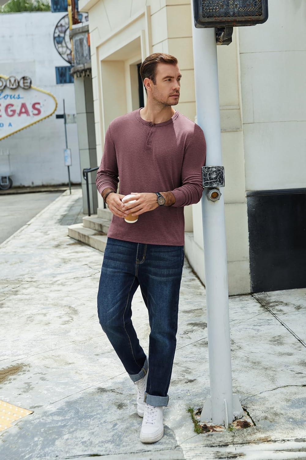 COOFANDY Men's Henley T-Shirt Long Sleeve Casual Lightweight Pullover Shirts Soft Stretch Basic Tees Fall Tops(Dark Red)