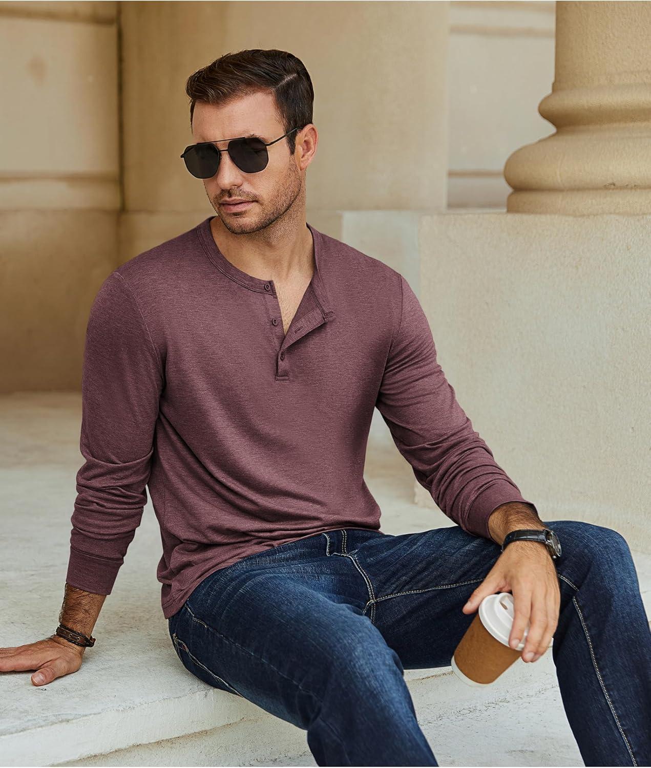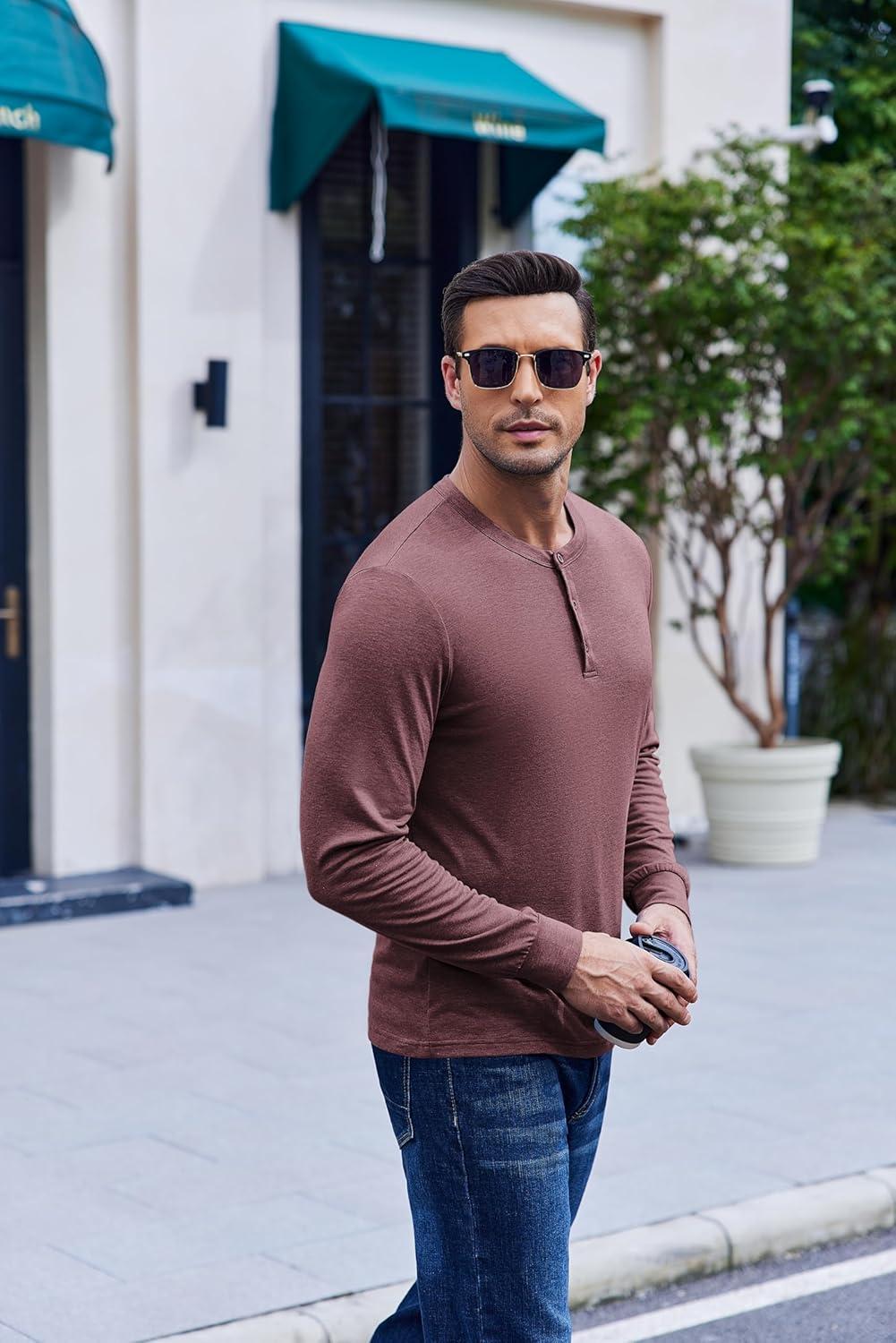 COOFANDY Men’s Henley T-Shirt Long Sleeve Casual Lightweight Pullover Shirts Soft Stretch Basic Tees Fall Tops(Dark Red)