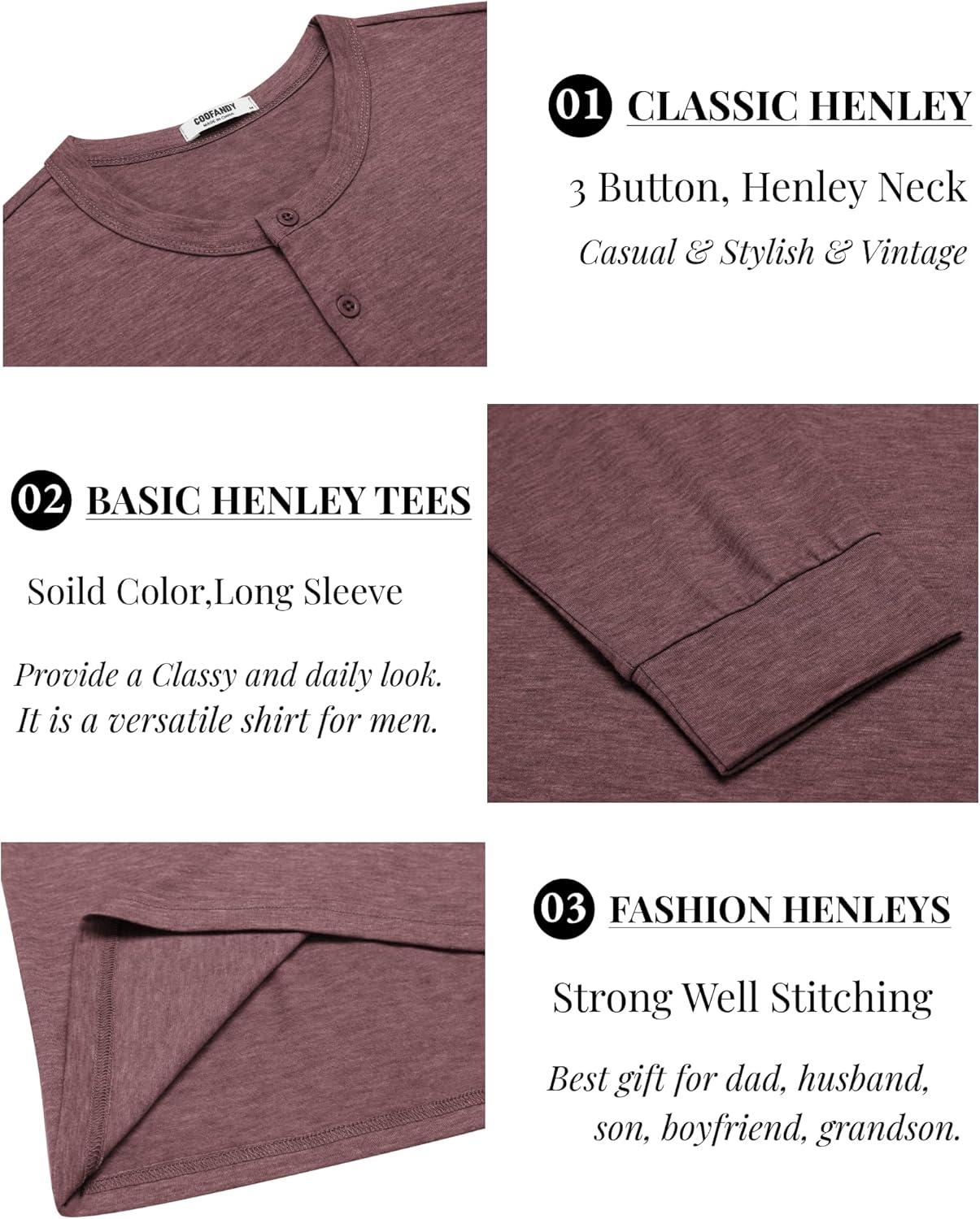 COOFANDY Men’s Henley T-Shirt Long Sleeve Casual Lightweight Pullover Shirts Soft Stretch Basic Tees Fall Tops(Dark Grey)