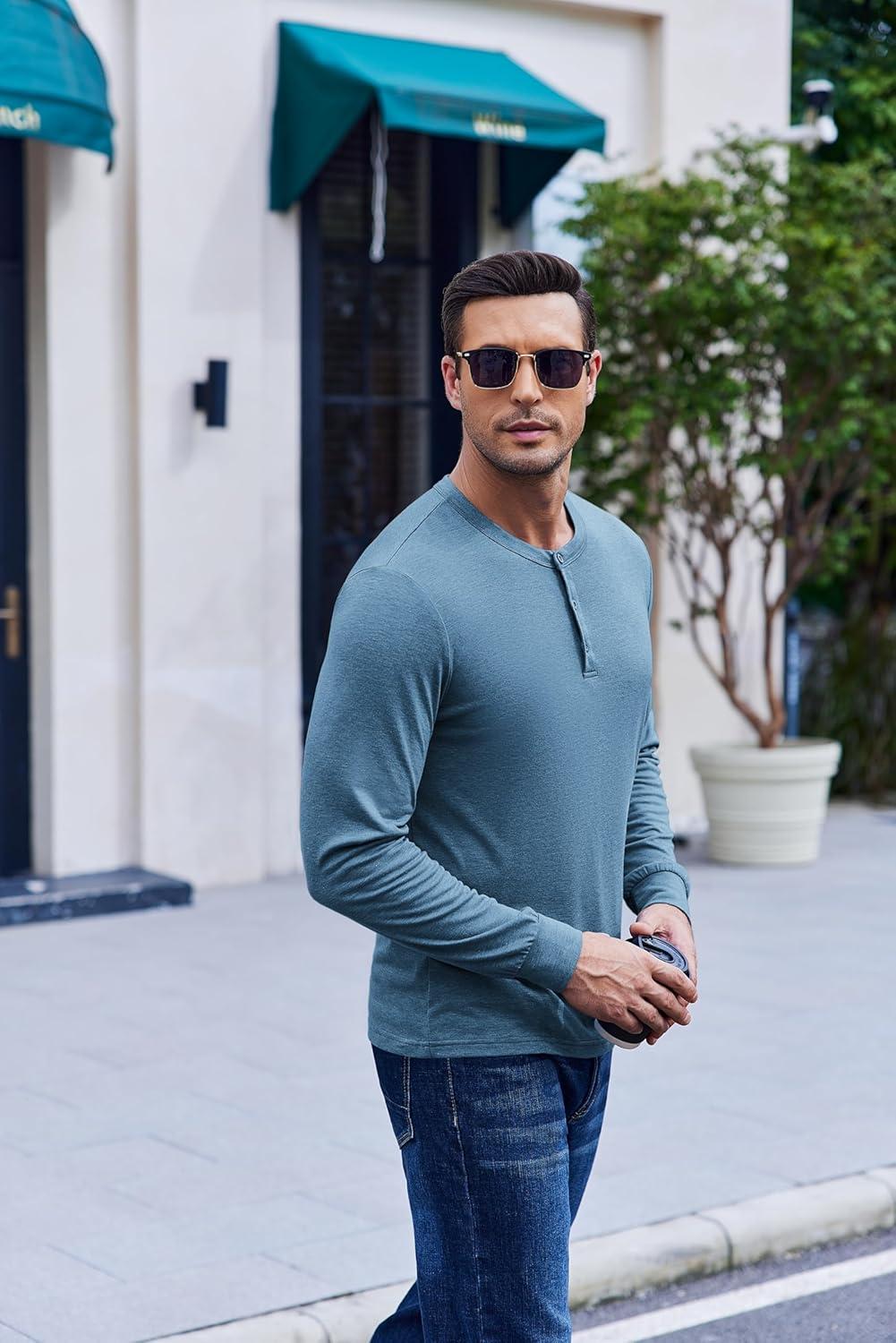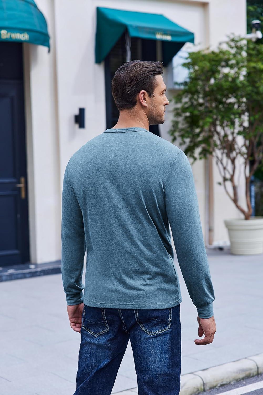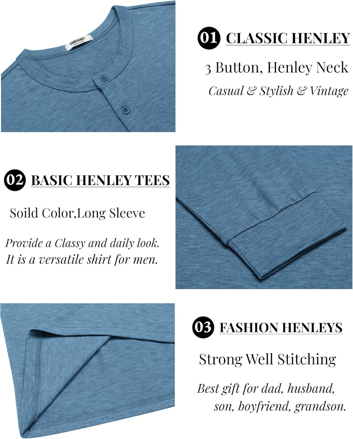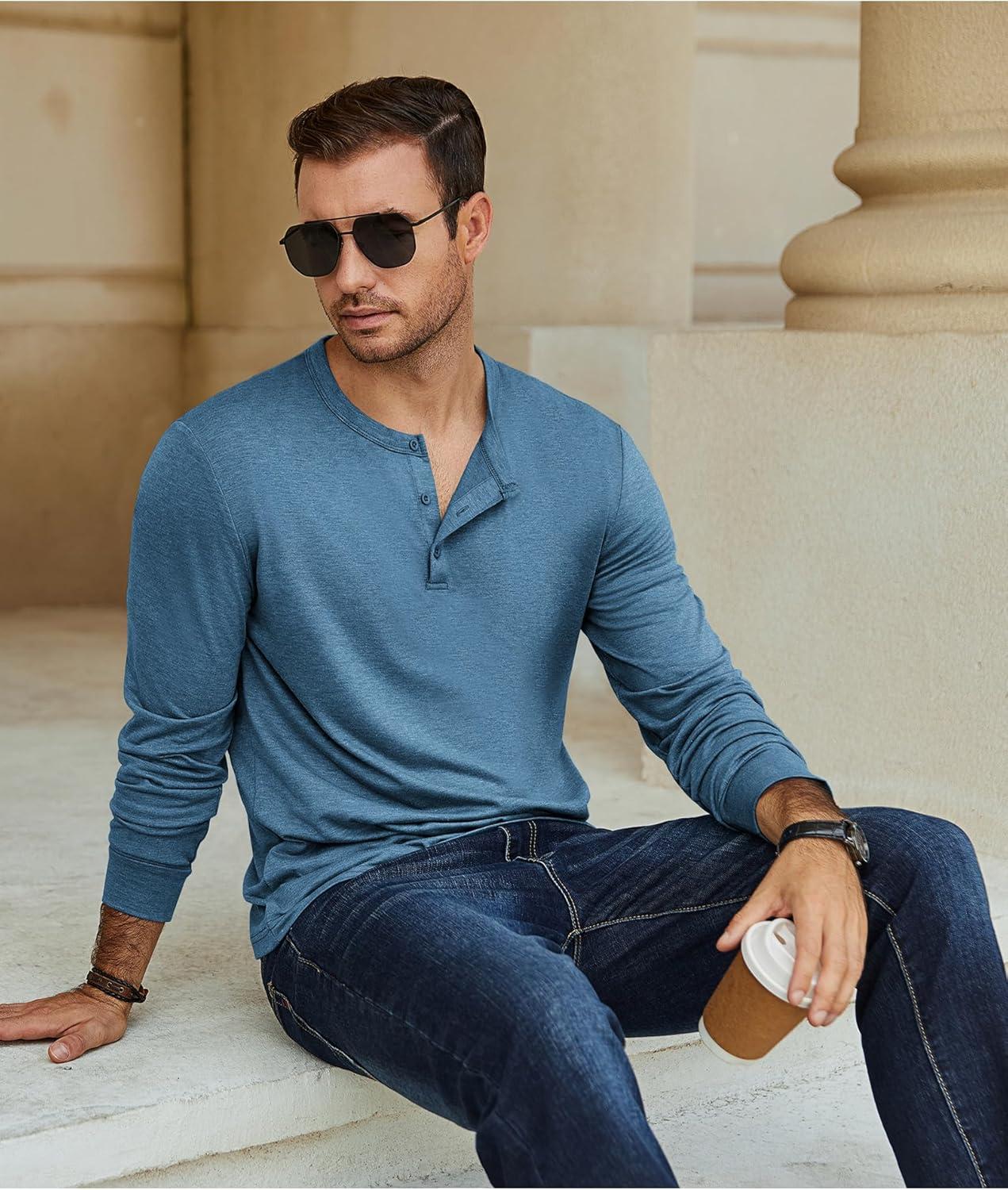 COOFANDY Men’s Henley T-Shirt Long Sleeve Casual Lightweight Pullover Shirts Soft Stretch Basic Tees Fall Tops(Demin Blue)