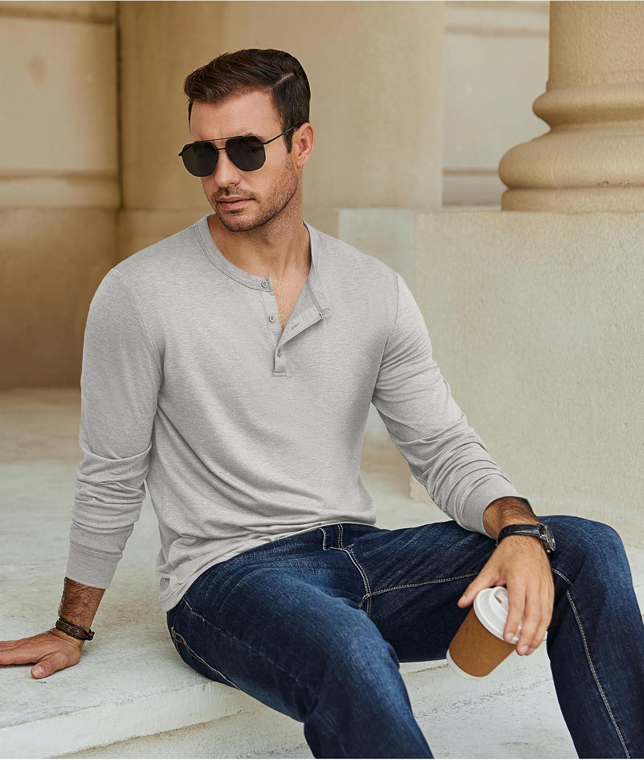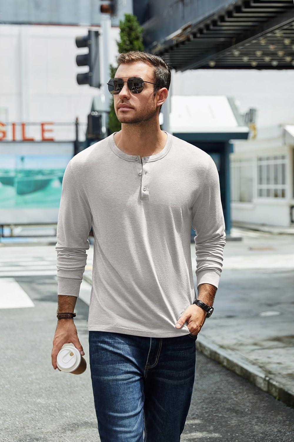 Get up to 70% off on COOFANDY Men’s Henley T-Shirt Long Sleeve Casual Lightweight Pullover Shirts Soft Stretch Basic Tees Fall Tops(Light Grey) styles during our end-of-season clearance event.