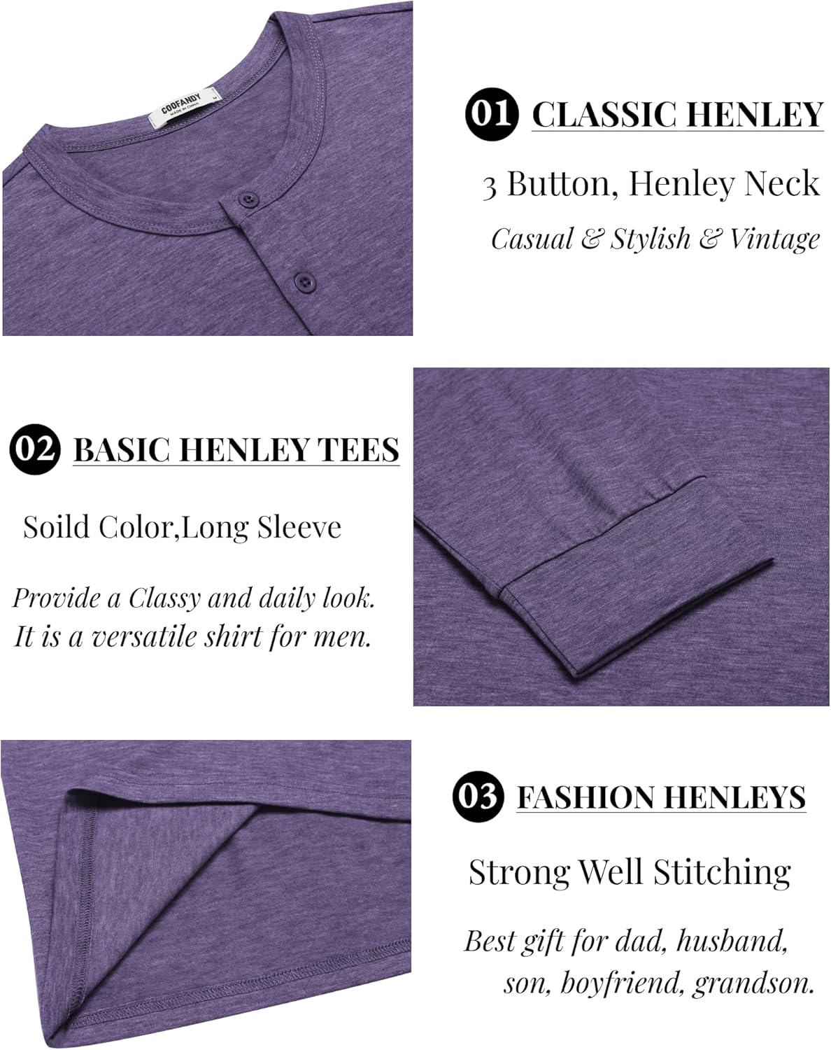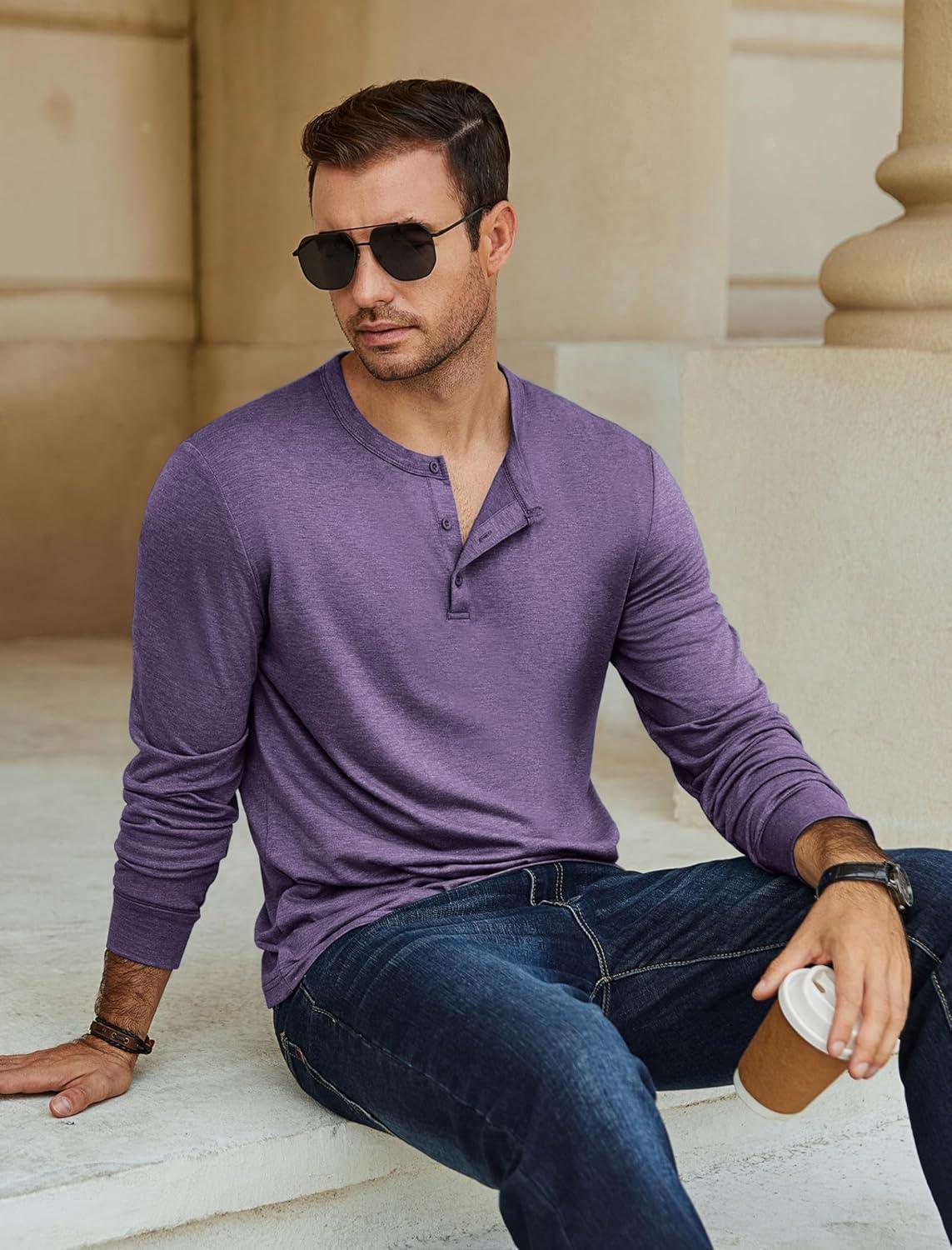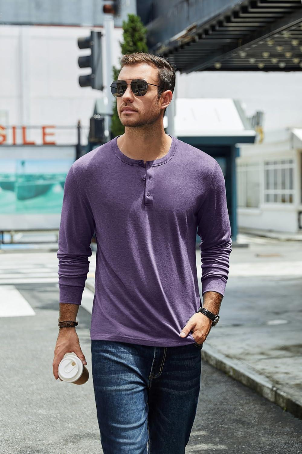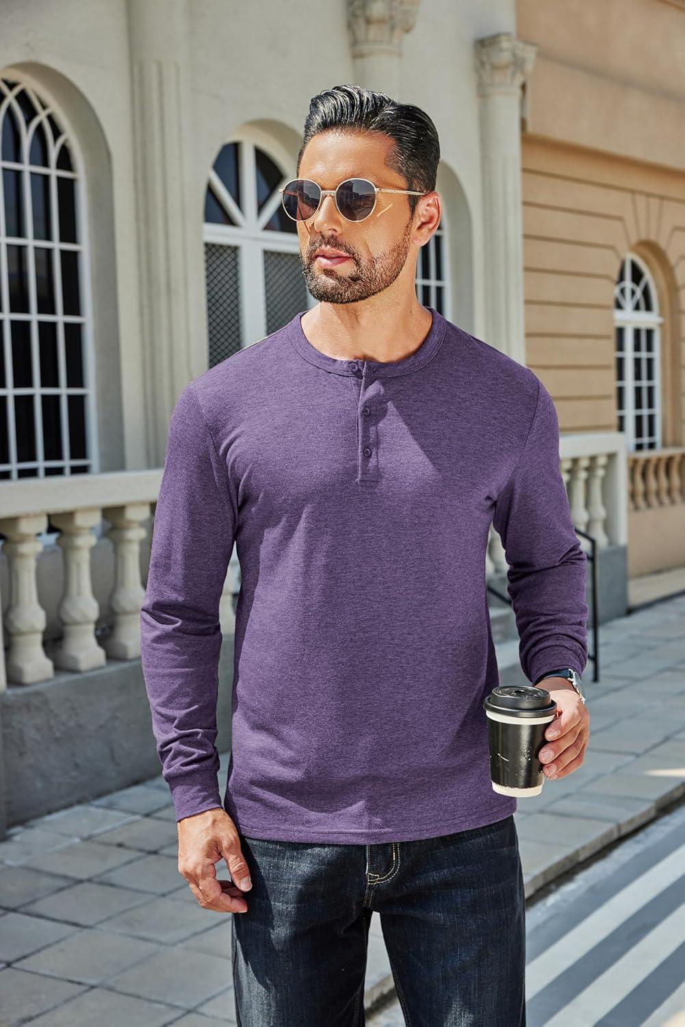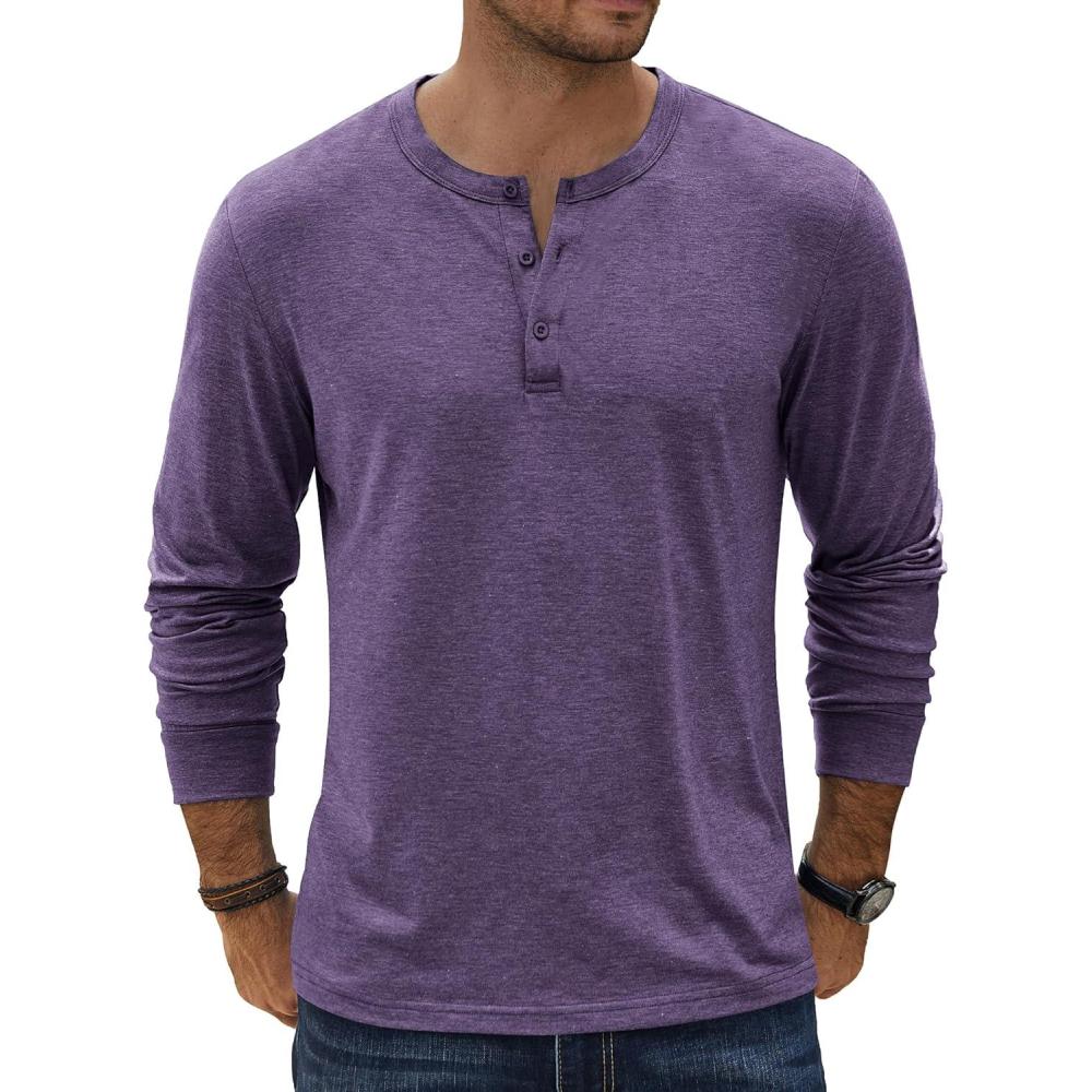 COOFANDY Men's Henley T-Shirt Long Sleeve Casual Lightweight Pullover Shirts Soft Stretch Basic Tees Fall Tops(Purple)