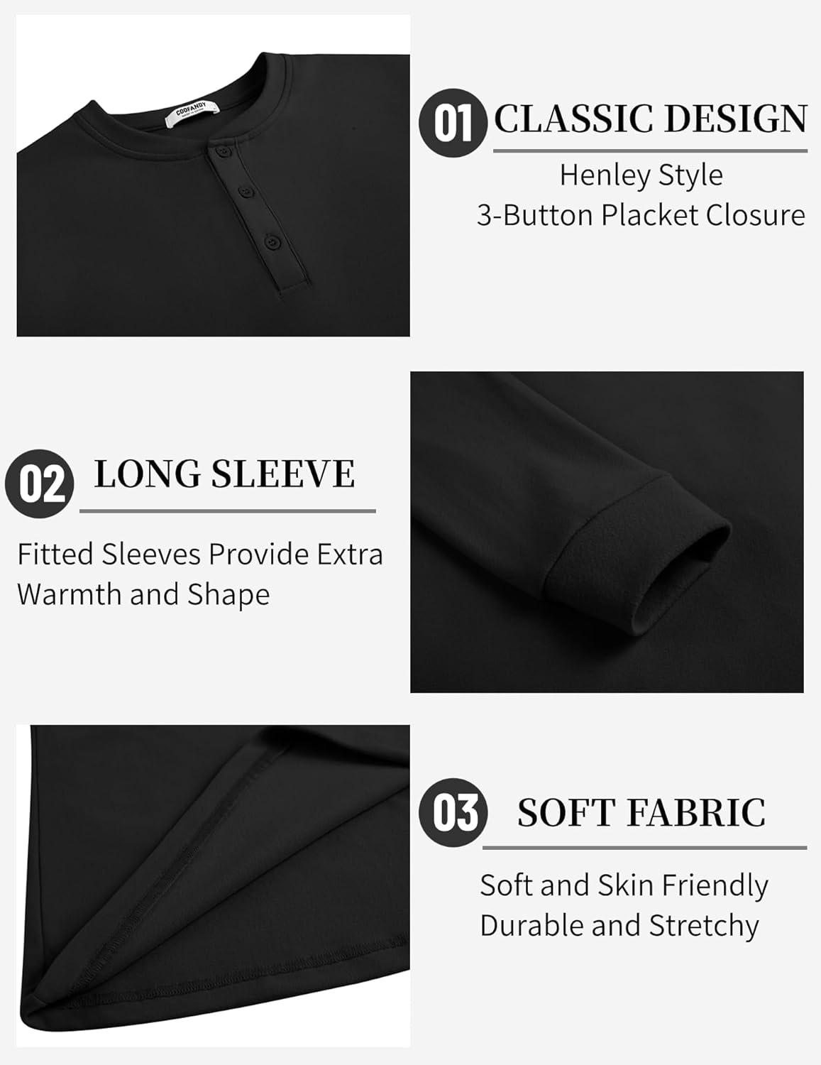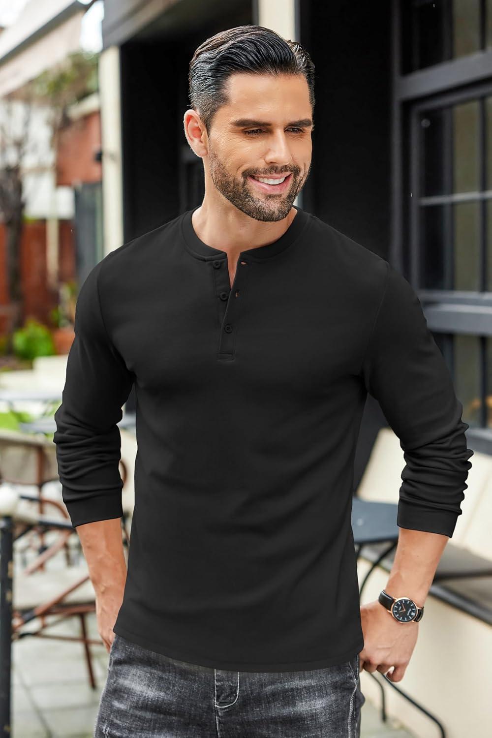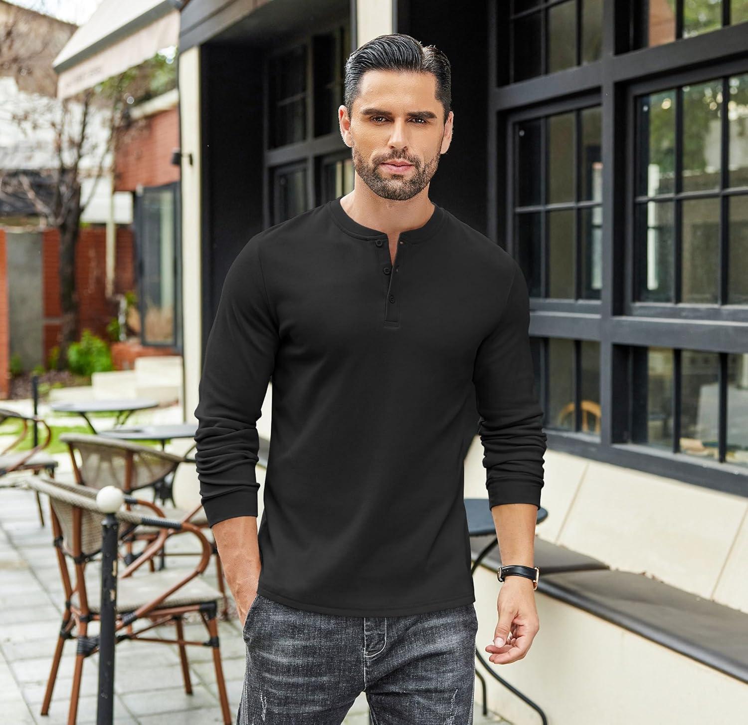 COOFANDY Men’s Henley T-Shirts Long Sleeve Pullover Shirt Casual Heavyweight Button Shirts Basic Tees(Black)